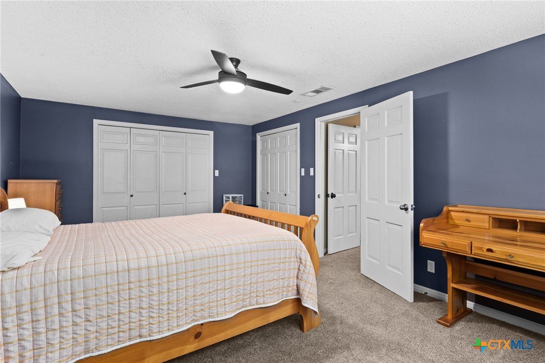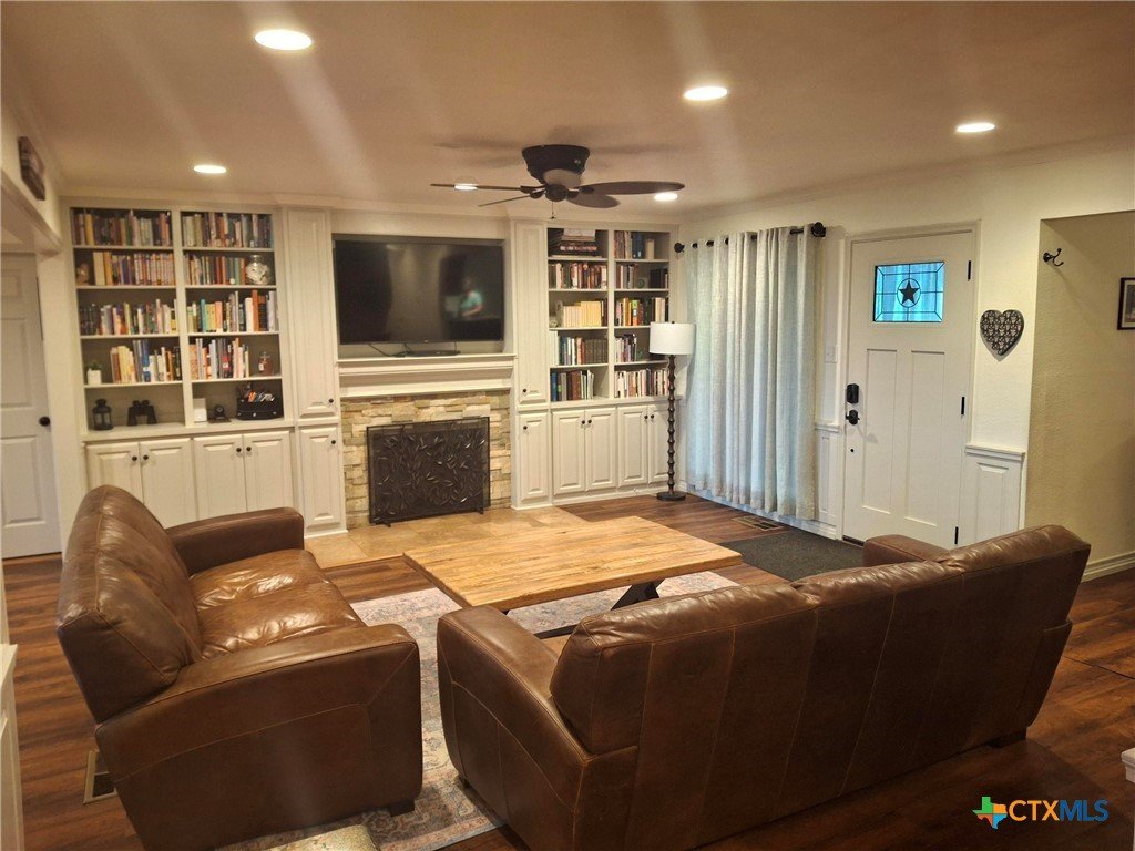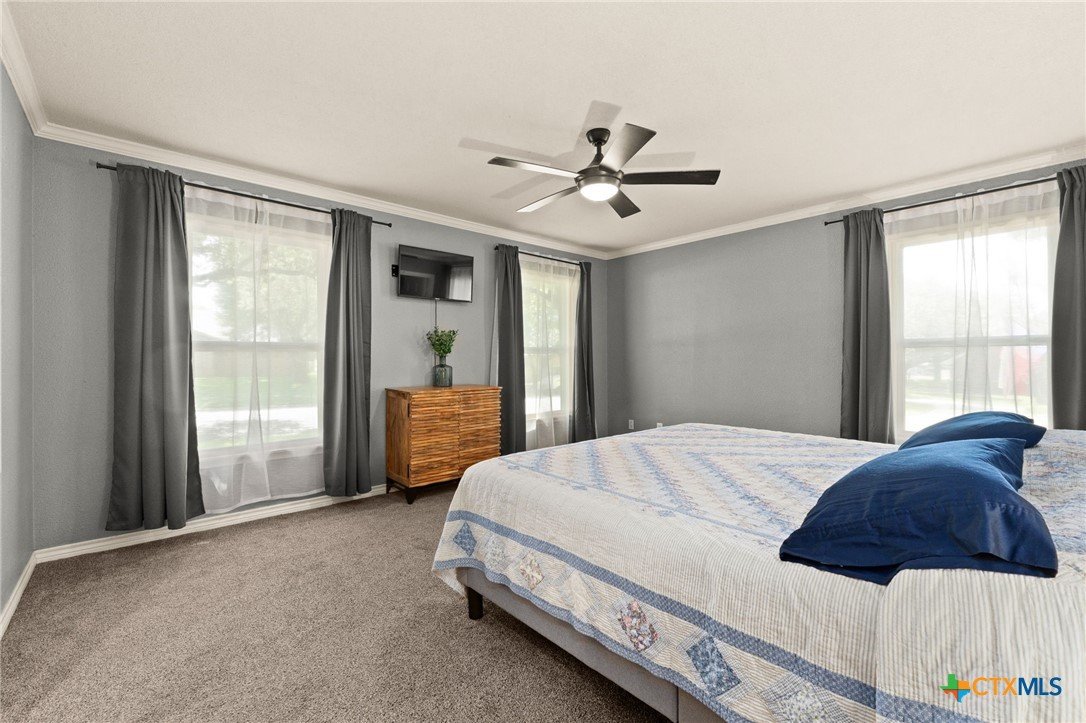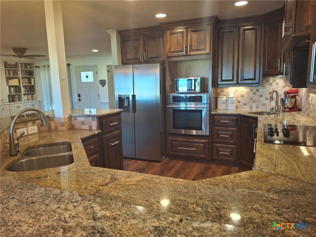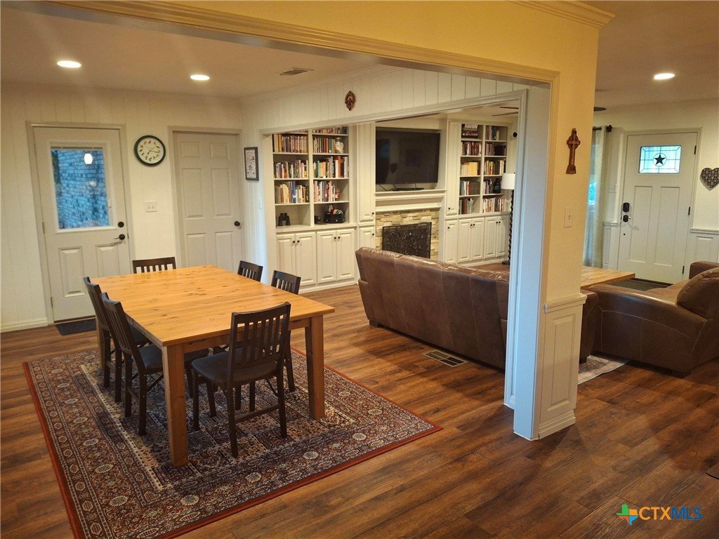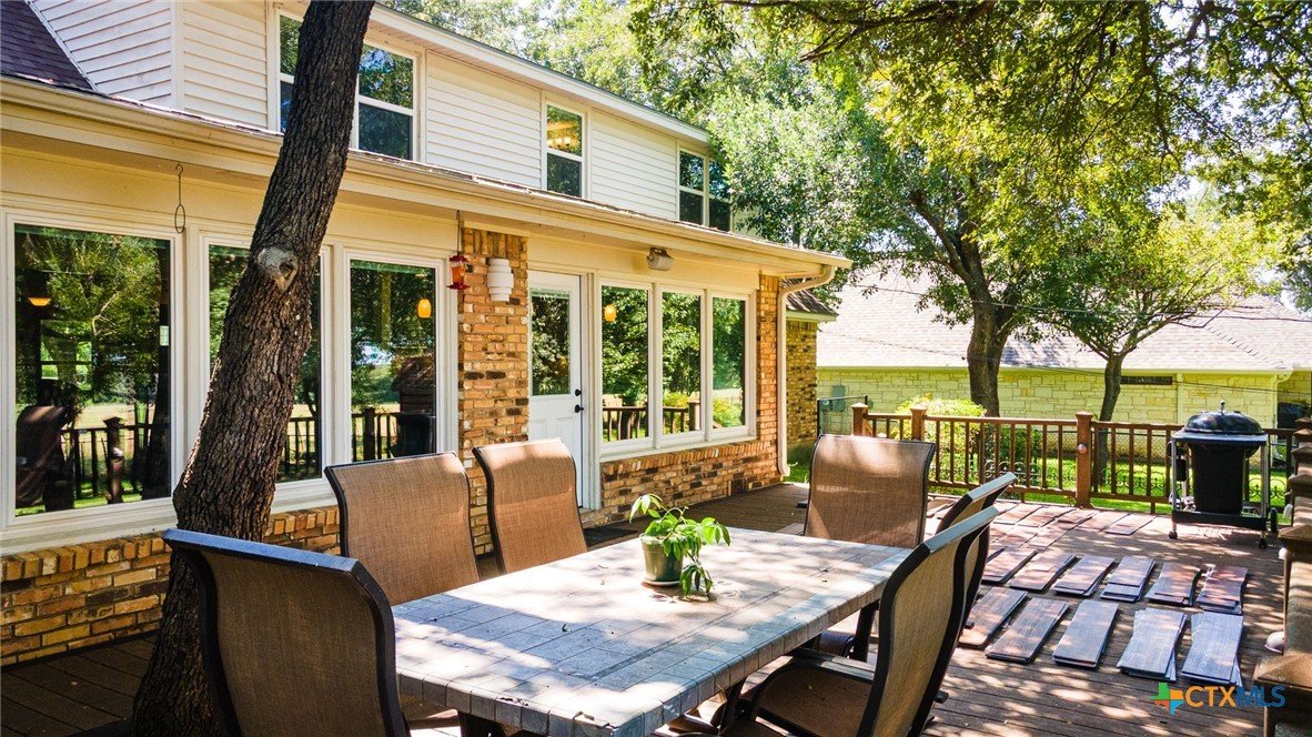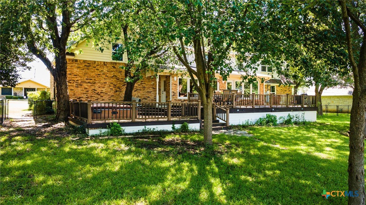 Timeless elegance meets modern updates in this spacious 5 bedroom, 4 bath home located in a quiet neighborhood just two minutes from schools and Main Street. Step inside to find multiple living spaces, including a front living room with a wet bar and built-in wine refrigerator, plus a large family room featuring a cozy fireplace framed by custom built-ins and an entertainment center. The kitchen offers style and function with granite countertops, tile backsplash, stainless steel appliances, an abundance of cabinetry, and an extra prep sink. The primary suite includes a generous walk-in closet and a stunning ensuite bath with dual vanities, abundant storage, and an oversized shower. A guest bedroom with private access to the hall bath is located on the main floor. Upstairs, you’ll find two oversized bedrooms with excellent storage and a shared bath, while the fifth bedroom is situated over the garage with its own private bath, perfect for guests or a private office. Current owners have installed new windows and doors, new fresh interior paint, a new roof, both HVAC units replaced, and a new fence. Outdoors, enjoy the backyard deck shaded by mature trees, with no rear neighbors and plenty of room to relax and take in the sunset.