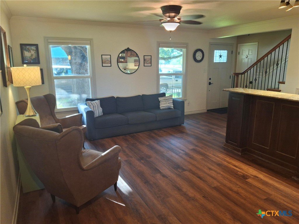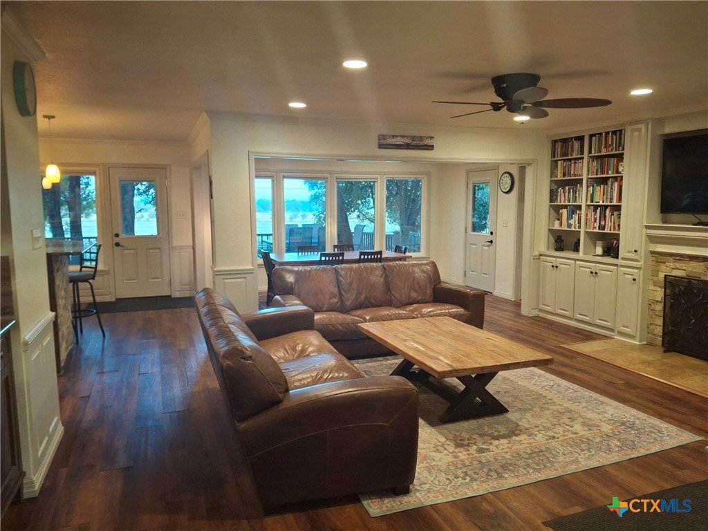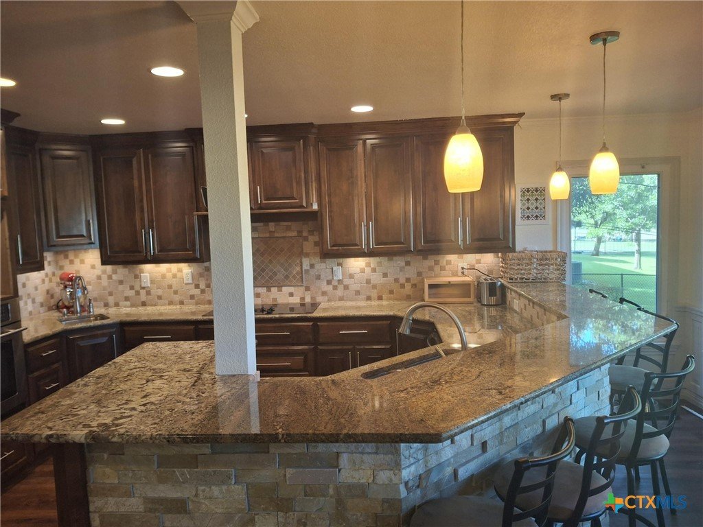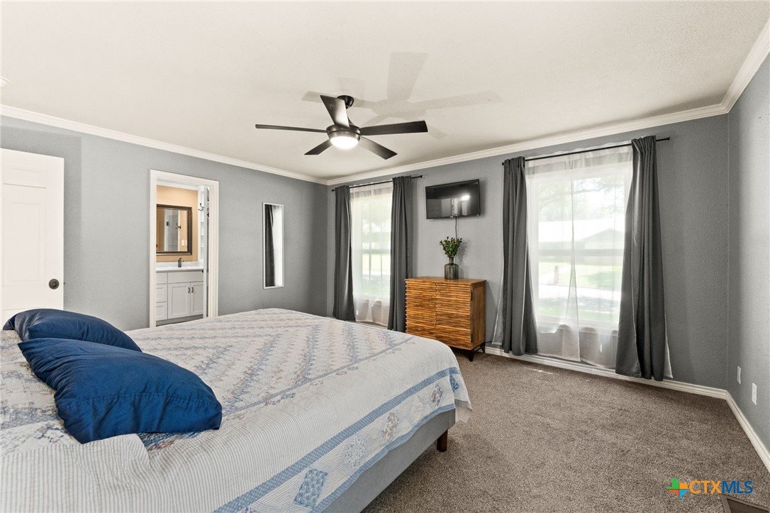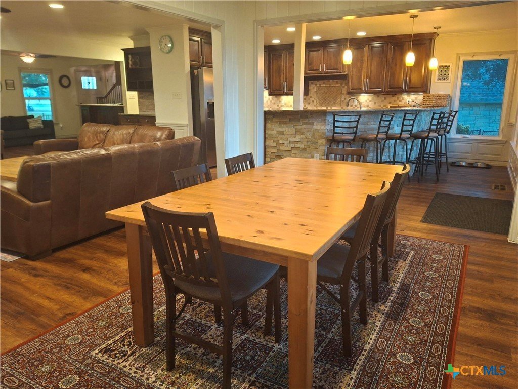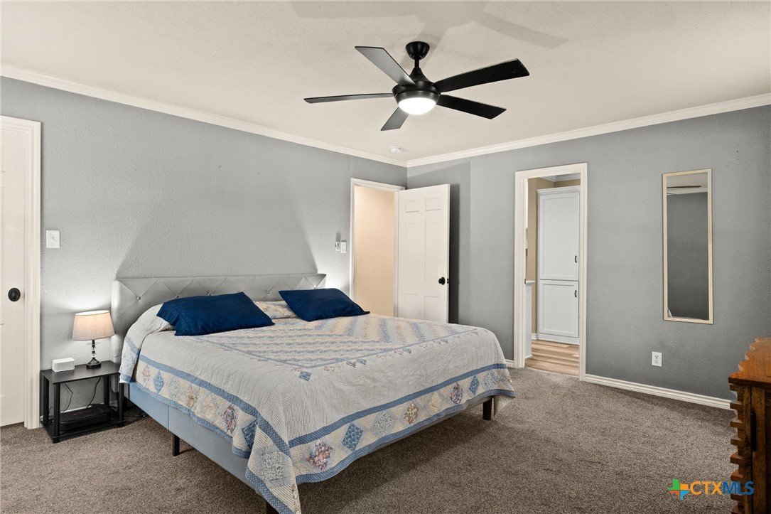 Timeless elegance meets modern updates in this spacious 5 bedroom, 4 bath home located in a quiet neighborhood just two minutes from schools and Main Street. Step inside to find multiple living spaces, including a front living room with a wet bar and built-in wine refrigerator, plus a large family room featuring a cozy fireplace framed by custom built-ins and an entertainment center. The kitchen offers style and function with granite countertops, tile backsplash, stainless steel appliances, an abundance of cabinetry, and an extra prep sink. The primary suite includes a generous walk-in closet and a stunning ensuite bath with dual vanities, abundant storage, and an oversized shower. A guest bedroom with private access to the hall bath is located on the main floor. Upstairs, you’ll find two oversized bedrooms with excellent storage and a shared bath, while the fifth bedroom is situated over the garage with its own private bath, perfect for guests or a private office. Current owners have installed new windows and doors, new fresh interior paint, a new roof, both HVAC units replaced, and a new fence. Outdoors, enjoy the backyard deck shaded by mature trees, with no rear neighbors and plenty of room to relax and take in the sunset.