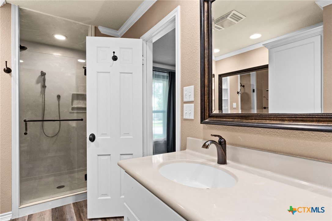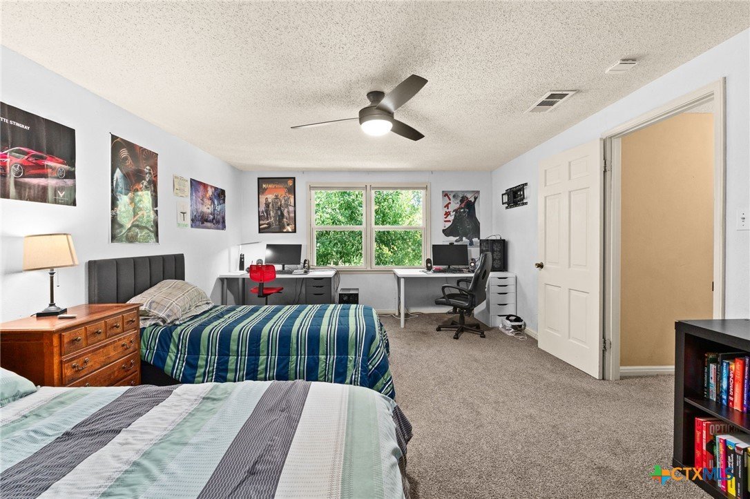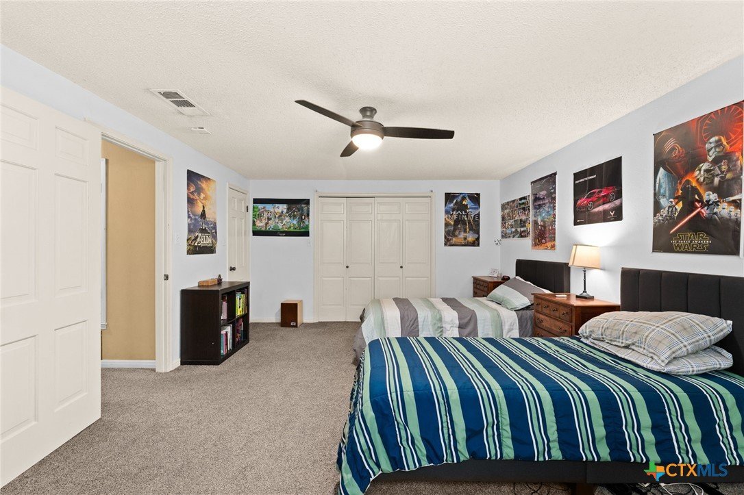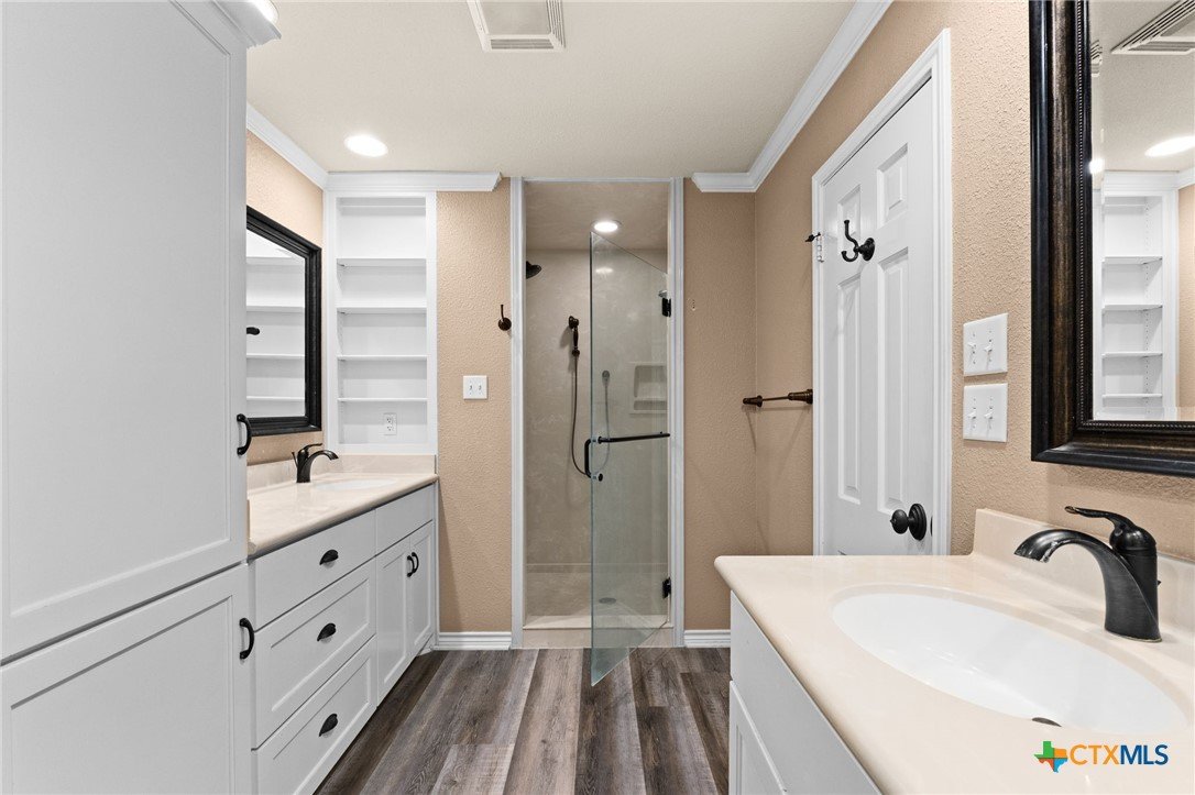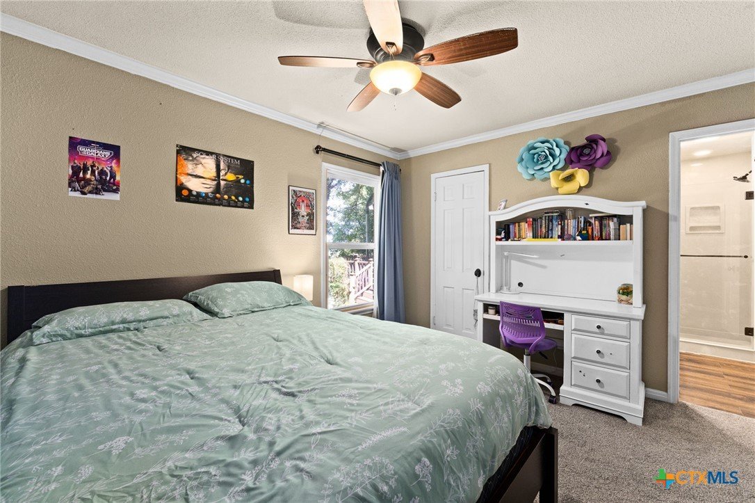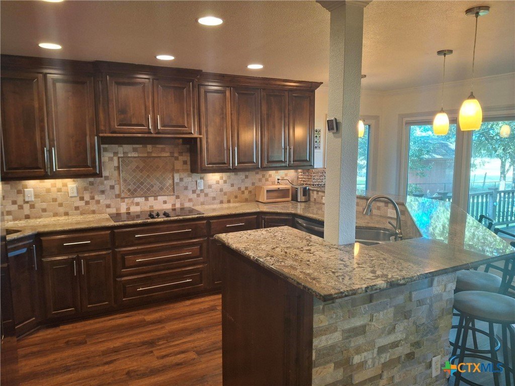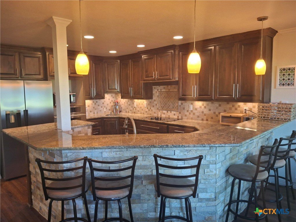 Timeless elegance meets modern updates in this spacious 5 bedroom, 4 bath home located in a quiet neighborhood just two minutes from schools and Main Street. Step inside to find multiple living spaces, including a front living room with a wet bar and built-in wine refrigerator, plus a large family room featuring a cozy fireplace framed by custom built-ins and an entertainment center. The kitchen offers style and function with granite countertops, tile backsplash, stainless steel appliances, an abundance of cabinetry, and an extra prep sink. The primary suite includes a generous walk-in closet and a stunning ensuite bath with dual vanities, abundant storage, and an oversized shower. A guest bedroom with private access to the hall bath is located on the main floor. Upstairs, you’ll find two oversized bedrooms with excellent storage and a shared bath, while the fifth bedroom is situated over the garage with its own private bath, perfect for guests or a private office. Current owners have installed new windows and doors, new fresh interior paint, a new roof, both HVAC units replaced, and a new fence. Outdoors, enjoy the backyard deck shaded by mature trees, with no rear neighbors and plenty of room to relax and take in the sunset.