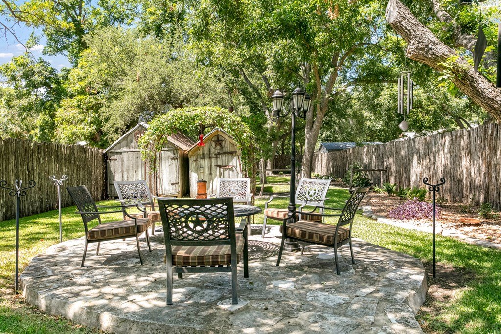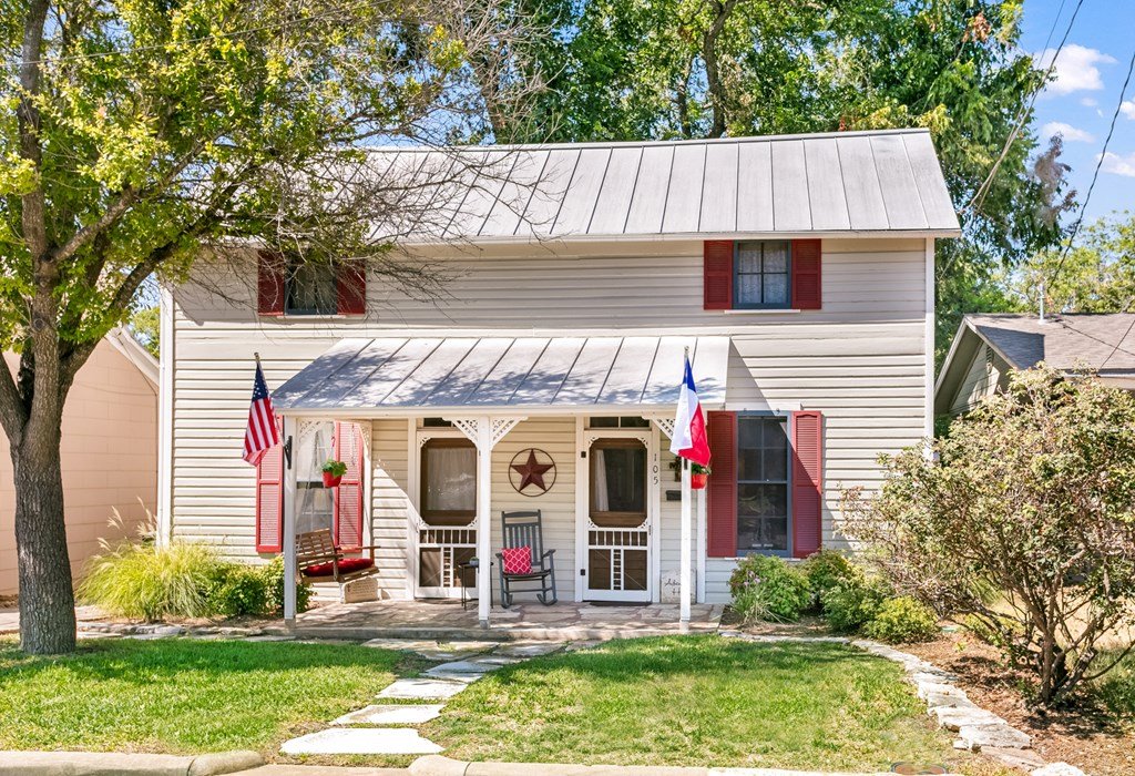 This is the IDEAL second home, Hill Country getaway with the most charming back yard! If you have ever dreamed of having your own vacation home in Fredericksburg to share with family and friends this is it! This is a fully furnished dollhouse in an incredible location on West Creek, one of the most desirable streets in town, right across the street from Hill and Vine Restaurant. Walk just two blocks to the heart of Main Street where you can enjoy all the wonderful amenities Fredericksburg has to offer. Whether you enjoy it as your primary or secondary home, prepare to be VERY popular with your friends and family! This 1882 charmer will win your heart. It truly embodies what Fredericksburg is all about: historic architecture and character within walking distance of all the modern-day Fredericksburg conveniences. The gorgeous back yard has mature landscaping and a hammock for relaxing. On the main level is a comfortable bedroom, bathroom, kitchen and living room. Another bedroom and bath are upstairs. This property is truly turn key. Just turn the key, walk in, put your suitcase down and you are home! See the 3D walk through tour! Incredible value for the perfect pied-a-terre!