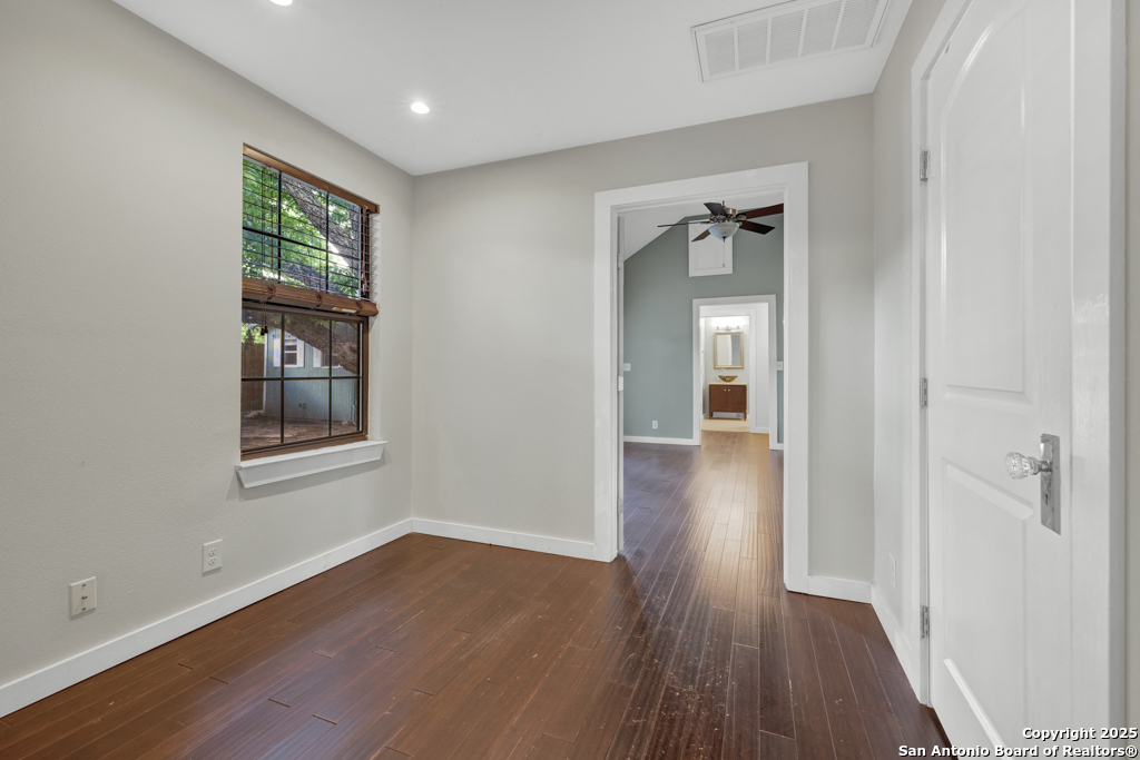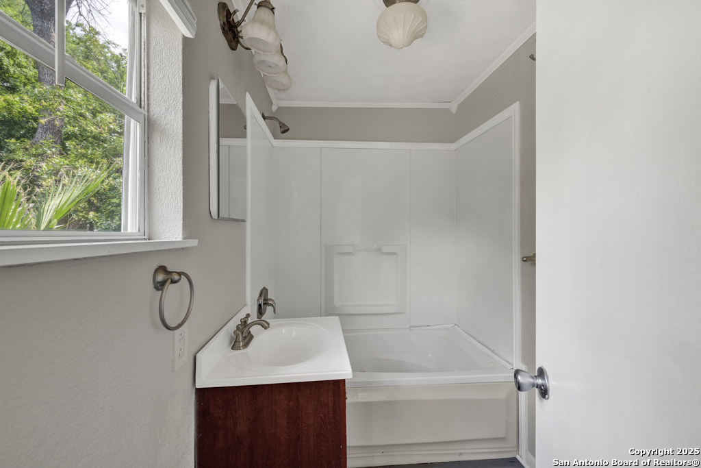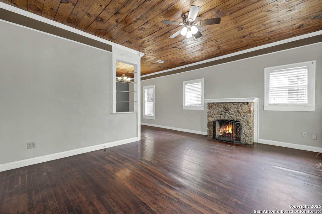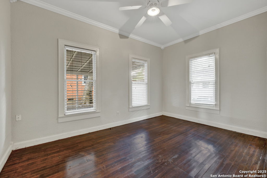 ADORABLE CRAFTSMAN COTTAGE WITH GUEST HOUSE JUST BLOCKS FROM DOWNTOWN NEW BRAUNFELS! This 1937 charmer blends vintage character with modern updates. Main home features hardwood floors, crown molding, stone fireplace, and a stylish kitchen with granite countertops, gas range, and stainless appliances. Private primary suite offers vaulted ceiling, walk-in shower, dual vanities, and French doors to a shaded courtyard. Separate guest quarters include bedroom and bath-ideal for visitors or home office. Enjoy a spacious backyard with mature trees and quaint, adjacent city park. NO HOA. Exterior painted in 2024. Move-in ready with refrigerator, washer, and dryer included! SEE THIS ONE TODAY!