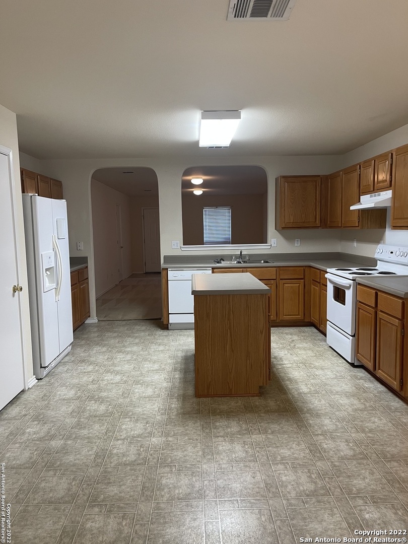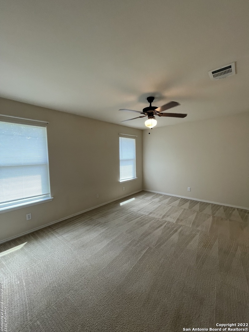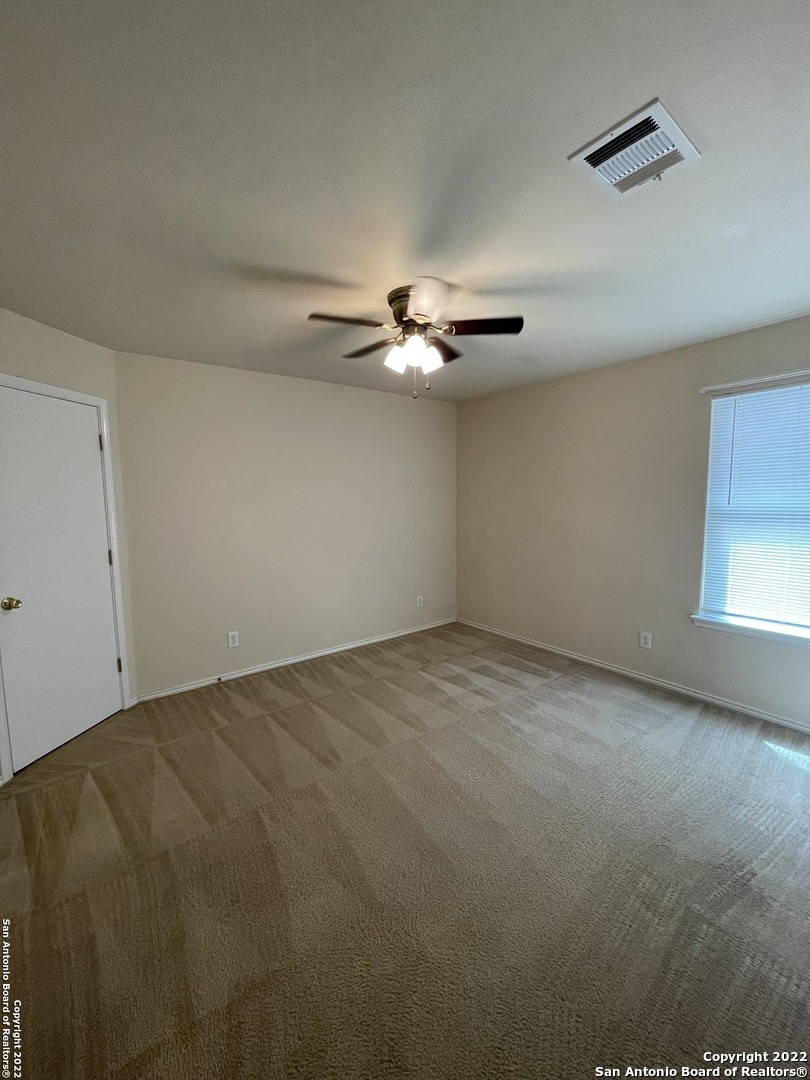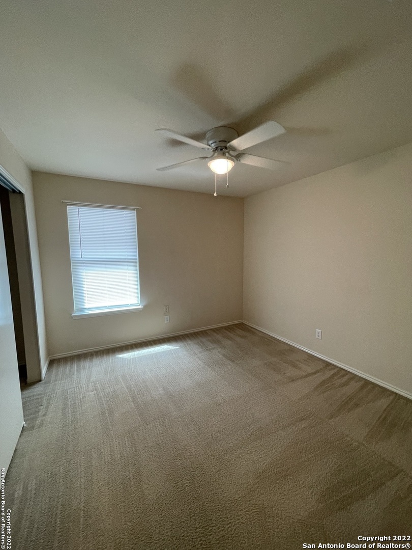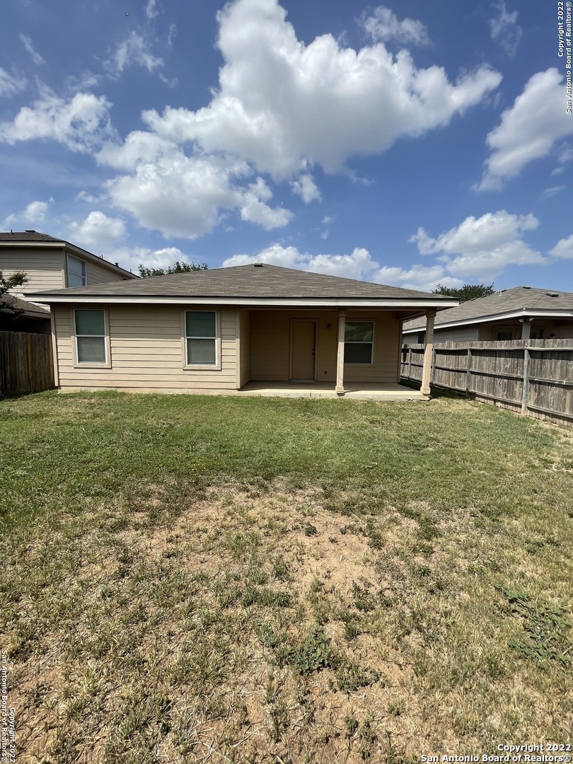 Lovely 3-bedroom, 2-bath home located in the desirable Wildhorse community. This charming one-story features an open floor plan with a spacious living area, perfect for relaxing or entertaining. Brand new carpet and flooring thoroughout. The kitchen offers plenty of cabinet space, a center island, and white appliances. The primary suite includes a walk-in closet and ceiling fan, while the primary bathroom is equipped with a double vanity and a convenient tub/shower combo. Enjoy a large fenced-in backyard with a small covered patio-ideal for outdoor gatherings or quiet evenings. Conveniently located with quick access to Loop 1604 and just a short drive to UTSA, La Cantera, and The Rim. Pets are welcome!