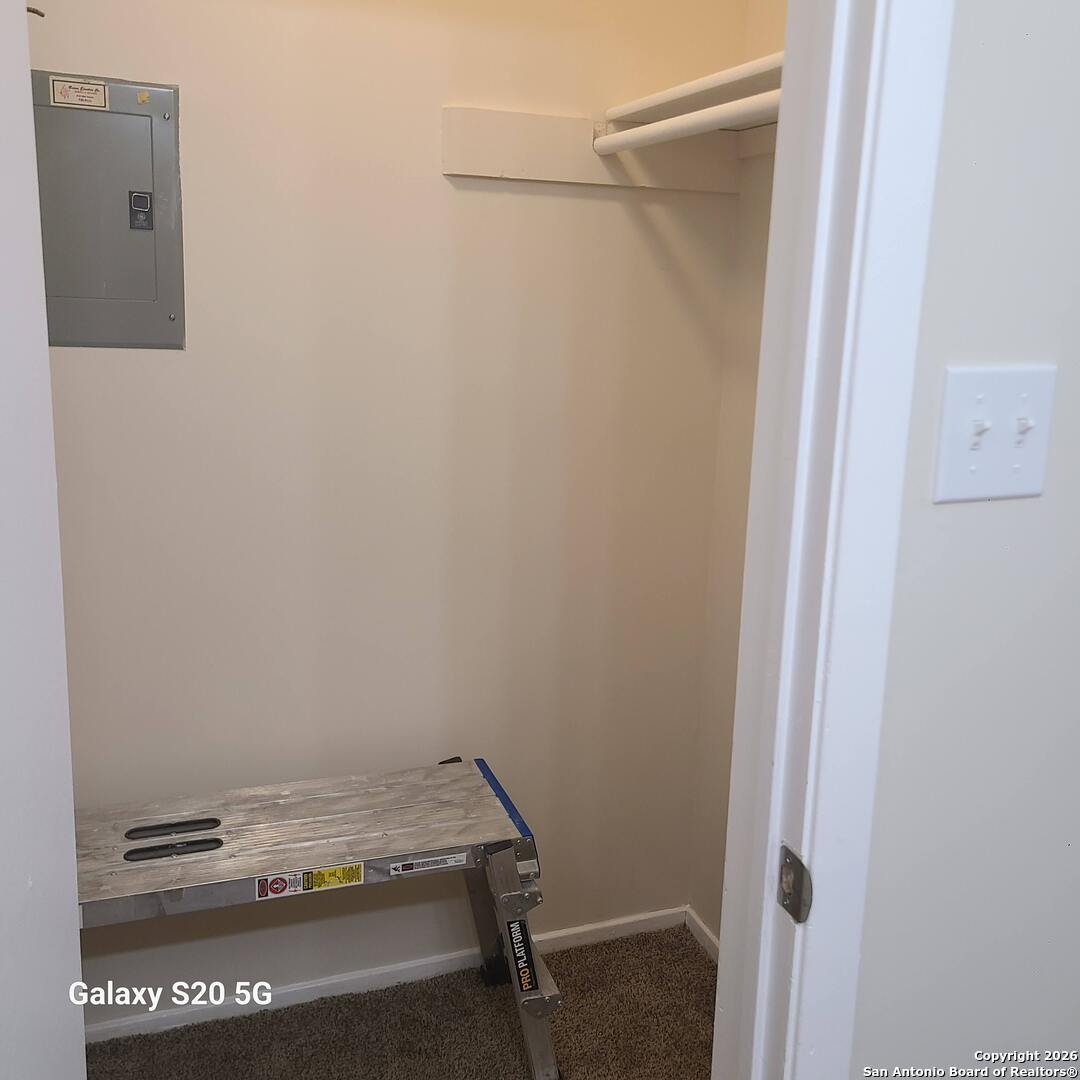 No popcorn ceilings here! Convenience is the Key in this thoughtfully designed ground floor condo, offering comfort and convenience at every turn. Cozy up by the fireplace in the living room, which seamlessly connects to a private, enclosed patio. For your laundry needs, a dedicated closet for your washer and dryer is conveniently located in the patio, (W/D AVAILABLE to rent if needed) The master bedroom provides a spa-like experience, a handy closet for your essentials and multi-functional shower system, including a handheld wand, a mirror and medicine cabinet, Retreat to the tranquil, carpeted bedroom featuring a generous walk in closet. Plus you'll appreciate the extra storage offered by the closet located by the front door. This unit comes complete with kitchen appliances pictured, and water utilities are included in the rent. Enjoy the amenities on this gated complex, including a refreshing pool, BBQ/picnic area, and assigned covered patio available for an additional monthly fee. its central location offers access to the Wurzbach Parkway, 410, 1604, 281 and public transportation. Owner pays for water, Renter is responsible for electricity, cable, internet connections. No smoking allowed. No pets, Renter must steam clean carpet annually. Follow rules and care properly for flooring, countertop and tub/shower.