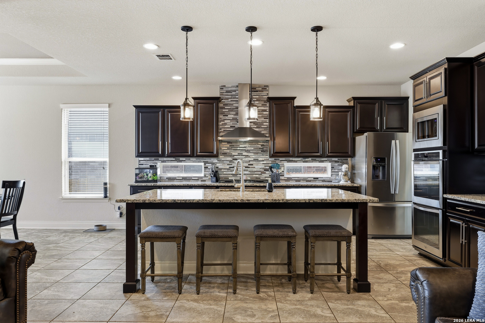*Showings begin Saturday MARCH 7th* Welcome to 1058 Cedar Glen. Nestled in the sought-after Stone Crossing community, this exceptional residence offers a harmonious blend of refined finishes and everyday comfort. Designed with both entertaining and relaxed living in mind, this home welcomes you with timeless details and thoughtfully curated spaces throughout. The heart of the home is an impressive chef's kitchen, outfitted with a Kentico RO water system, Whirlpool appliances, center island, a gas cooktop, double ovens, and a generous walk-in pantry. Rich dark cabinetry pairs beautifully with granite countertops and a striking modern glass backsplash, while under-cabinet lighting adds warmth and function. A butler's pantry seamlessly connects the kitchen to the formal dining room, where hardwood floors and crown molding set the stage for gatherings. Flowing from the kitchen, the living area features soaring ceilings, recessed lighting, and a cozy gas fireplace with gas logs-creating an inviting space perfect for quiet evenings or lively get-togethers. The primary suite, conveniently located on the main level, serves as a private retreat with its own morning nook overlooking your backyard, a spa-inspired bath complete with a separate tub and shower, and an expansive walk-in closet designed for optimal organization. Also on the main level, you can enjoy working from home in your private office space complete with elegant double glass-in doors. Ready to beat the heat? The upstairs has been thoughtfully enhanced with additional A/C dump zones, upgraded air vents, and Smart Energy Efficiency heating and cooling system, ensuring the entire second floor stays comfortably cool even during the hottest summer months. This level features three spacious bedrooms, two full bathrooms, and a generous family room that offers exceptional flexibility. Whether you envision a game room, lounge space, or dedicated media retreat, the possibilities are endless. Even better, the space is pre-wired for a home cinema projector and surround sound-making it easy to create the ultimate movie night experience right at home. Step outside to your own private retreat, where beautiful crepe myrtles and mature trees create a serene, natural backdrop. The spacious covered patio with a pergola offers shade and comfort year-round, making it the perfect setting for peaceful gatherings, weekend barbecues, watching the big game, or simply unwinding at the end of the day. Completing the home is a three-car garage with a sleek epoxy floor. With its thoughtful layout, upscale details, and welcoming ambiance, this Stone Crossing home presents an outstanding opportunity for elevated living.