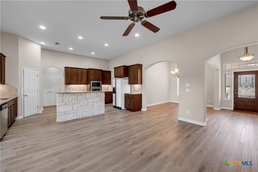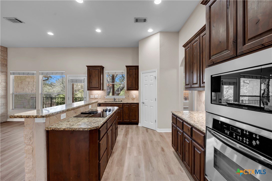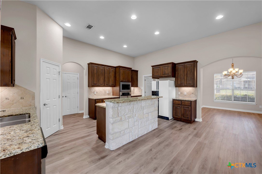 This beautiful home is in a great subdivision! It offers a great split bedroom floor plan, with large country kitchen, granite counter tops, custom trim and cabinets, a formal dining, romantic fireplace in family room, stainless steel appliances, master suite features a jetted tub and walk-in shower. Vinyl and carpet throughout house! Amazing Oaks in the backyard and a spacious rod iron fence around the perimeter! Pictures don't do this home justice. This is a must see in this neighborhood! You won't find another like it! You won't find another like it! Brand new bedroom carpets were just installed as well as a brand new AC system! Vacant and move in ready!
