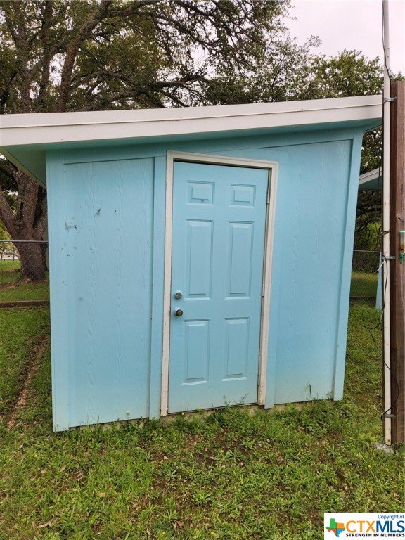 RARE FIND! Lake cottage in Sunrise Beach on Lake LBJ with loads of potential. It is situated on an over-sized lot, with a picnic table and lots of room to play or relax outside, and even has a peek-a-boo lake view! 2 bedrooms, 1 bathroom, open living space and kitchen area with a detached garage and additional indoor space just behind the house. Washer and Dryer are located here and with the addition of a window unit, this could be used as additional living space. The garage/ storage space in the other half of this building has space for all of your lake gear. In addition to the garage storage, there is also an 8.5ft x 12.5ft storage building to keep your tools and lawn mower, or to commit to workshop space. Within Sunrise Beach, you will find 5 lakeside parks with 3 public boat ramps, the closest being just one mile away! Don't miss your opportunity to snag a lake hideaway/ fishing cabin before lake season is in full swing!
