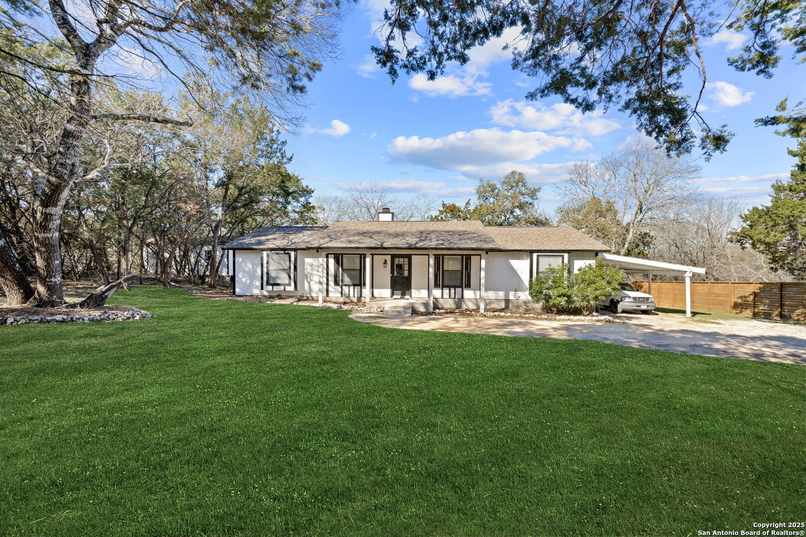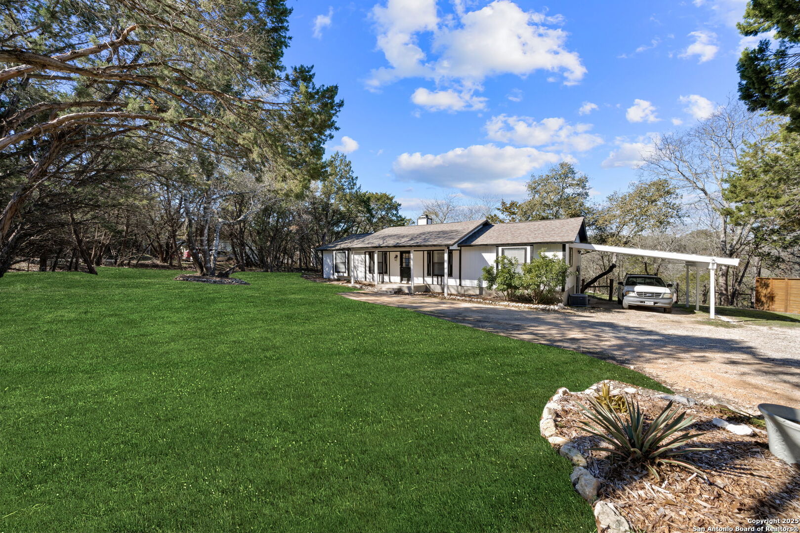 Nestled in the heart of the prime Hill Country, escape to a private paradise without the burden of city taxes! This charming 3-bedroom, 2-bathroom house offers a serene retreat surrounded by mature trees. Located in the highly sought-after Ranger Creek subdivision, you're only minutes away from the amenities of the city, blending convenience with peaceful living. Step into your creative sanctuary with a spacious 276-square-foot workshop. Powered by a 125-amp sub panel, this space is comfortably equipped with an air conditioner unit, dual ceiling fans, cabinets, and built-in shelving. Whether you're a craftsman, artist, or hobbyist, this workshop is ready to inspire your projects. Need more space? Look no further than the separate 300-square-foot concrete slab storage area. Boasting a high ceiling and powered by a 50-amp sub panel, this area includes a mini split system, making it the perfect spot for additional storage or conversion into a unique space tailored to your needs. As of April 15th, 2024, this house is appraised at $390,000, presenting an incredible opportunity to invest in a property that combines the best of rural charm and urban convenience. Embrace the lifestyle you deserve in this house, where comfort meets functionality in a picturesque setting.