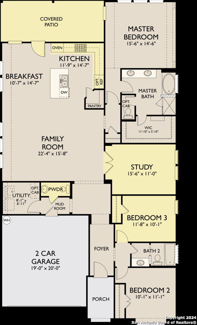 Discover the perfect blend of style and functionality in this spacious one-story home. The dedicated study offers an ideal space for a home office, while the expansive family room seamlessly connects to the gourmet kitchen and breakfast area, creating an open and inviting atmosphere. The kitchen is a chef's dream, featuring a central island, built-in appliances, and a walk-in pantry. Retreat to the luxurious primary suite, complete with a private bath, garden tub, separate shower, and dual vanities. Step outside to the extended covered patio-your new favorite spot for outdoor relaxation.