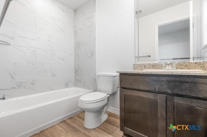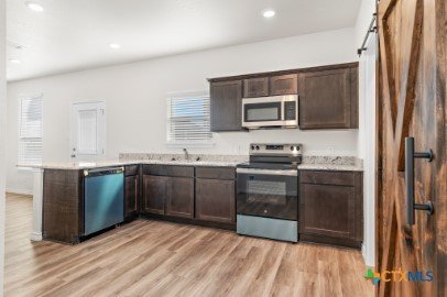 Welcome home to modern comfort, style, and convenience. This brand-new two-story duplex is thoughtfully designed to elevate everyday living with a perfect blend of elegance and functionality. Featuring 3 spacious bedrooms and 2.5 baths, this home offers an open, airy layout ideal for both relaxing and entertaining. The heart of the home is the stunning kitchen—complete with granite countertops, abundant cabinet and storage space, and a layout that flows effortlessly into the living area. A trendy sliding barn door adds a touch of character and contemporary charm, while durable vinyl flooring throughout ensures both style and easy maintenance. Tucked away in a quiet cul-de-sac within an affluent neighborhood, this home provides a sense of privacy and peace, while keeping you close to everything that matters. Enjoy quick access to shopping, dining, and everyday essentials, and a short commute to Fort Hood's Clear Creek Gate, making it ideal for professionals and military families alike. Whether you're unwinding after a long day or hosting those you love, this home offers the perfect backdrop to create memories, comfort, and a true sense of belonging. Modern living starts here—schedule your tour today and fall in love.