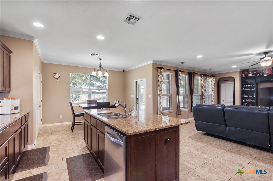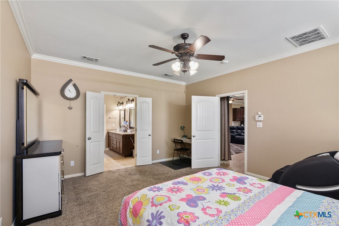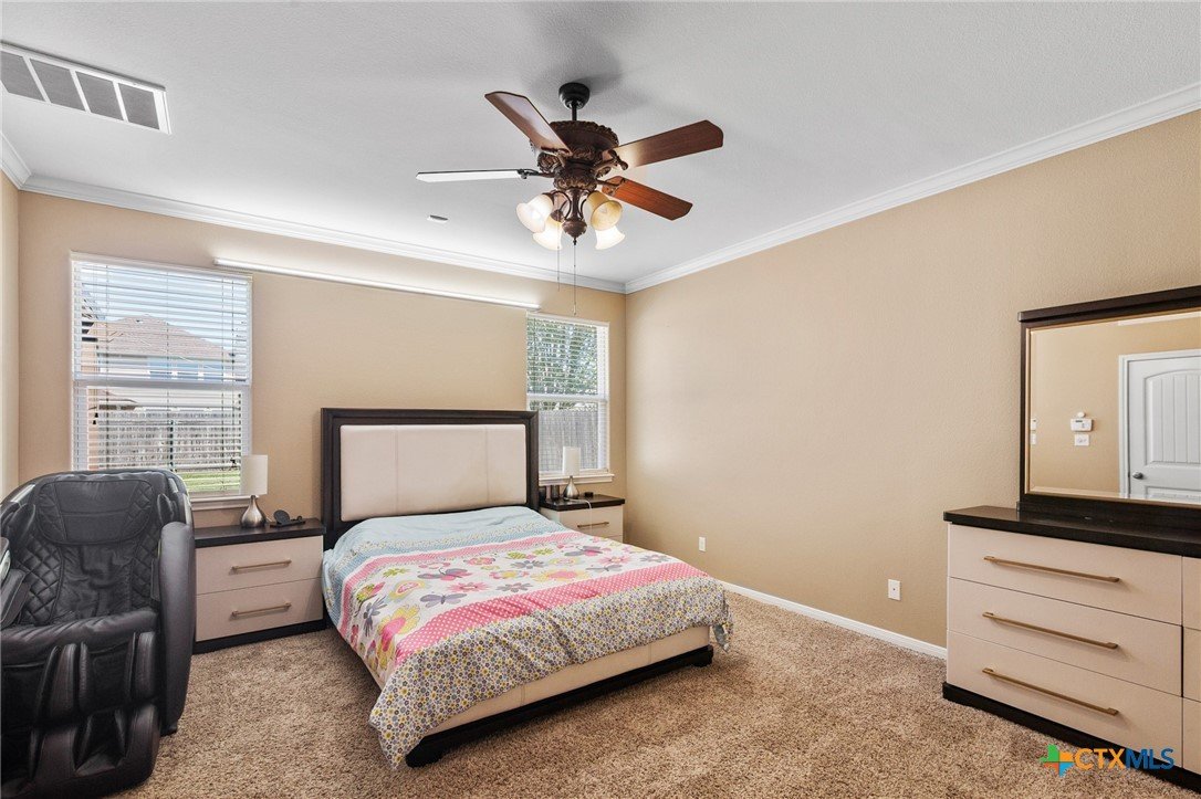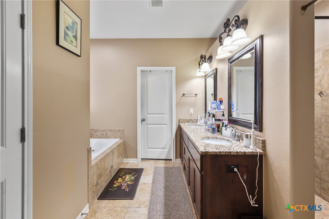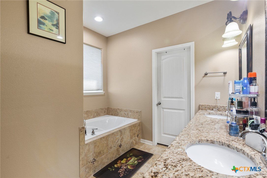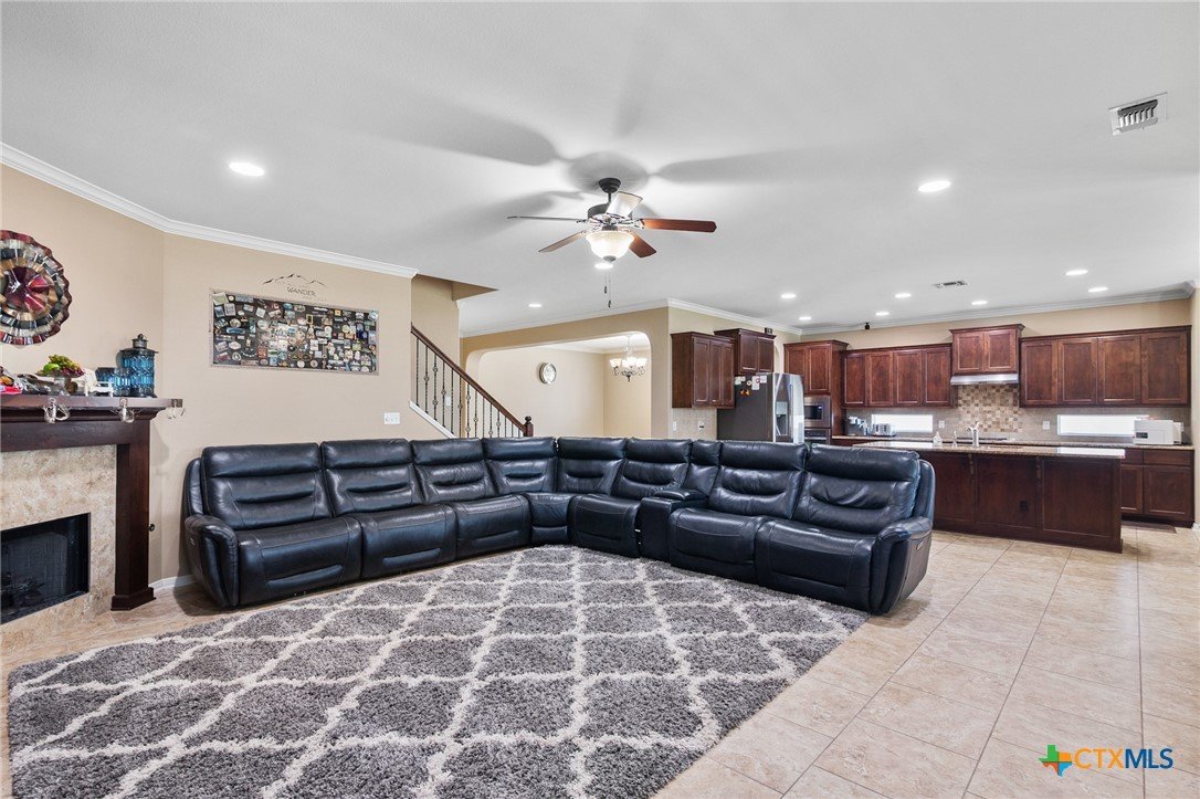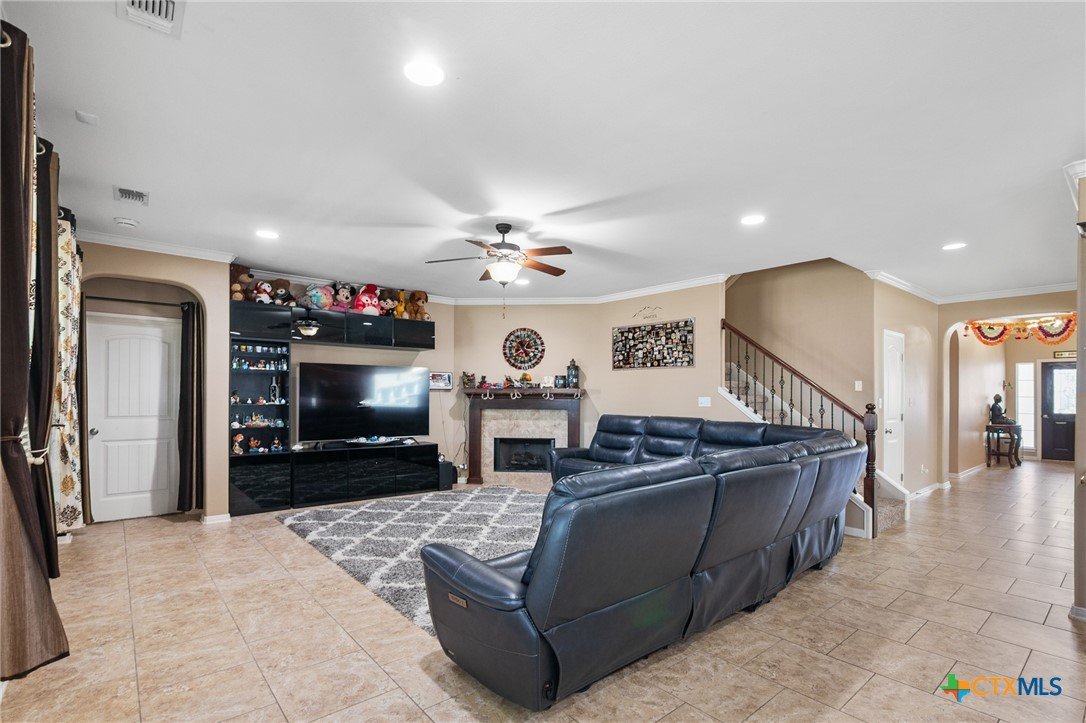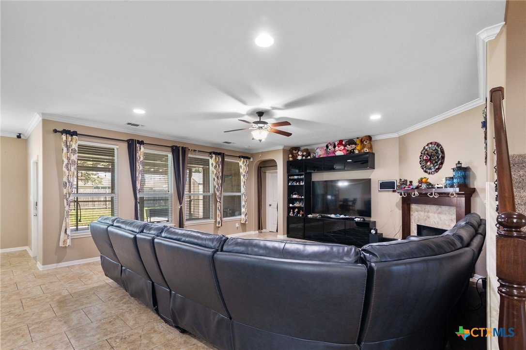 Attractive and spacious gem in Terra Vista! This 5 bedroom and 4 full bath home has it all-multiple living and dining spaces, a split floor plan with an additional flex space or game room upstairs, and a centrally located laundry room with additional storage. The kitchen opens into the large living space and has a huge granite central island, gas cook top, separate oven, large pantry, and breakfast area. The primary bedroom features tray ceilings and a beautiful en-suite bath with large walk-in closet. Check out the large screened in porch and get ready to host all-season backyard events!