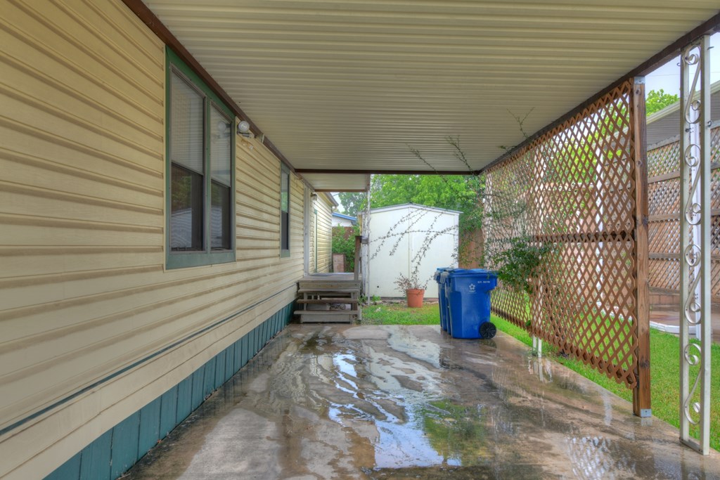 Nice park where you own the land and the home. This subdivision is behind the EXXon station at the corner of Loop 534 and Hwy 173 (the Bandera Highway). This area does back up to the Guadalupe River and the river walk maintained by the City of Kerrville. The home appears to be have been added on to and therefore the Tax office measurements may be less than the actual home. Buyer to confirm measurements before purchasing. Large kitchen area and laundry room is next to the kitchen but not in the kitchen. Two car ports on either side of the home (one attached and one is not). Part of an estate and no disclosures available.