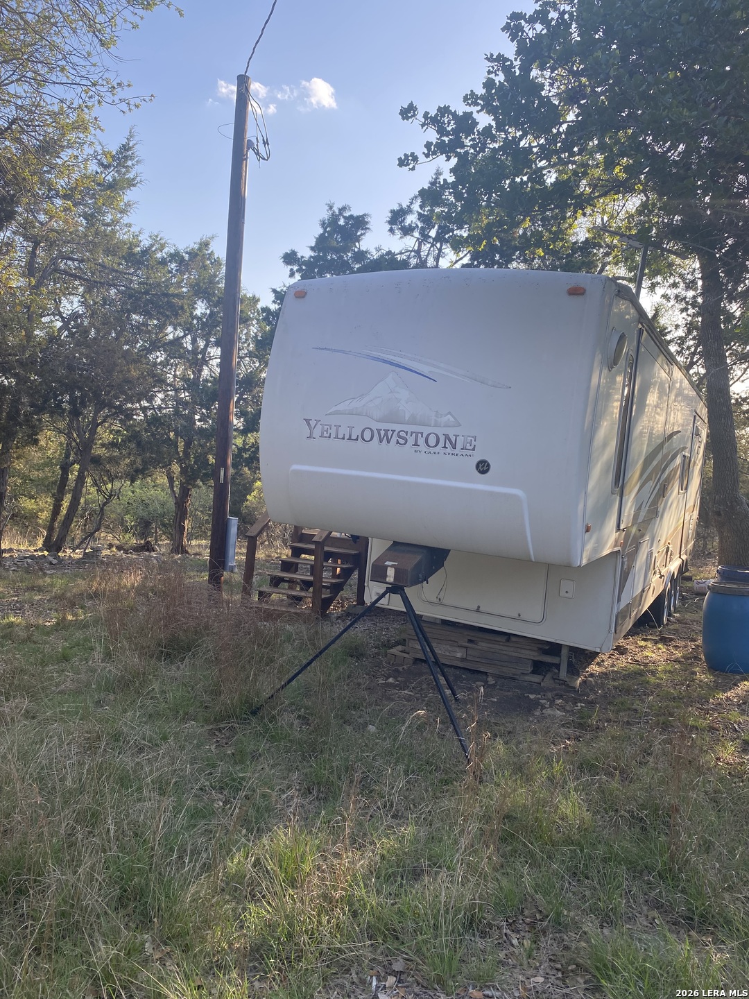 Forested Hill Country acreage available with choices of several and separate building sites. 5th wheel trailer turn key ready on the property. Property in natural state and undeveloped. 1940 ft. elevation brings a nice breeze. Many cedars have been thinned and trimmed. Live oak, walnut , and many other varieties of trees on property. Neighbors have fenced the east property line. 36 foot 2004 Gulf Stream Yellowstone is installed on the property. It has 3 slides and is beautifully furnished and outfitted. Queen bed, 2 tv's, 2 matching recliners, all pots, pans, dishes, etc., so it is move in ready. Wooden entry porch and RV power pole on site. Alamo Springs Ranch is 15 miles from Fredericksburg Main Street and 13 miles south to Comfort and I-10. 60 miles to San Antonio airport. Old Tunnel State Park, the state's smallest, is located at the entrance of Alamo Springs ranch and offers bat viewing seasonally. Alamo Springs Volunteer Fire Department is one half mile away with a dedicated and trained crew using state of the art equipment and distributed water tank infrastructure.