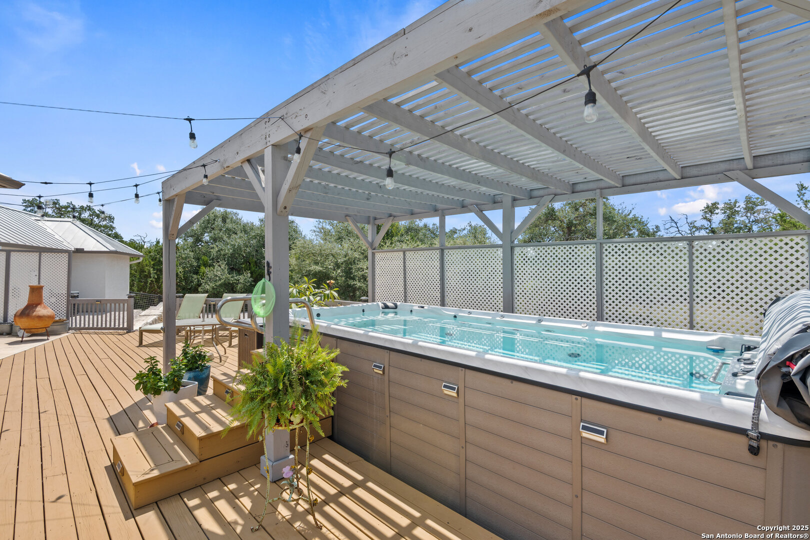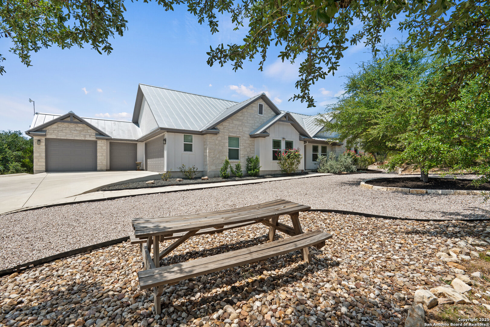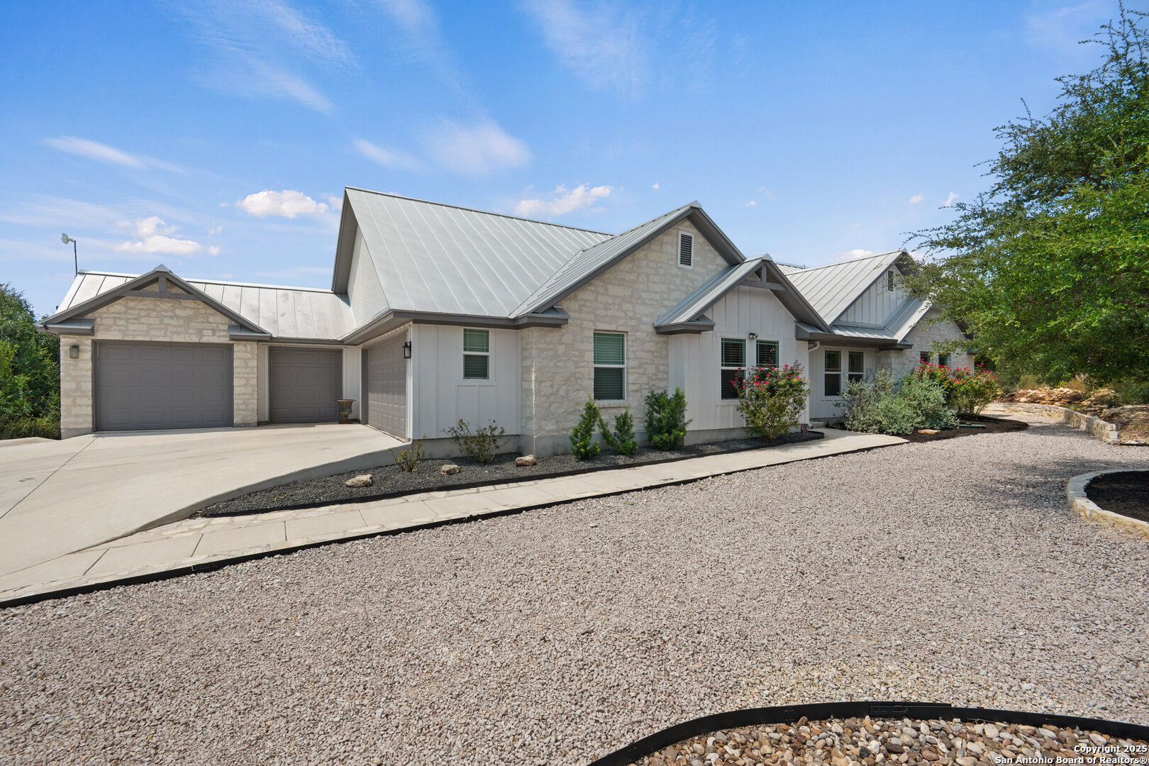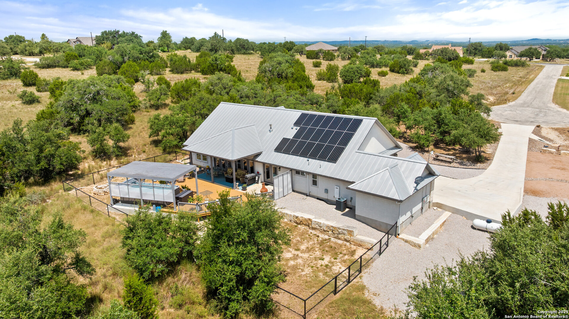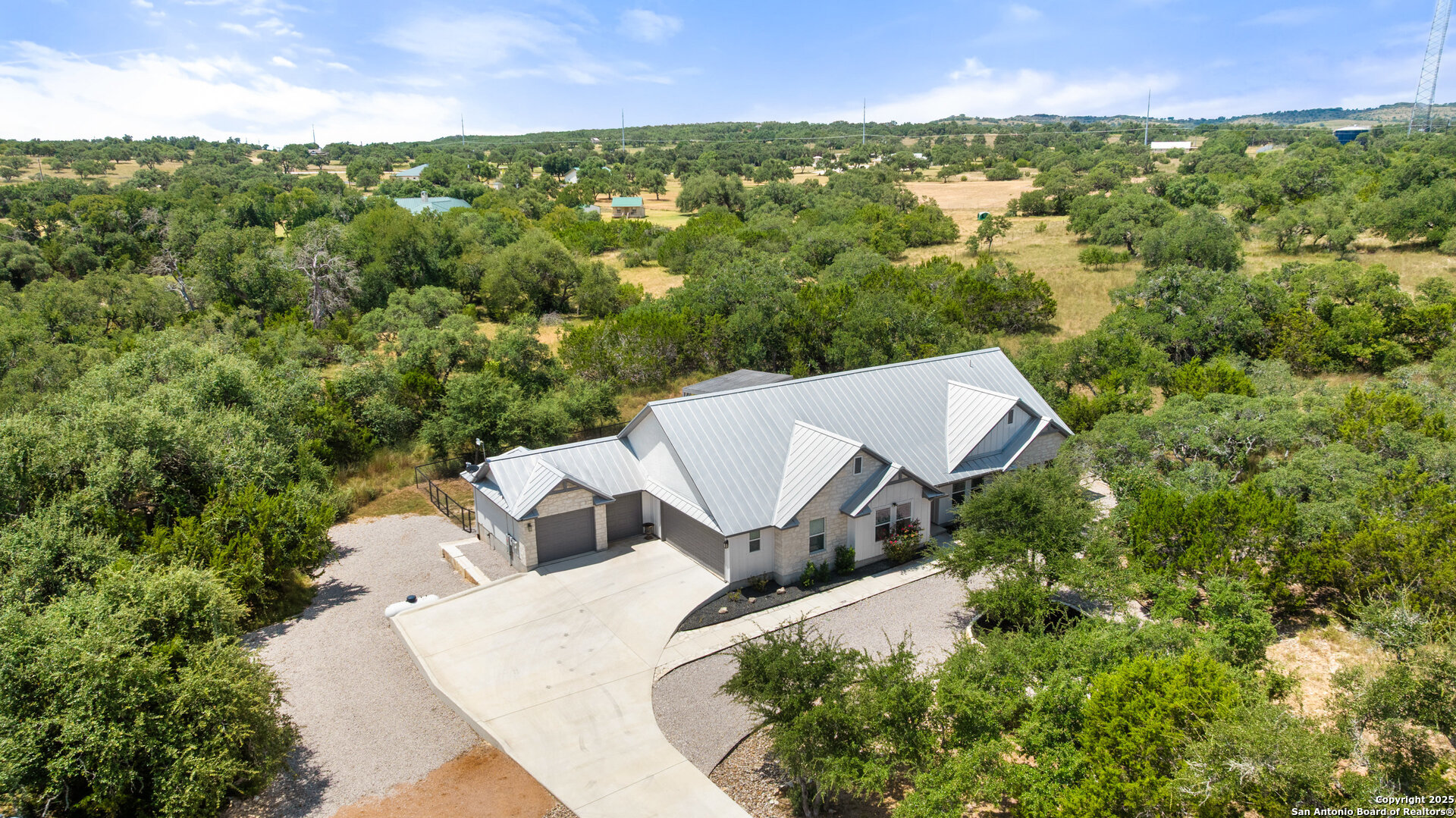 VERY CHARMING home in Rockin J Ranch minutes from shopping and restaurants in Blanco, TX in the heart of the Texas Hill Country! Built in 2021, this well designed 2110sqft 3 bedroom/2.5-bathroom home boasts a thoughtful floor plan that flows seamlessly. The primary suite features his and hers closets, an oversized walk-in shower, and direct access to the oversized back deck. Perfect for entertaining, the living area showcases vaulted ceilings, a gas fireplace, and a spacious and open design that is beautifully lit by the natural light pouring in from the oversized windows. An office/flex space sits right off the entry way that could even be converted into a 4th bedroom. Once outside you'll find an oversized deck with a swim spa and minimal yard maintenance. The home's 3 car garage plus a golf cart garage offers a great opportunity to plug into the local golf community with a dedicated garage space to a cart of your own, have a home gym, or extra storage space. This home is ideally located in the "sweet spot" of the community - far enough back to escape the road noise of HWY 281 but close enough that it is easily accessible. Being at the end of a secluded cul-de-sac only adds to the privacy and tranquility of this property. Rockin J is a gated community offering a community pool and access to the beautiful Vaaler Creek Golf Club. No city taxes. 1hr to Austin and San Antonio, less than 1 hour to the Texas wine country, and minutes to the historic Blanco square. Ask agent about additional acreage available.