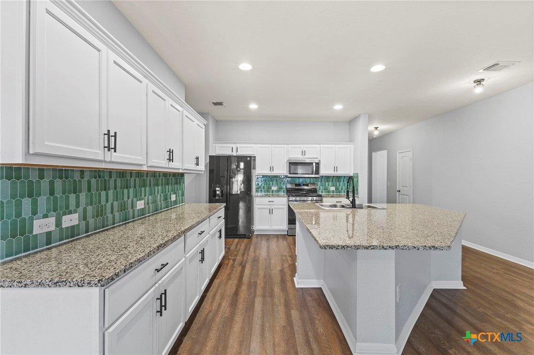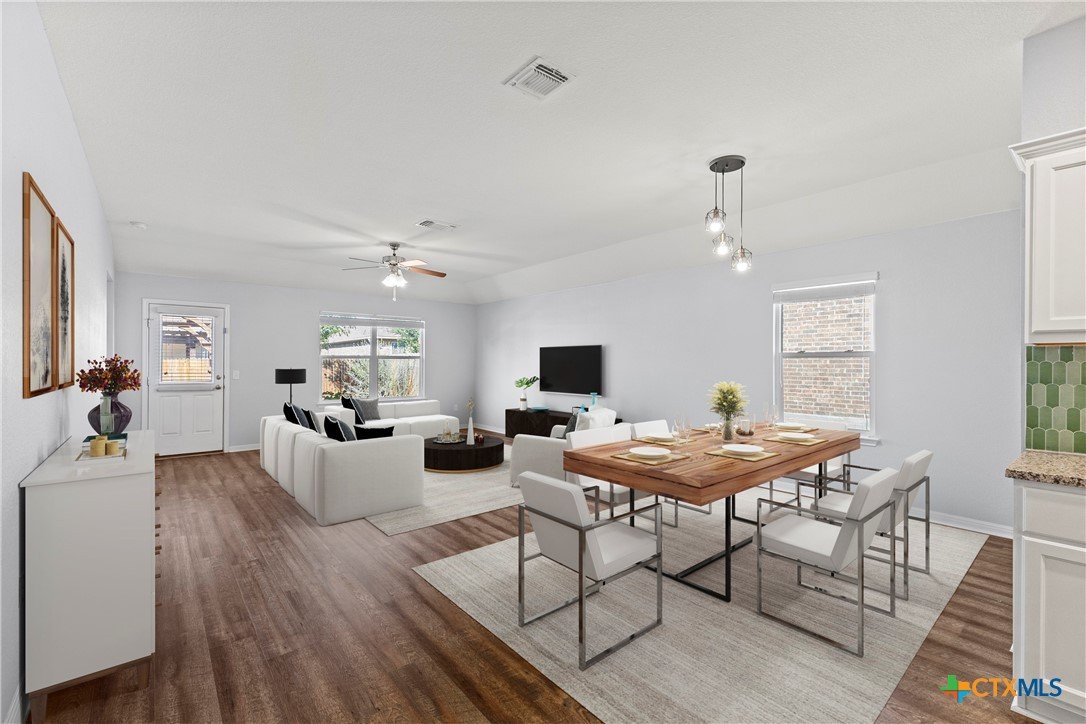 Located at 10600 Menominee Falls Ln in Austin, TX 78754, this well-maintained single-family home offers modern comfort and inviting style. With the trailhead being so close, it’s just a short distance to the community playground and pool area, adding even more convenience and enjoyment to the neighborhood experience. Inside, the spacious living room features a striking vaulted ceiling, creating an open, airy environment ideal for relaxing or entertaining. The kitchen serves as a true centerpiece, equipped with elegant shaker cabinets, stone countertops, a stylish backsplash, and a generous island and breakfast bar—perfect for meal prep, casual dining, and gathering with friends and family. The primary suite includes a walk-in shower and a large walk-in closet, providing comfort and convenience. With 4 bedrooms and 2 bathrooms, the home’s open floor plan enhances flow and functionality throughout. Step outside to a fenced backyard with a patio and pergola, offering a private setting for outdoor living and enjoyment of Austin’s beautiful weather. Additional highlights include a laundry room and a 2-car garage for secure parking and extra storage. Built in 2018, this residence blends contemporary design with thoughtful features, creating a welcoming space ready for you to call home.