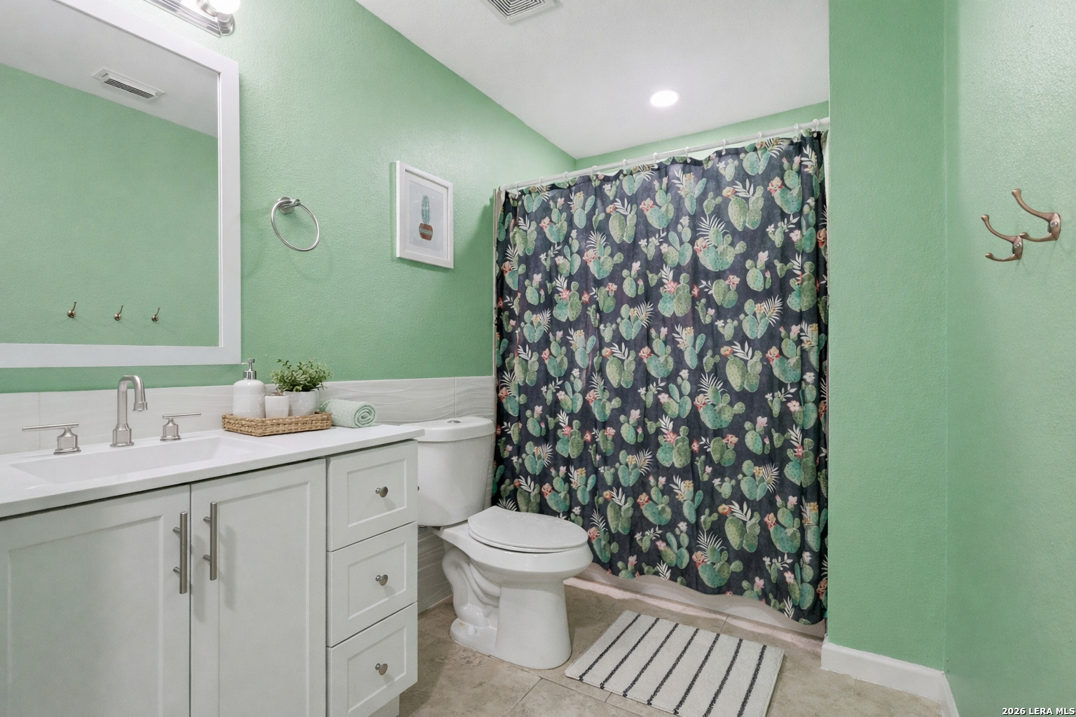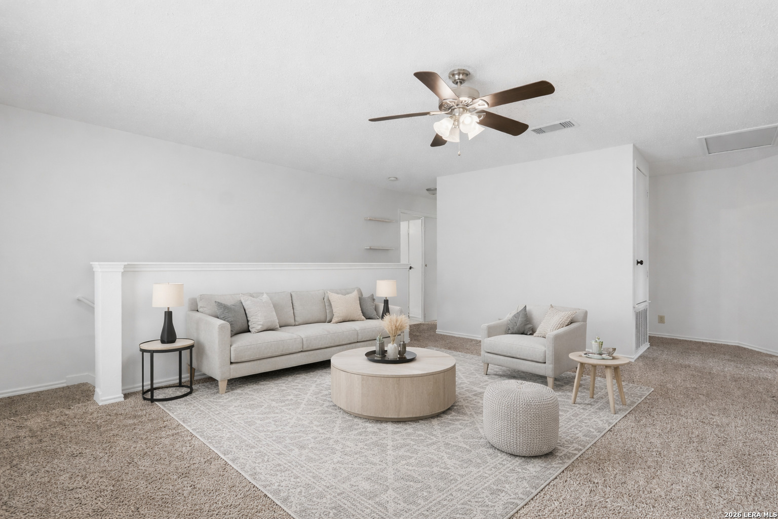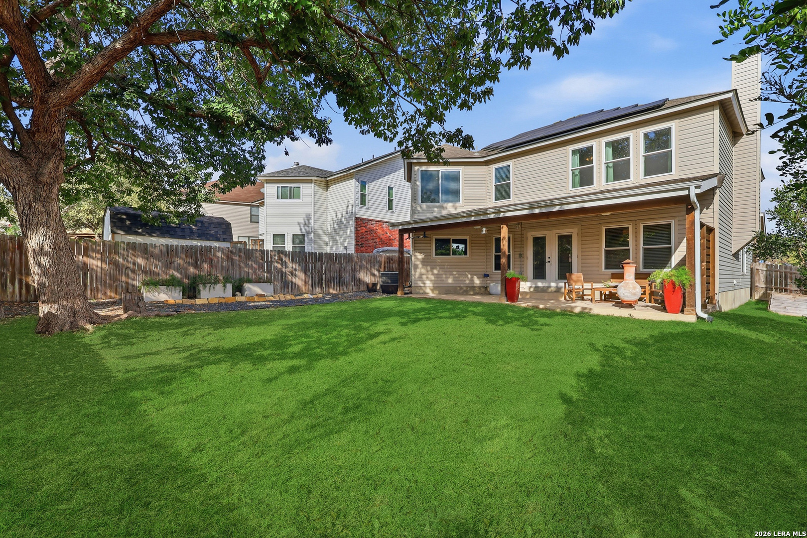 **Open House Jan. 31st 1pm to 3pm** Welcome home to this beautifully maintained 4-bedroom, 2.5-bath home with a 2-car garage and extended driveway, situated on a cul-de-sac street in the highly desirable Stonefield community. From the moment you step inside, you'll notice the pride of ownership and care throughout. The freshly painted interior creates a bright, inviting atmosphere, with a spacious living room that flows seamlessly into a comfortable family room anchored by a cozy fireplace-ideal for everyday living and effortless entertaining. The main level also features a dedicated dining area and a generous kitchen with abundant counter space, making it easy to host gatherings or enjoy casual meals at home. Upstairs, a versatile loft provides additional living space perfect for a game room, office, or media area, while all bedrooms are tucked away for added privacy. The oversized primary suite is a true retreat, complete with a walk-in closet and a spa-inspired ensuite bathroom renovation featuring striking navy subway tile, elegant gold accents, dual vanities, modern fixtures, and a luxurious garden tub designed for relaxation. Secondary bedrooms are well-sized and share a full bath. Major system updates add peace of mind, including updated double-pane energy-efficient windows, a recently updated water heater, and an updated HVAC system that is still under warranty-a huge benefit for today's buyers. The home is also equipped with solar panels, helping to reduce energy costs and improve overall efficiency. Step outside to an expansive covered patio shaded by a beautiful mature tree-an ideal space for outdoor dining, relaxing evenings, or weekend entertaining. Located in a community known for its welcoming neighborhood feel and access to great local schools, this home is also just minutes from Bandera Pointe Shopping Center, H-E-B Plus at Bandera/1604, and a wide variety of dining and everyday conveniences. This move-in ready home truly offers comfort, connection, and smart updates all in one.