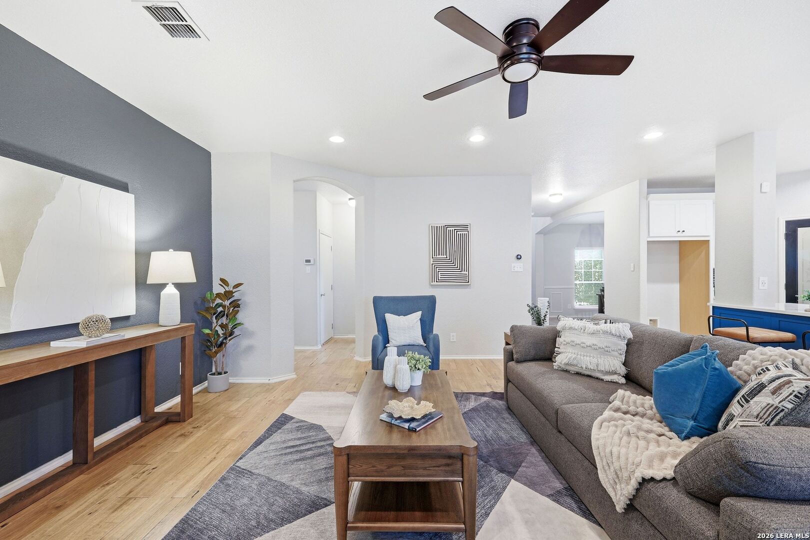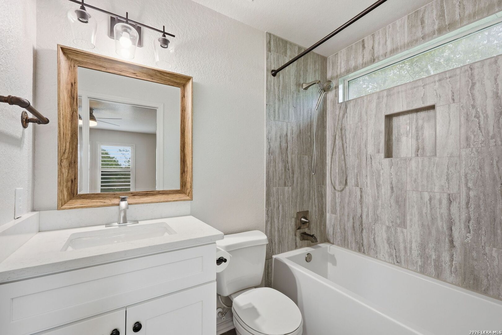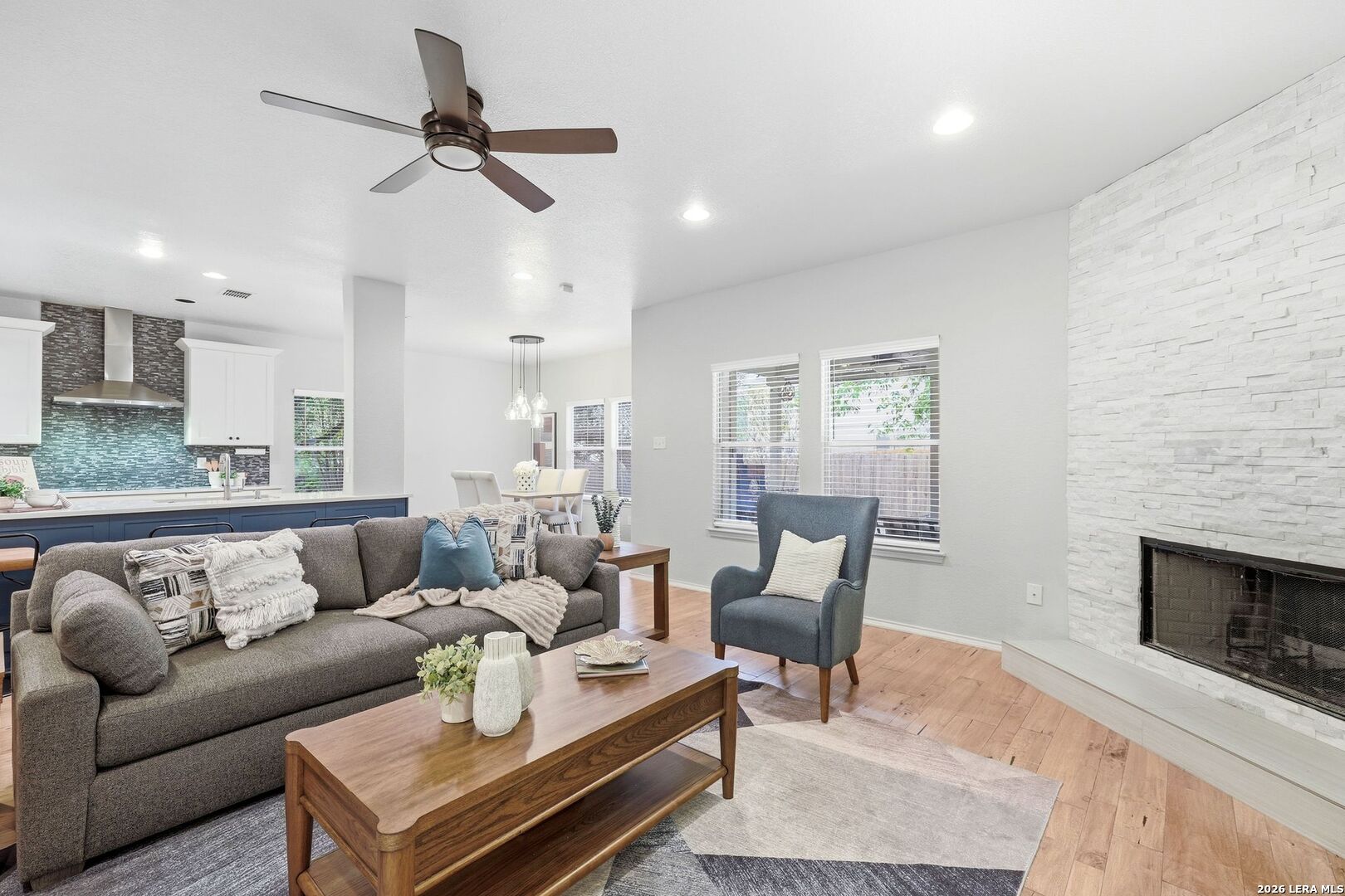 Welcome to 10618 Clover Canyon, a beautifully updated two-story home nestled in the desirable Laurel Canyon community of Helotes. Offering 5 bedrooms, 3.5 bathrooms, and over 3,300 square feet, this home combines space, functionality, and modern style. Step inside to find multiple living and dining areas, ideal for both everyday living and entertaining. The recently updated chef's kitchen features sleek finishes, a new dishwasher, ample cabinetry, and a large island that opens seamlessly to the main living area with a cozy fireplace. The flexible floor plan includes a downstairs bedroom, perfect for guests or a home office. Upstairs, you'll find a spacious game room and generously sized secondary bedrooms, along with a private primary suite featuring a spa-like bathroom and 2 walk-in closets. Situated on a 0.28-acre lot with mature trees, the backyard offers a peaceful retreat with a covered patio, storage shed, and plenty of space to relax or entertain. Located in Northside ISD with convenient access to shopping, dining, and major highways, this home offers the perfect balance of comfort and convenience.