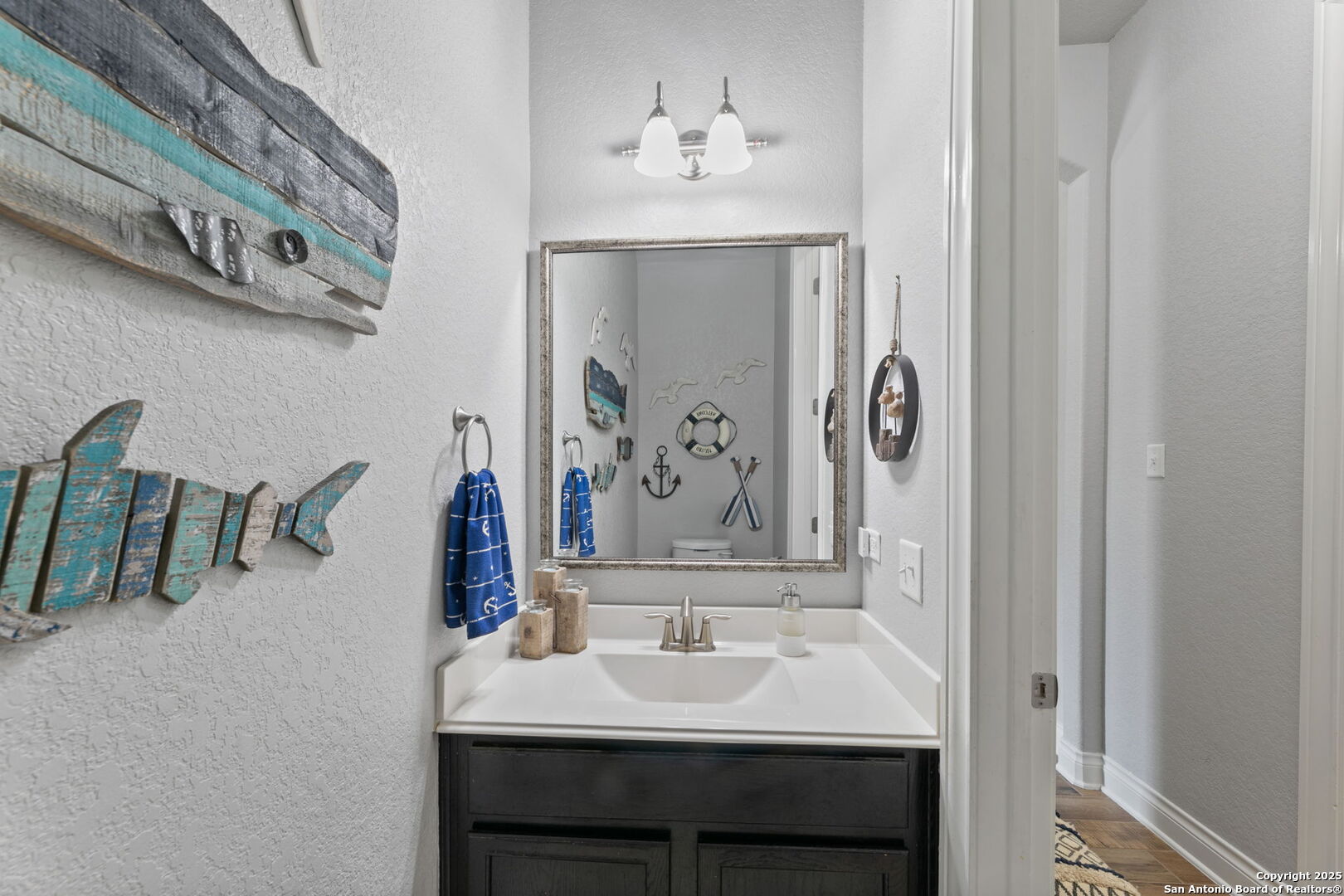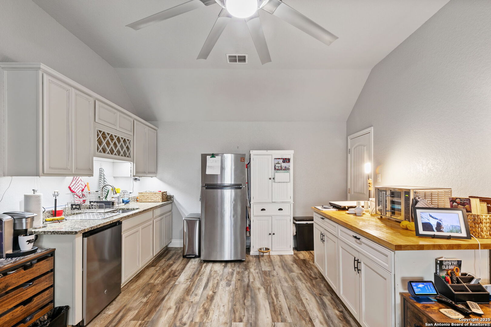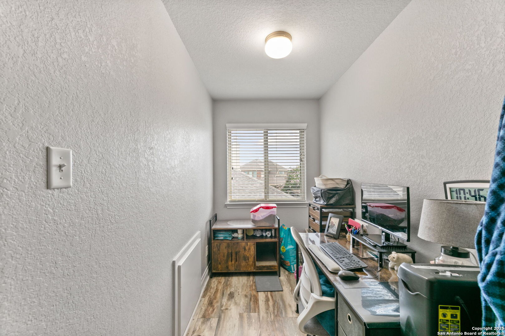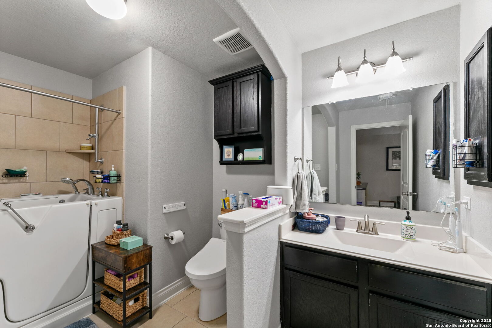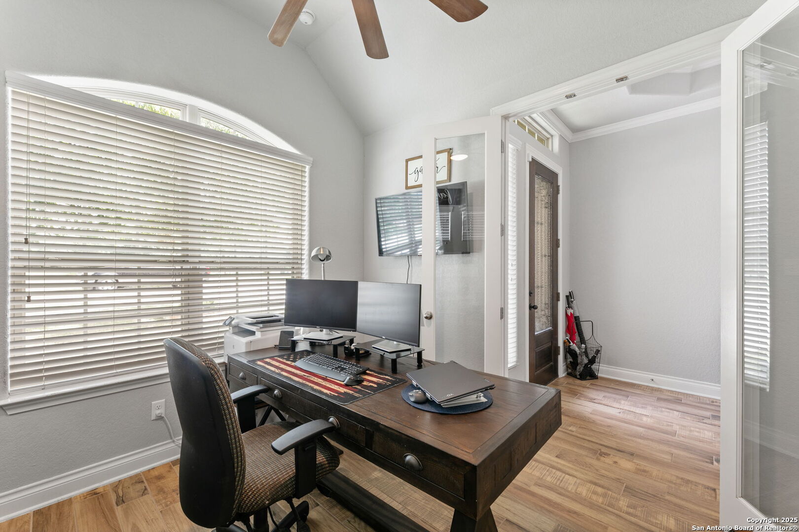 Discover the unique features of this wonderfully designed Ashton Woods home, boasting a multi-generational plan and numerous builder's upgrades. The flexible upper-level show cases a wet bar, sink, refrigerator, and a spacious 4th bedroom complete with a walk-in closet. Luxurious amenities abound, including a walk-in jet tub, and bidet toilet. The Master Suite, which is conveniently situated on the main level alongside a primary bath featuring separate vanities and walk-in closets. Enhanced by wood-look tiles and 8' doors throughout the lower level, this residence also offers carpeting in the two-guest bedrooms. Additional highlights encompass a separate office, a formal dining room or use as a flex room, a generous kitchen with a gas cooktop, and an abundance of storage space. Noteworthy seller upgrades include 26 solar panels to reduce monthly electricity costs, a Solaris PCO, IAQ Air Purifier system, and water softener. Delight in approximately 480 sq ft of expanded patio space featuring a charming fire pit, as well as a low maintenance fenced backyard with artificial grass. The property is equipped with a 7-zone irrigation system and two separate attics for added functionality. Short drive to medical, shopping, the rivers and Schlitterbahn activities. This home is a must see!
