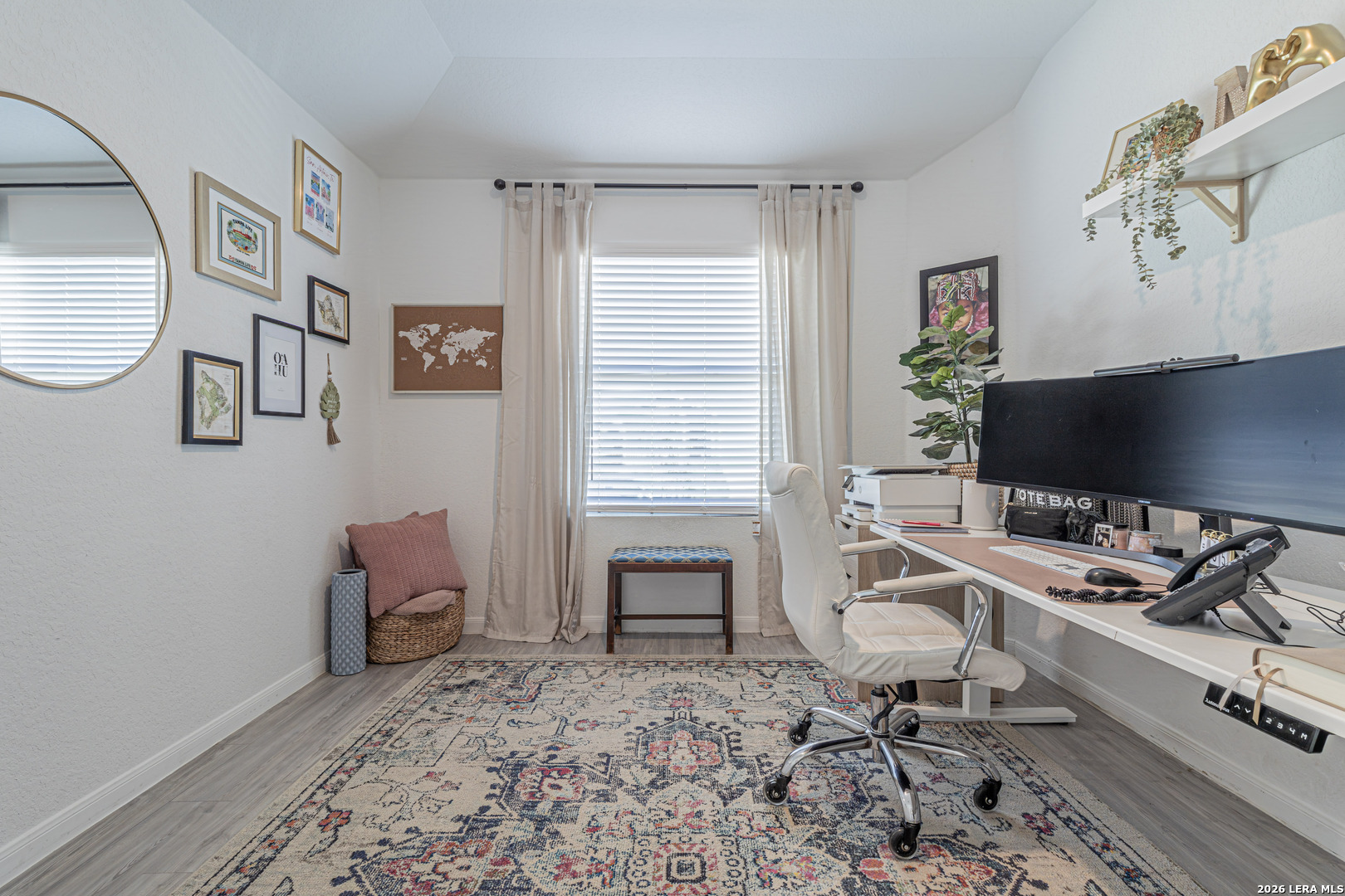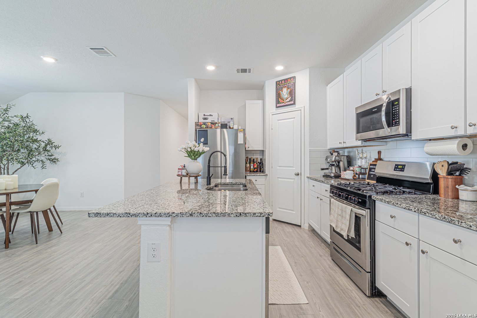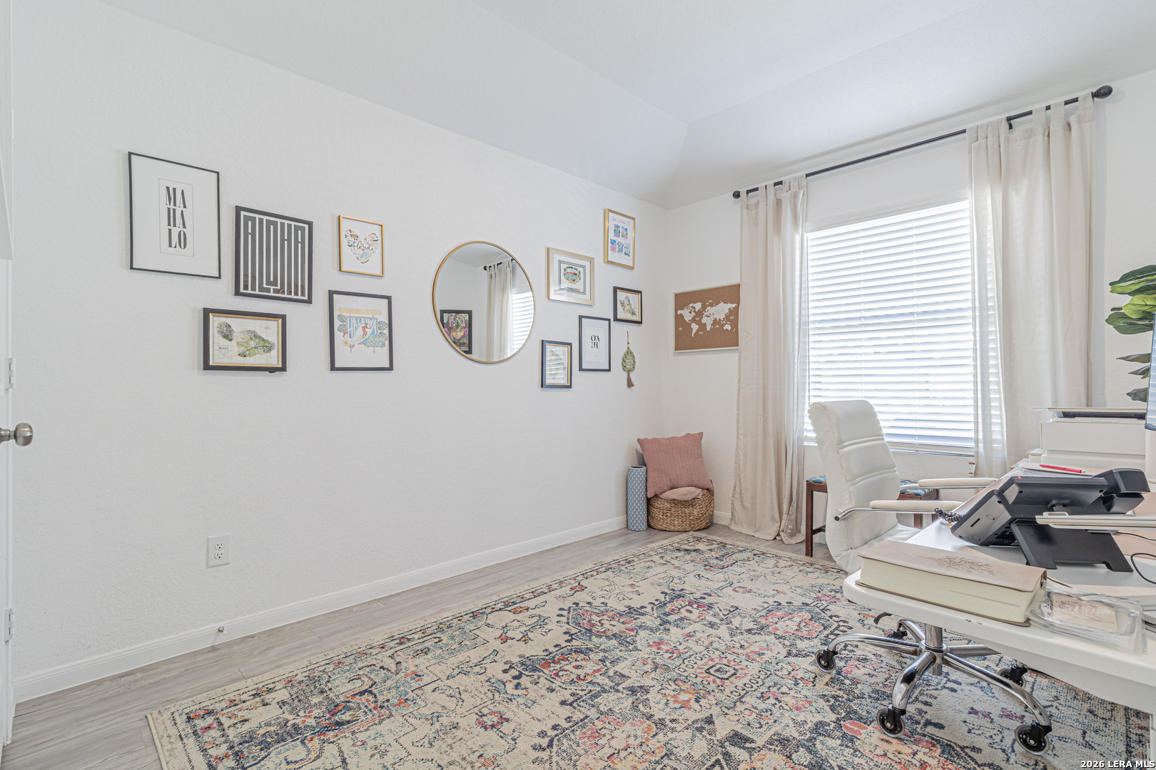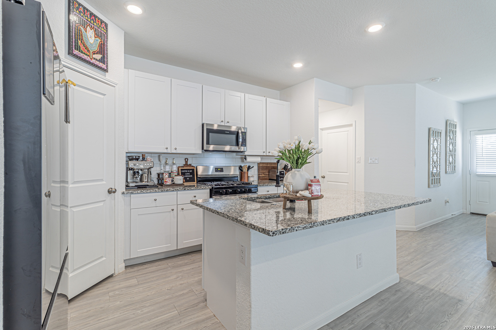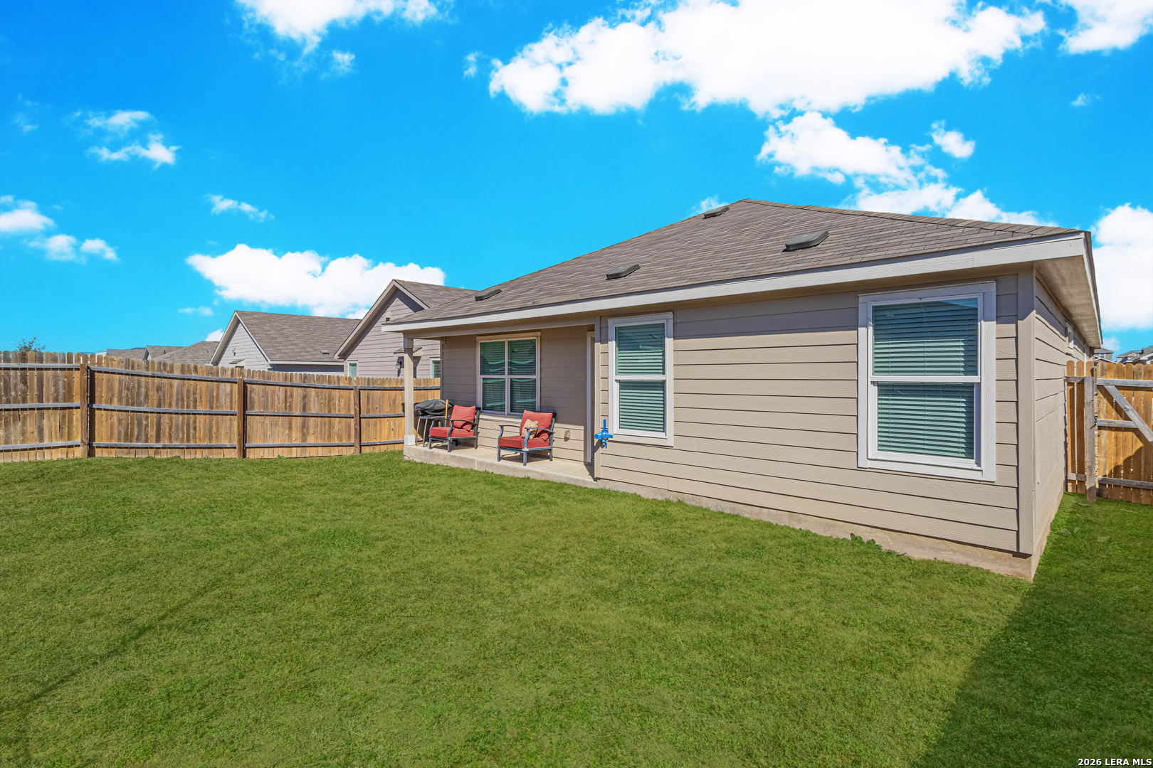 Welcome to this beautiful 3-bedroom home featuring a dedicated office that easily doubles as a 4th bedroom or media room, offering flexibility to fit your lifestyle. Gorgeous hardwood flooring flows throughout the main living areas, creating a warm and timeless feel. The open-concept floor plan is perfect for entertaining, with a spacious kitchen showcasing granite countertops, stainless steel appliances, and seamless connection to the living and dining spaces. Step outside to enjoy both indoor and outdoor living with a covered patio overlooking the backyard, ideal for gatherings or relaxing evenings. The primary suite is a true retreat, highlighted by an oversized custom walk-in closet with exceptional storage. Conveniently located near Randolph Air Force Base, this home also includes a two-car garage and combines comfort, style, and an unbeatable location.