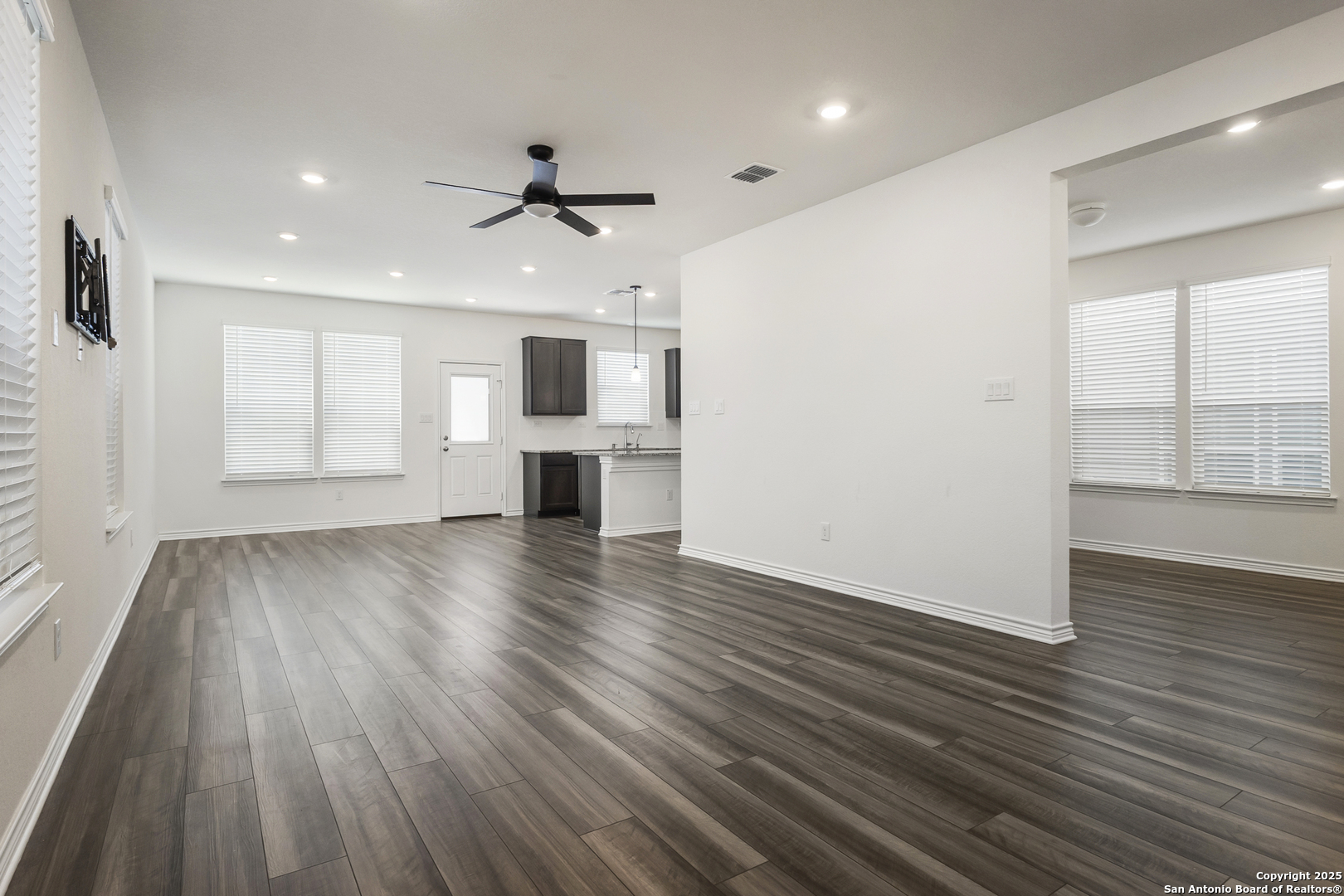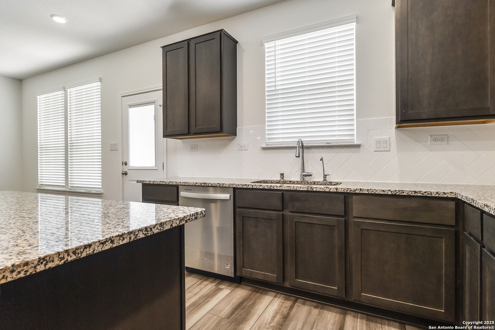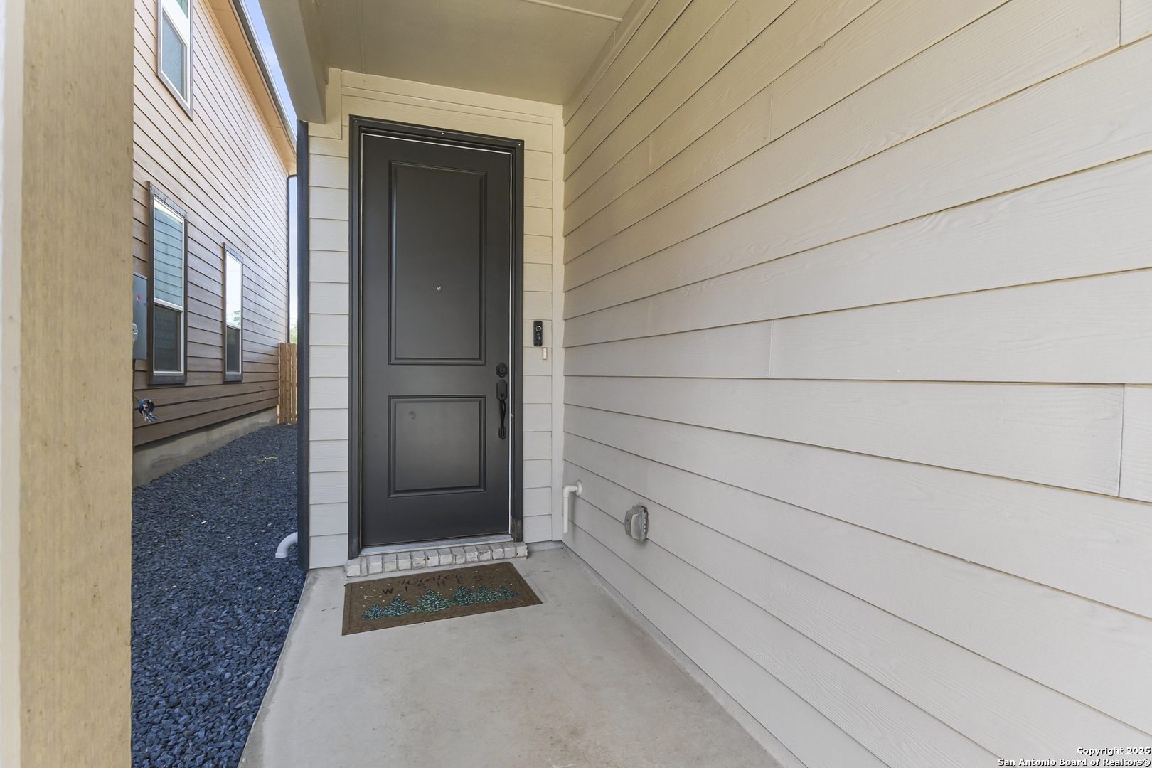 Step into modern comfort and smart upgrades in this stunning two-story home, built in 2024 and still under builder's warranty-meaning peace of mind for years to come. Soaring 9-ft. ceilings create an open, airy atmosphere, perfectly complemented by vinyl plank flooring for durability and style, and Generation Lighting fixtures that brighten every room with elegance. The kitchen is a chef's dream, ideal for both everyday living and entertaining. Enjoy a full suite of Whirlpool stainless steel appliances (dishwasher, electric stove, oven, countertop microwave, hood), a massive Samsung 28 cu. ft. side-by-side refrigerator, a built-in 3-level water purifier, quartz backsplash, an extended breakfast bar, and abundant cabinet storage with a walk-in pantry-making meal prep, hosting, and storage effortless. The living area is flooded with natural light, perfect for cozy family nights or hosting friends. A ceiling fan keeps the space comfortable, and a pre-mounted TV wall mount adds instant convenience for entertainment. The primary suite upstairs is your personal retreat, featuring a walk-in closet, framed mirrors, and a luxurious bath. Relax in the spa-inspired primary bath, complete with an extended cabinet offering kneespace and a 42-in. garden tub/shower with Emser tile surround, combining style and functionality for a spa-like experience every day. All bathrooms feature tile flooring, framed mirrors, and extra cabinetry for organized, stylish storage. Washer and dryer are included, simplifying your move-in process. Walls throughout the home are insulated for energy efficiency, keeping utility costs low, while smart additions like sensor pipes, an exhaust fan, and a soft water loop enhance safety, comfort, and convenience. Step outside to your private backyard oasis: a 10x12ft cement patio ideal for BBQs, family gatherings, or relaxing under the Texas sky. The yard is beautifully landscaped and includes a dedicated vegetable garden bed and fruit trees (plantain, apple, and lemon), perfect for fresh, homegrown produce. For peace of mind and modern security, this home comes equipped with 360-degree cameras covering the driveway and backyard, a Ring doorbell with camera at the front door, and a garage camera, keeping your family and property safe and secure at all times. Additional lifestyle upgrades include blinds throughout, ceiling fans in the hall and master bedroom, garage lighting, hand rails for safety, and furniture such as a king-size bed frame-all designed to make daily living effortless and comfortable. Located in the highly sought-after Cove at Westover Hills, this gated community offers security, peace of mind, and additional car parking space. Convenience is unmatched, with easy access to major roadways like Loop 1604, Highway 151, and Loop 410, ensuring stress-free commutes. Outdoor enthusiasts will love the proximity to SeaWorld San Antonio and Government Canyon State Natural Area, perfect for hiking, biking, camping, and wildlife observation. This home seamlessly blends modern convenience with lifestyle living, making it a place you'll love to call home. What's Special: Vinyl plank flooring 10x12ft backyard cement flooring Backyard with vegetable garden bed + fruit trees (plantain, apple, lemon) Carrara style entry door Blinds included throughout the home All Appliances included Generation lighting fixtures Ceiling fans in the hall & master bedroom TV wall mount included Garage opener/light included Hand rails for safety & style Gated community with additional car parking space Builder's warranty available 360 degree Security camera Insulated walls