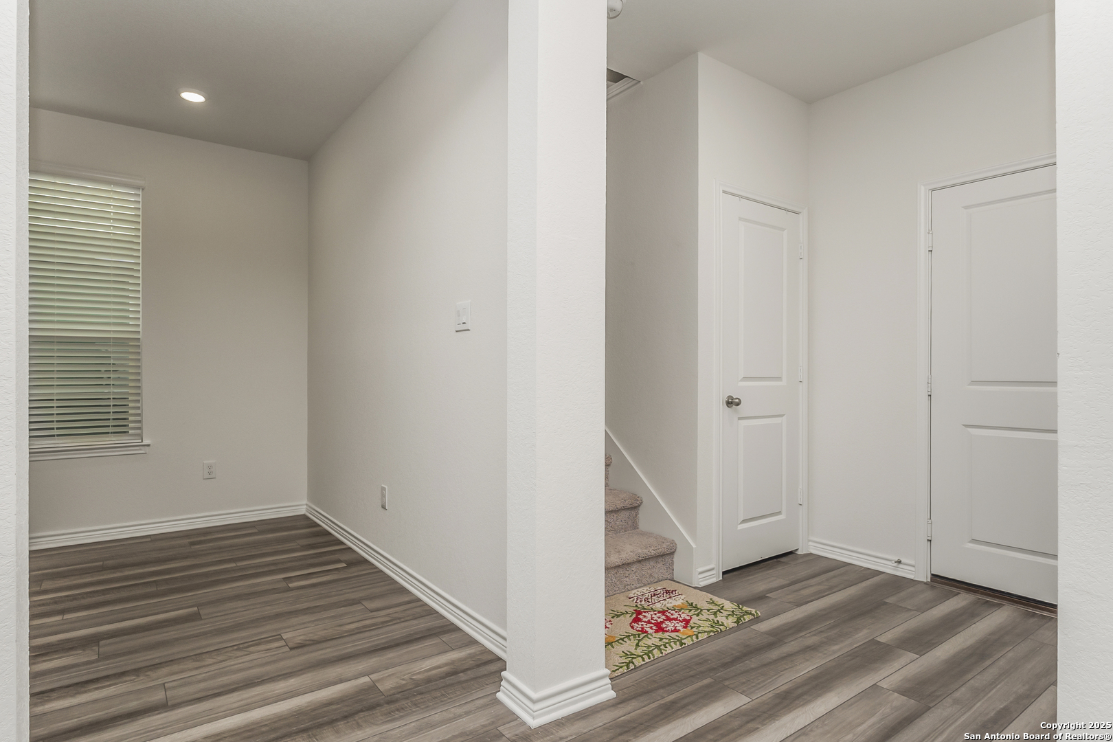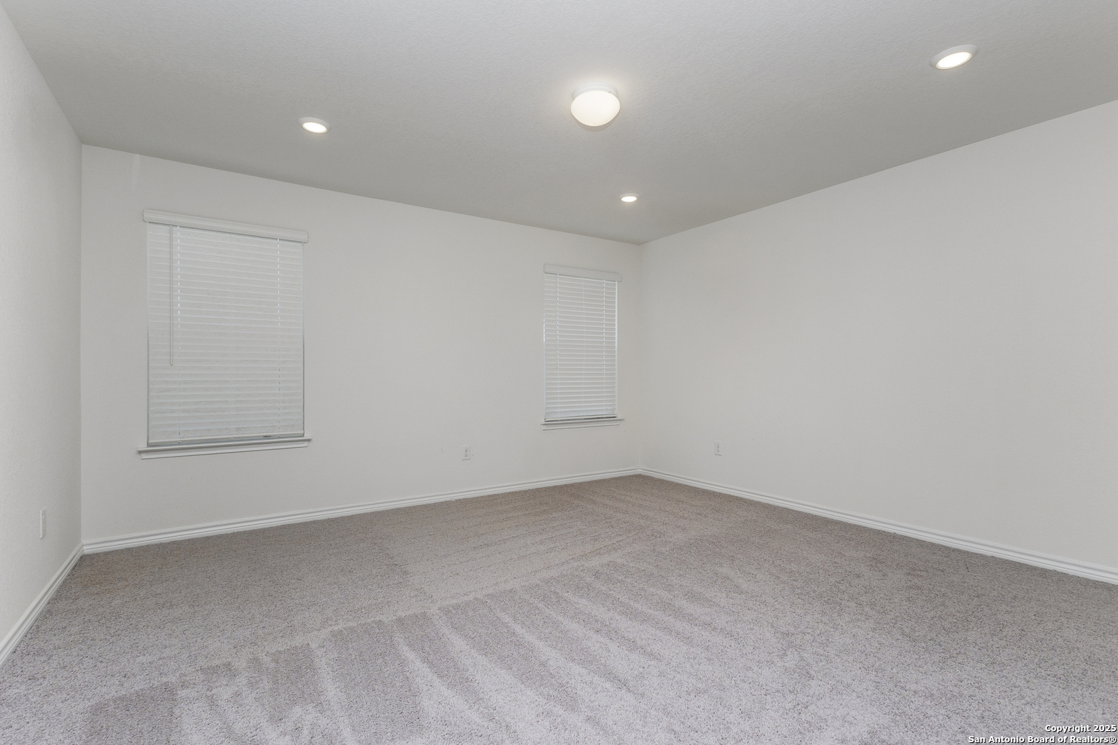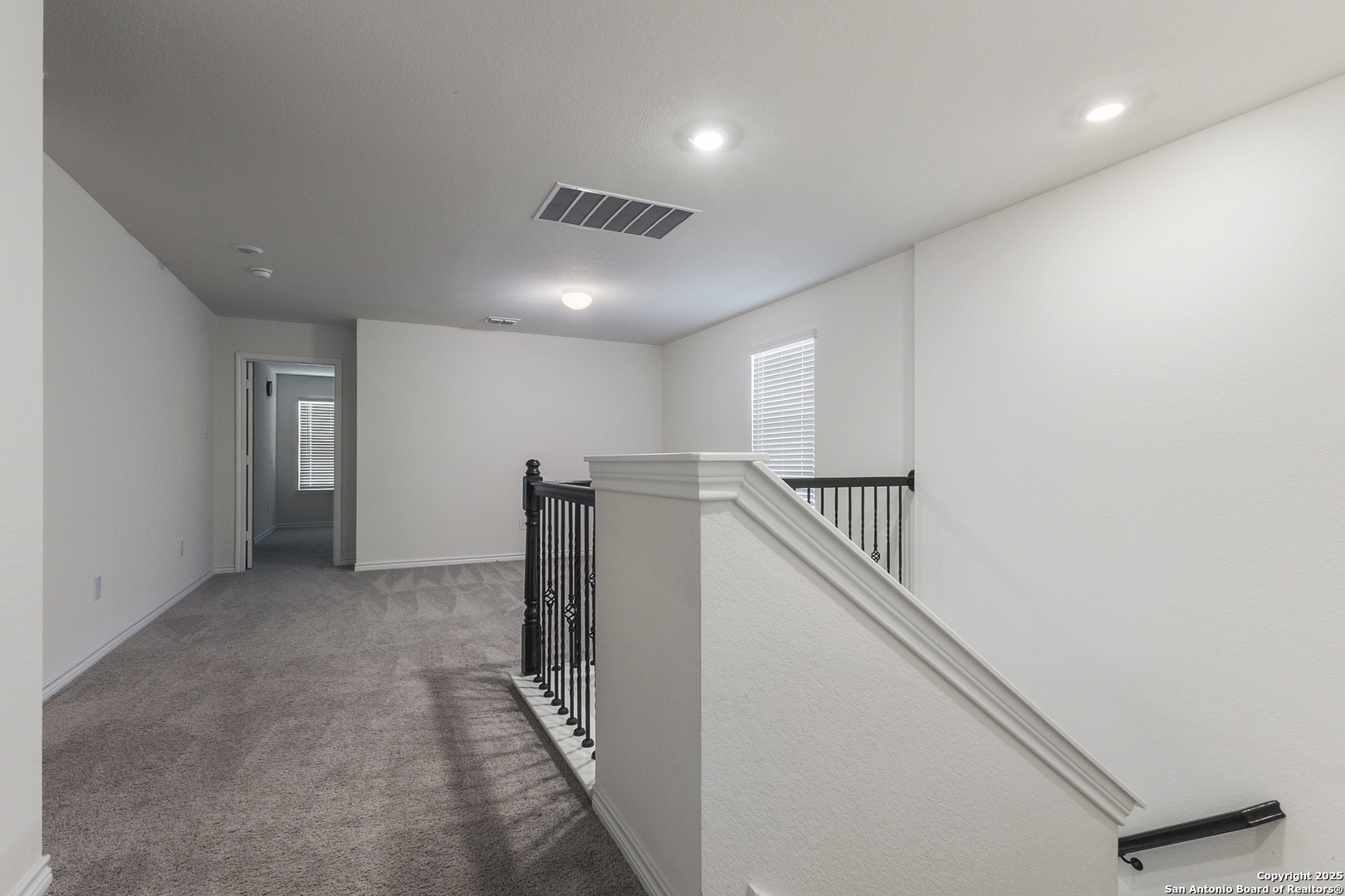 Step into modern comfort and smart upgrades in this stunning two-story home, built in 2024 and still under builder's warranty-meaning peace of mind for years to come. Soaring 9-ft. ceilings create an open, airy atmosphere, perfectly complemented by vinyl plank flooring for durability and style, and Generation Lighting fixtures that brighten every room with elegance. The kitchen is a chef's dream, ideal for both everyday living and entertaining. Enjoy a full suite of Whirlpool stainless steel appliances (dishwasher, electric stove, oven, countertop microwave, hood), a massive Samsung 28 cu. ft. side-by-side refrigerator, a built-in 3-level water purifier, quartz backsplash, an extended breakfast bar, and abundant cabinet storage with a walk-in pantry-making meal prep, hosting, and storage effortless. The living area is flooded with natural light, perfect for cozy family nights or hosting friends. A ceiling fan keeps the space comfortable, and a pre-mounted TV wall mount adds instant convenience for entertainment. The primary suite upstairs is your personal retreat, featuring a walk-in closet, framed mirrors, and a luxurious bath. Relax in the spa-inspired primary bath, complete with an extended cabinet offering kneespace and a 42-in. garden tub/shower with Emser tile surround, combining style and functionality for a spa-like experience every day. All bathrooms feature tile flooring, framed mirrors, and extra cabinetry for organized, stylish storage. Washer and dryer are included, simplifying your move-in process. Walls throughout the home are insulated for energy efficiency, keeping utility costs low, while smart additions like sensor pipes, an exhaust fan, and a soft water loop enhance safety, comfort, and convenience. Step outside to your private backyard oasis: a 10x12ft cement patio ideal for BBQs, family gatherings, or relaxing under the Texas sky. The yard is beautifully landscaped and includes a dedicated vegetable garden bed and fruit trees (plantain, apple, and lemon), perfect for fresh, homegrown produce. For peace of mind and modern security, this home comes equipped with 360-degree cameras covering the driveway and backyard, a Ring doorbell with camera at the front door, and a garage camera, keeping your family and property safe and secure at all times. Additional lifestyle upgrades include blinds throughout, ceiling fans in the hall and master bedroom, garage lighting, hand rails for safety, and furniture such as a king-size bed frame-all designed to make daily living effortless and comfortable. Located in the highly sought-after Cove at Westover Hills, this gated community offers security, peace of mind, and additional car parking space. Convenience is unmatched, with easy access to major roadways like Loop 1604, Highway 151, and Loop 410, ensuring stress-free commutes. Outdoor enthusiasts will love the proximity to SeaWorld San Antonio and Government Canyon State Natural Area, perfect for hiking, biking, camping, and wildlife observation. This home seamlessly blends modern convenience with lifestyle living, making it a place you'll love to call home. What's Special: Vinyl plank flooring 10x12ft backyard cement flooring Backyard with vegetable garden bed + fruit trees (plantain, apple, lemon) Carrara style entry door Blinds included throughout the home All Appliances included Generation lighting fixtures Ceiling fans in the hall & master bedroom TV wall mount included Garage opener/light included Hand rails for safety & style Gated community with additional car parking space Builder's warranty available 360 degree Security camera Insulated walls
