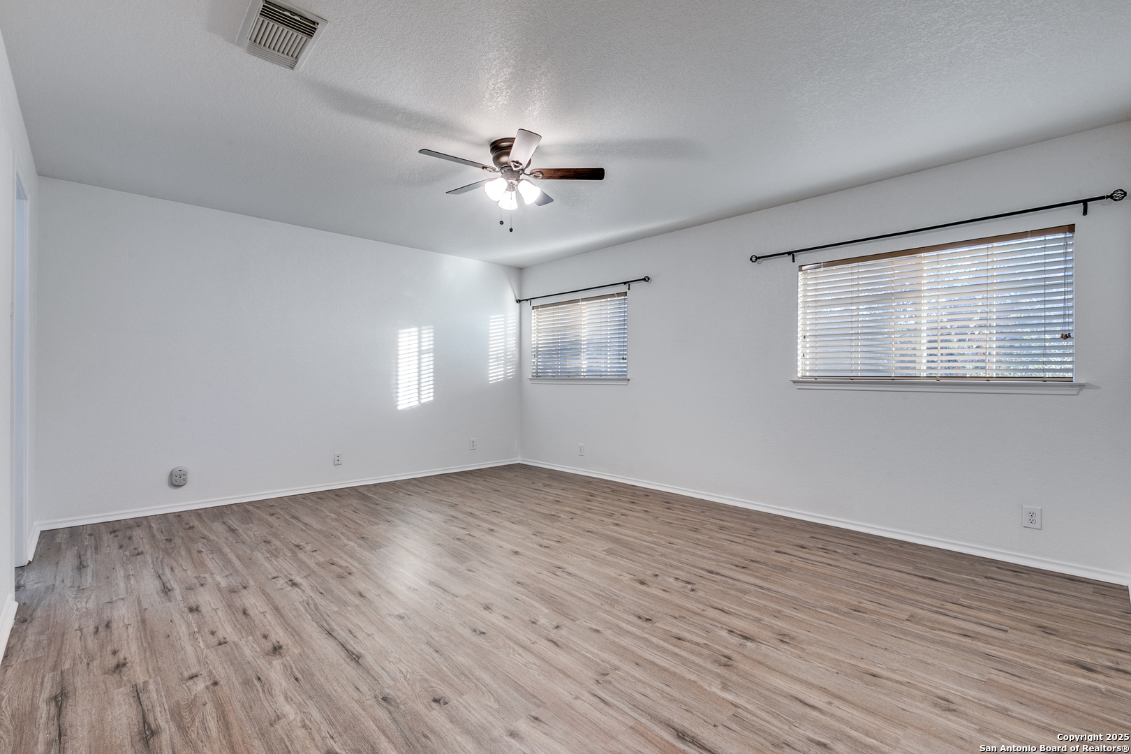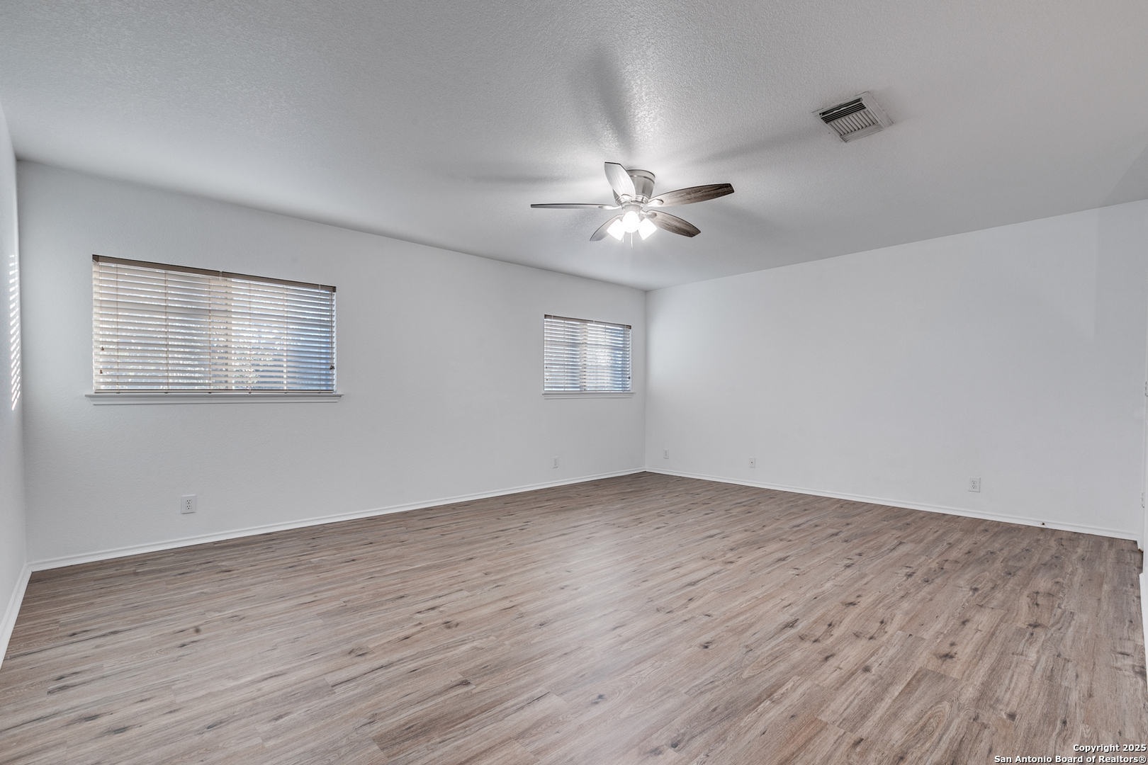 Welcome home. Well-maintained MOVE-IN READY and beautiful residence featuring an open, spacious layout filled with natural light. Enjoy comfortable living areas & generously sized bedrooms-perfect for family or guests. The bright kitchen offers ample cabinet space & a large walk-in pantry. The separate dining area and large family room boast gleaming floors and an inviting atmosphere. NO CARPET throughout! Oversized loft upstairs provides many possibilities for work, play, or relaxation. Every room is enhanced w/ceiling fans or elegant light fixtures. Outside, you'll find a large, fenced backyard w/mature trees & a spacious patio-ideal for entertaining or simply unwinding. NEAR LACKLAND AFB & SEA WORLD and shopping areas, this home combines comfort, convenience and charm in a quiet, desirable neighborhood. Roof replaced in 2025. May be better than new.