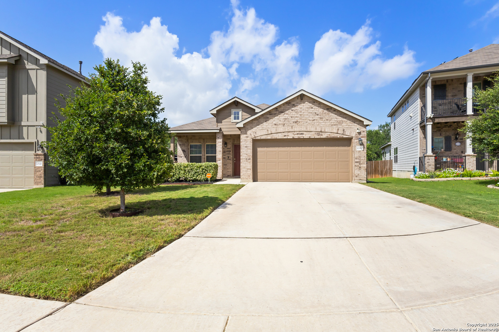 Welcome to this beautifully maintained single-story home that backs up to a peaceful greenbelt-offering added privacy and a touch of nature right in your own backyard. Inside, you'll find an open floor plan ideal for both everyday living and entertaining. The island kitchen is the heart of the home, featuring bar seating, granite countertops, rich wood cabinetry, and sleek stainless steel appliances. The spacious primary bedroom offers a relaxing retreat with an en suite bath that boasts a large walk-in shower and a double vanity for added comfort and convenience. A perfectly sized office area provides a quiet space for remote work or study, while a separate living area offers flexible use as a formal dining space, reading nook, or additional lounge. Modern light fixtures throughout the home add a stylish, updated touch. Step out back to a covered patio that's perfect for relaxing or hosting weekend BBQs. With three bedrooms, two full baths, and convenient access to Loop 1604, this home blends comfort, functionality, and location in one smart package.