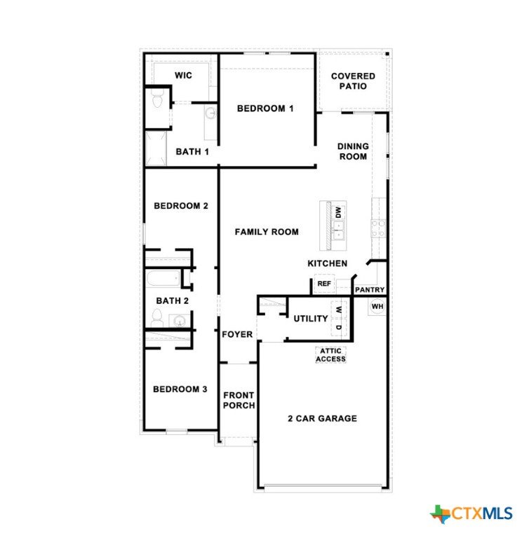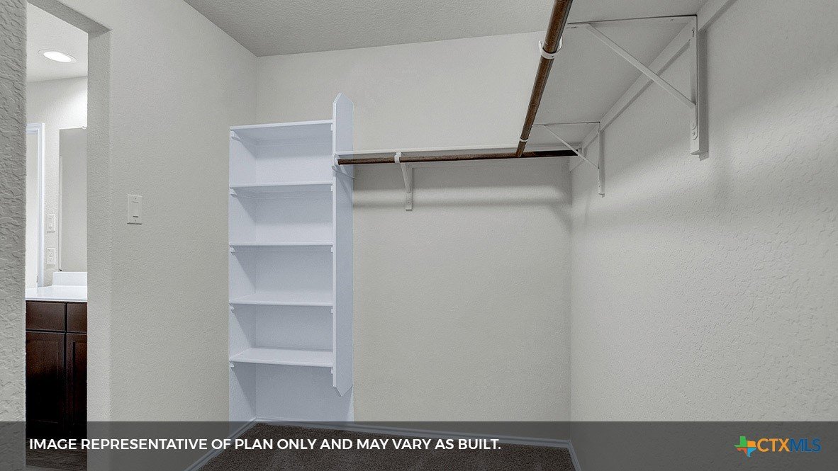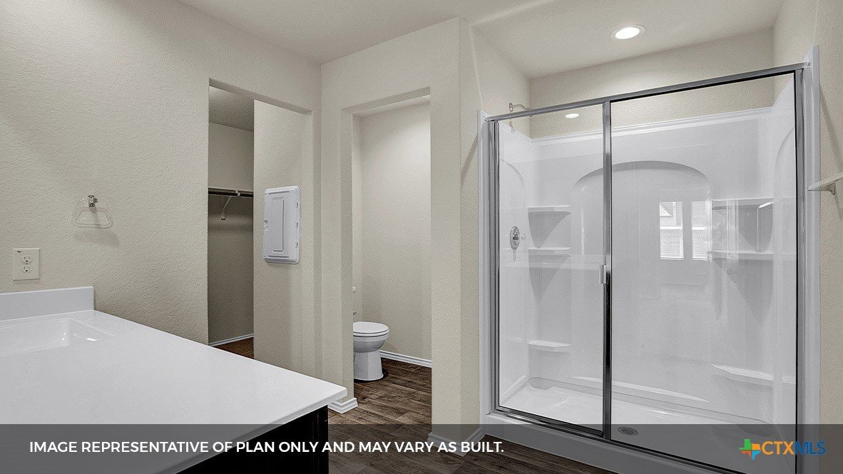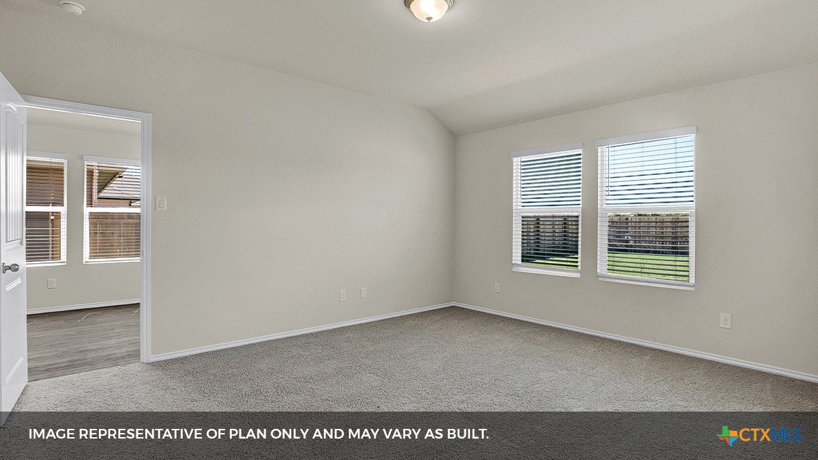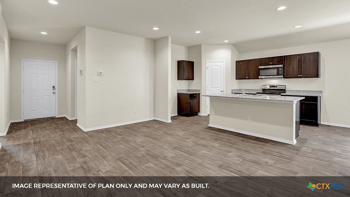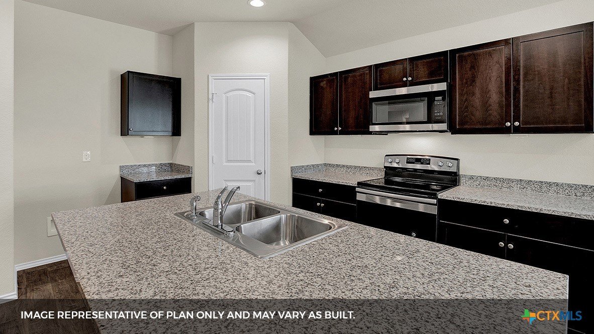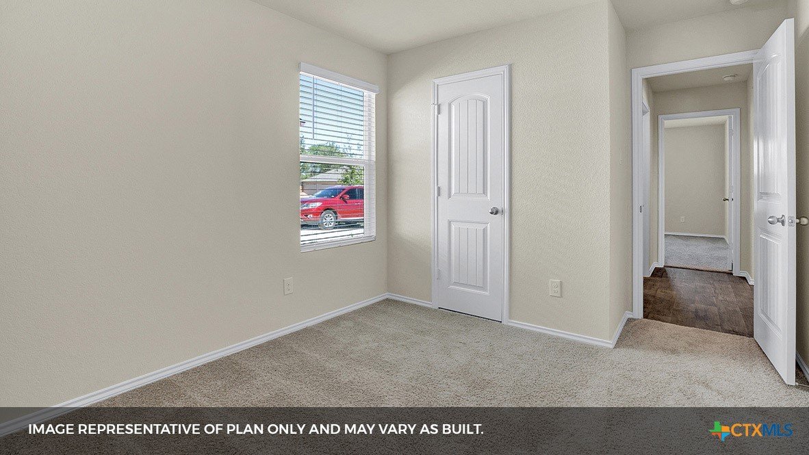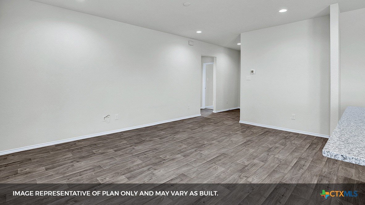 MOVE IN READY INCLUDES WASHER/DRYER, BLINDS, GARAGE DOOR OPENER AND REFRIGERATOR. Step into the Baxtor at Arroyo Ranch, one of our communities in Seguin, Texas. This one-story home is perfect for small families or homeowners looking to downsize. Inside this 1,409 square foot home, you will find 3 bedrooms, 2 bathrooms and a 2-car garage. Coming into the home from the covered front porch, you’ll find a foyer that leads you to the heart of the house, the living area. The open concept design of kitchen, dining and family room allows for easy entertaining and everyday living. The kitchen includes granite countertops, a large island with an undermount sink, a corner pantry closet, stainless-steel appliances and 36’’ upper cabinets. The primary bedroom is off the dining room and includes its own attached bathroom, making the start of your day a seamless step from sleep to your morning routine. Enjoy the 5’ walk in shower, double vanity, and separate door to the toilet for privacy. A walk-in closet with generous shelving is connected to the bathroom. The secondary bedrooms are off the foyer at the front of the home. In the hall between the bedrooms is the secondary bathroom, which includes a shower/tub combination. Each bedroom includes a closet with shelving. The utility room is tucked away between the foyer and kitchen, convenient to all bedrooms once the clothes are cleaned. The Baxtor includes vinyl flooring throughout the common areas of the home, and carpet in the bedrooms. All our new homes feature a covered back patio, full sod, an irrigation system in the front and back yard, and a 6’ privacy fence around the back yard. This home includes our America’s Smart Home base package, which includes the Amazon Echo Pop, Front Doorbell, Front Door Deadbolt Lock, Home Hub, Thermostat, and Deako® Smart Switches.