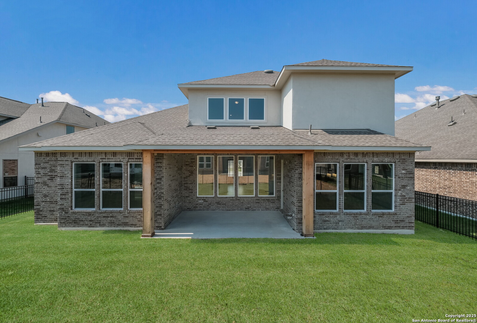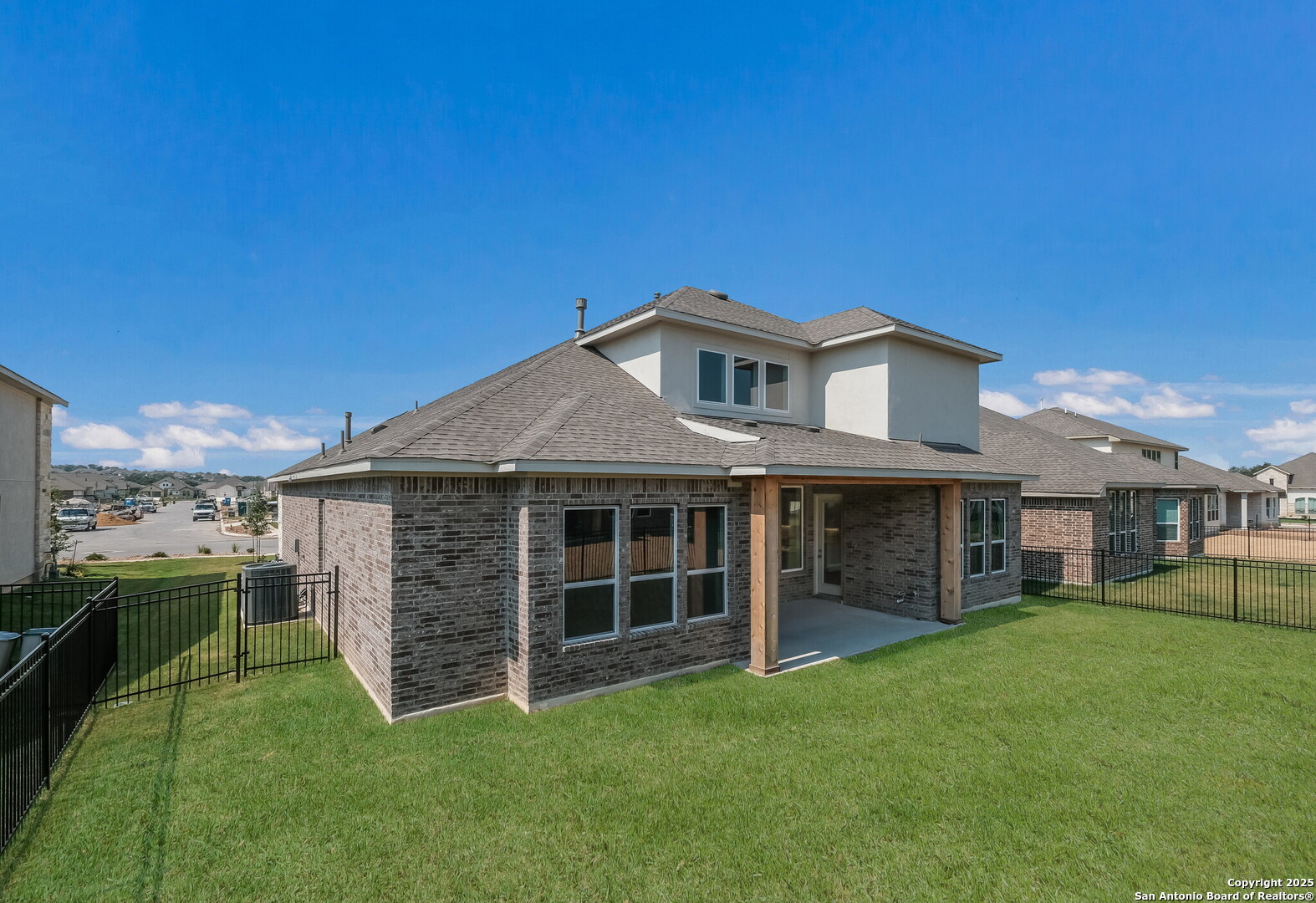 ** LOW INTREST RATES - MOVE-IN READY! ** Welcome to the stunning home located at 107 Crossfire, Boerne, TX 78006, within the highly coveted Esperanza community. This exquisite two-story house showcases a spacious 2,940 sqft interior that perfectly balances luxury and comfort. The home features four well-appointed bedrooms and three full bathrooms, with a secondary bedroom and bathroom conveniently located downstairs-ideal for guests or family members requiring accessible living spaces. Experience heightened grandeur with two-story ceiling heights in the entry and family room, adding an open, airy feel to the living spaces. The family room, a perfect gathering spot, is further enhanced by a cozy fireplace. Culinary enthusiasts will appreciate the kitchen, equipped with built-in appliances, a high-quality zephyr vent hood, pristine quartz countertops, and stylish white cabinets. The master suite is a true retreat, featuring a soaking tub with an integrated shower in the master bathroom, providing a spa-like experience at home. Exterior masonry combines white stone chop, grey stucco, and brick, contributing to the home's striking and elegant facade. Esperanza was voted "Best community overall" Esperanza community amenities include Resort style pool, kids splash pad, lazy river, 24 hr fitness center, sand volleyball courts, 2 dog parks and the Roca Loca Lawn area for food trucks, live bands where community gatherings are hosted.