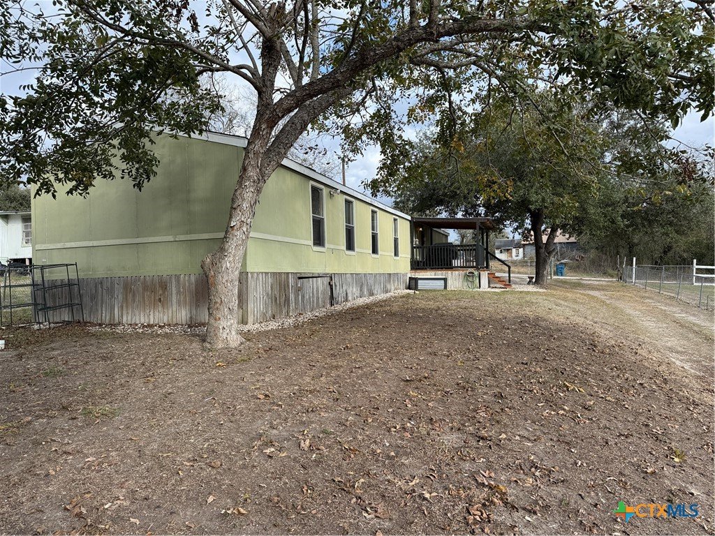 Welcome to 107 Dallas Street in Goliad! This well-maintained 2011 singlewide manufactured home offers 3 bedrooms and 2 full bathrooms on a 0.281-acre lot within Goliad ISD. The home features a large covered front deck, perfect for relaxing or entertaining. Inside, you’ll find a functional layout with carpet and vinyl flooring throughout, a spacious living area, and an open kitchen equipped with electric appliances, a breakfast bar, a pantry, and a dedicated dining area. The primary suite includes a walk-in closet and a private bathroom with dual vanities, a garden tub, and a separate walk-in shower. The secondary bathroom offers a convenient tub/shower combination. Additional features include central electric heating and air, a composition shingle roof, city water, and a private on-site septic system. Located just minutes from schools, shopping, and downtown Goliad amenities, this property offers comfortable living with room to enjoy the outdoors.