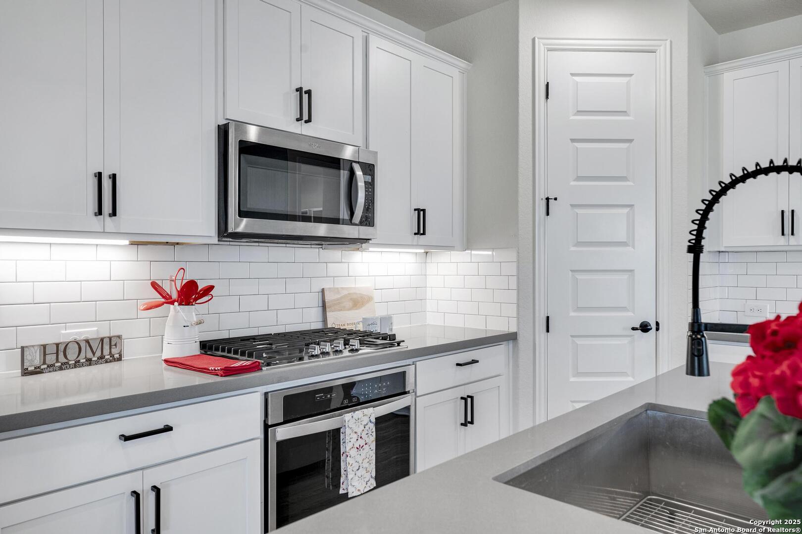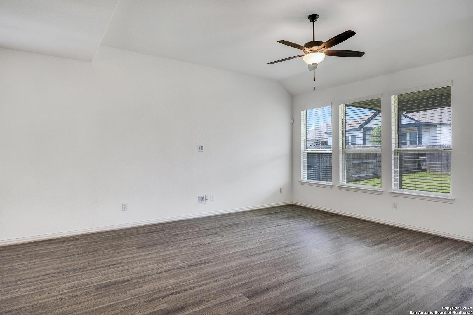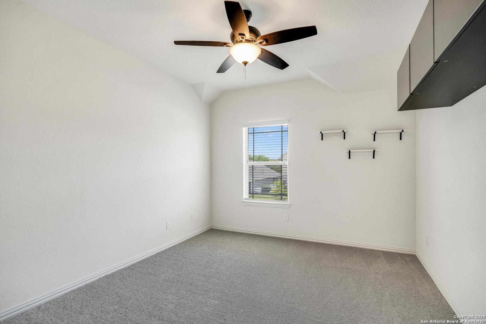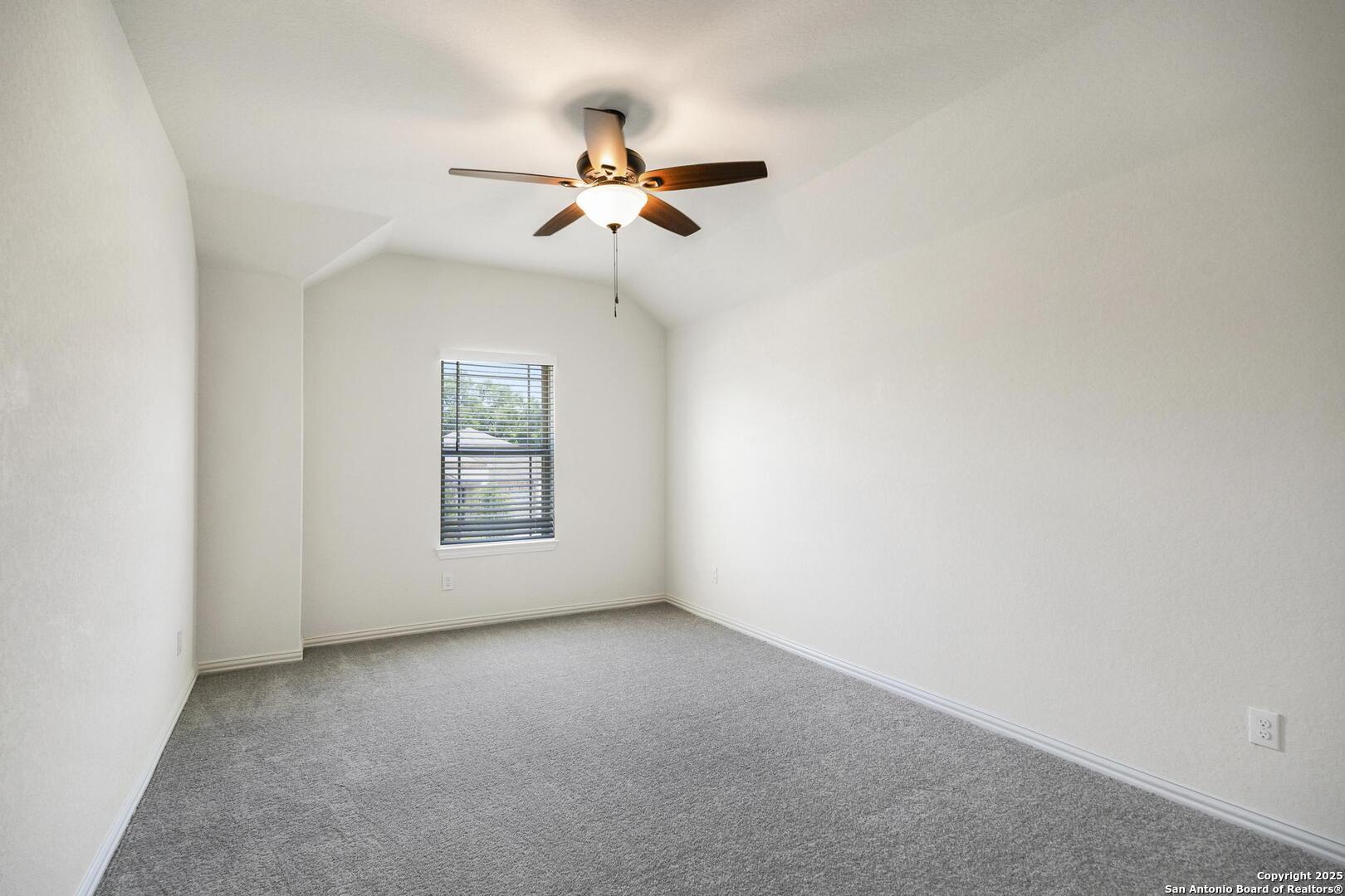Location !Easy access on and off IH10, but beautifully tucked away for the hill country feel. Close to Boerne and San Antonio. Least expensive per- sq-ft home in this beautiful subdivision! Welcome to 107 Giverny. Sitting on a cul-de-sac street, this 4 bedroom, 3- and a- half- baths starts with a foyer as you enter. Continuing, you will find a large office space just off the entryway, a half bath and a utility room. Just past the utility room you see a beautiful open kitchen, diningroom, living room floorplan with high ceilings-- great for entertaining or just sitting with friends or family. The Kitchen has stainless- steel gas range, microwave and dishwasher, large island, solid counter tops. 1st floor master bedroom with a oversized walk in closet, masterbath with double vanity, oversized shower, giving you a spa like feel. Upstairs (new carpet as of 2025) is a great space to entertain as well : a game room for family game night or having friends over, and a Media space with a 5.1 system with in-ceiling speakers,wires are connected to speakers in the kitchen and diningrm ceiling and back patio ceiling speakers as well. Off the game room are 3 large bedrooms and 2 full baths. Large backyard with covered patio and privacy fencing. Undergound Sprinkler system for front and back yard. This beautiful Subdivision has a Pool, playground, jogging trails and clubhouse. When you turn in to Regent Park, and 107 Giverny , you will feel like you are home Boerne Schools ! Lower taxes! As always, please verify measuments , schools and property details