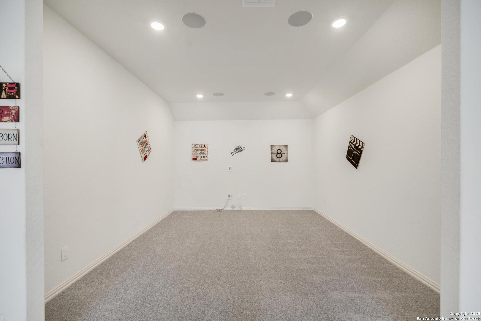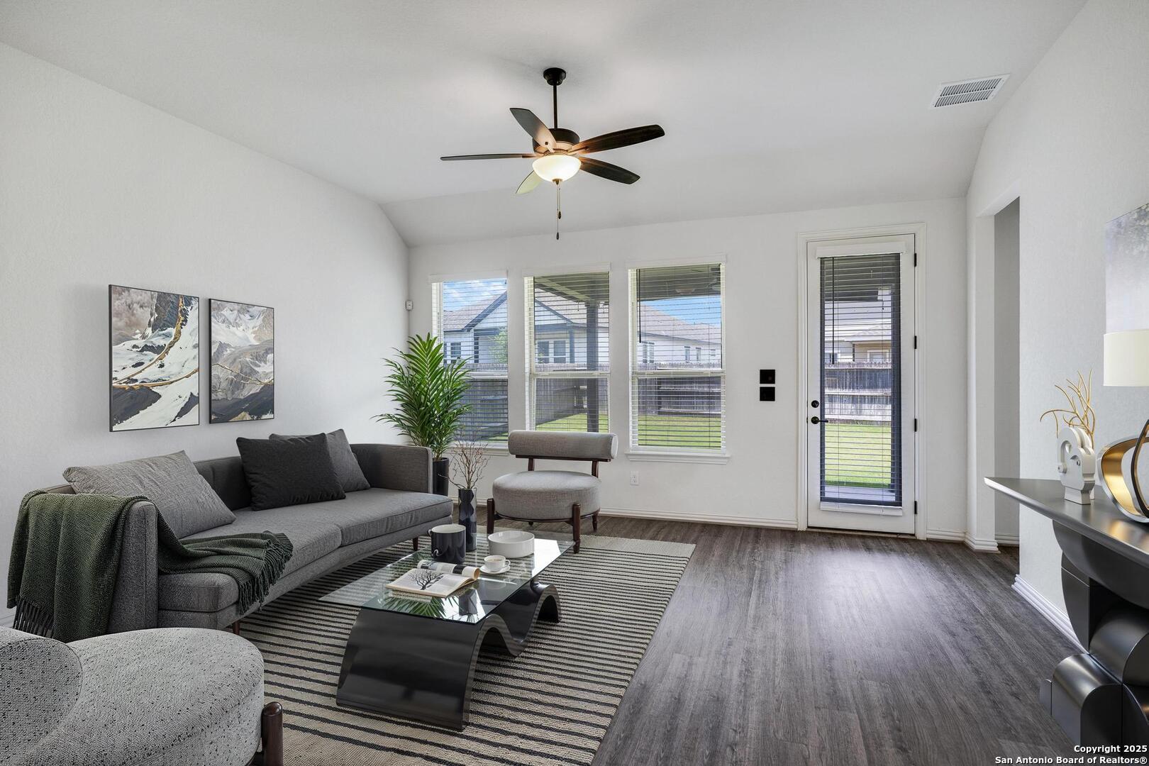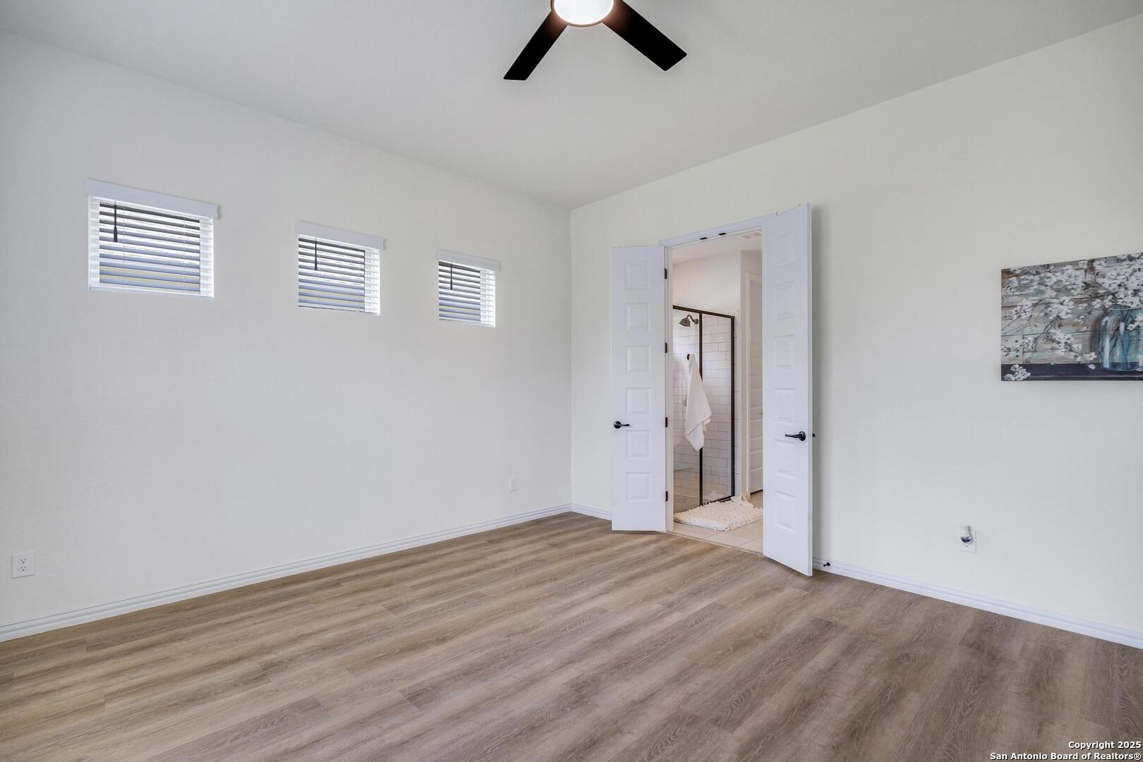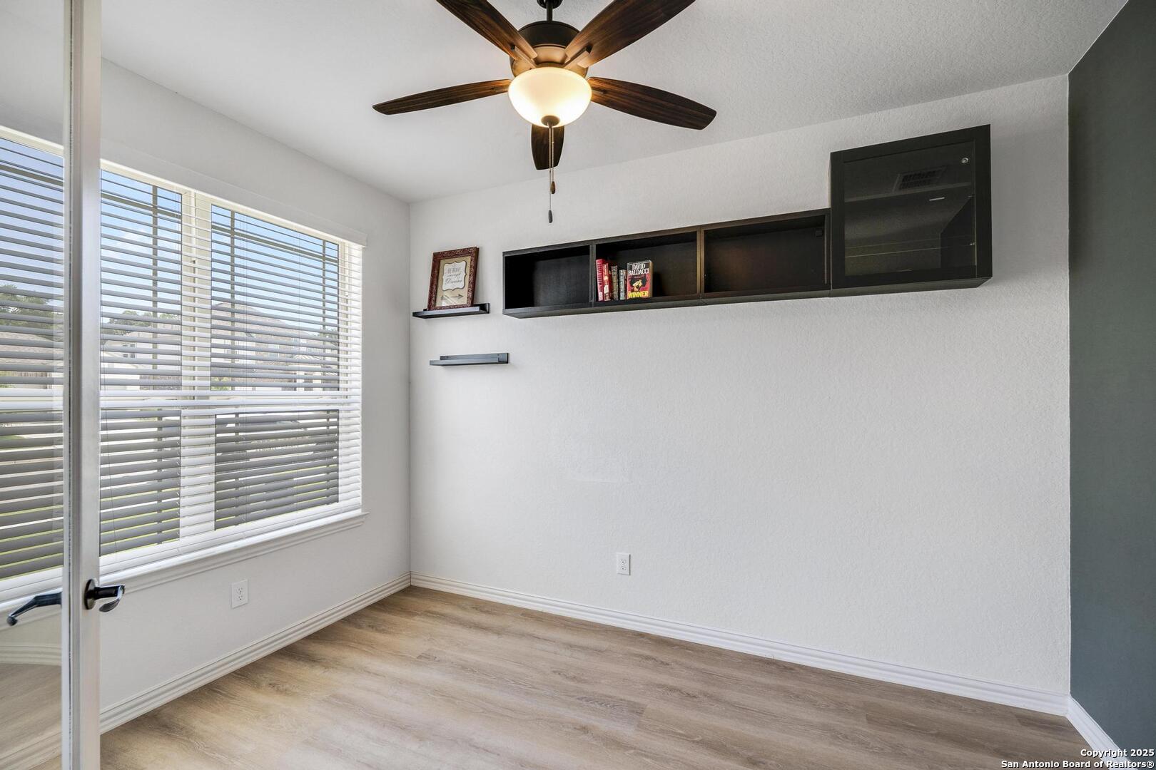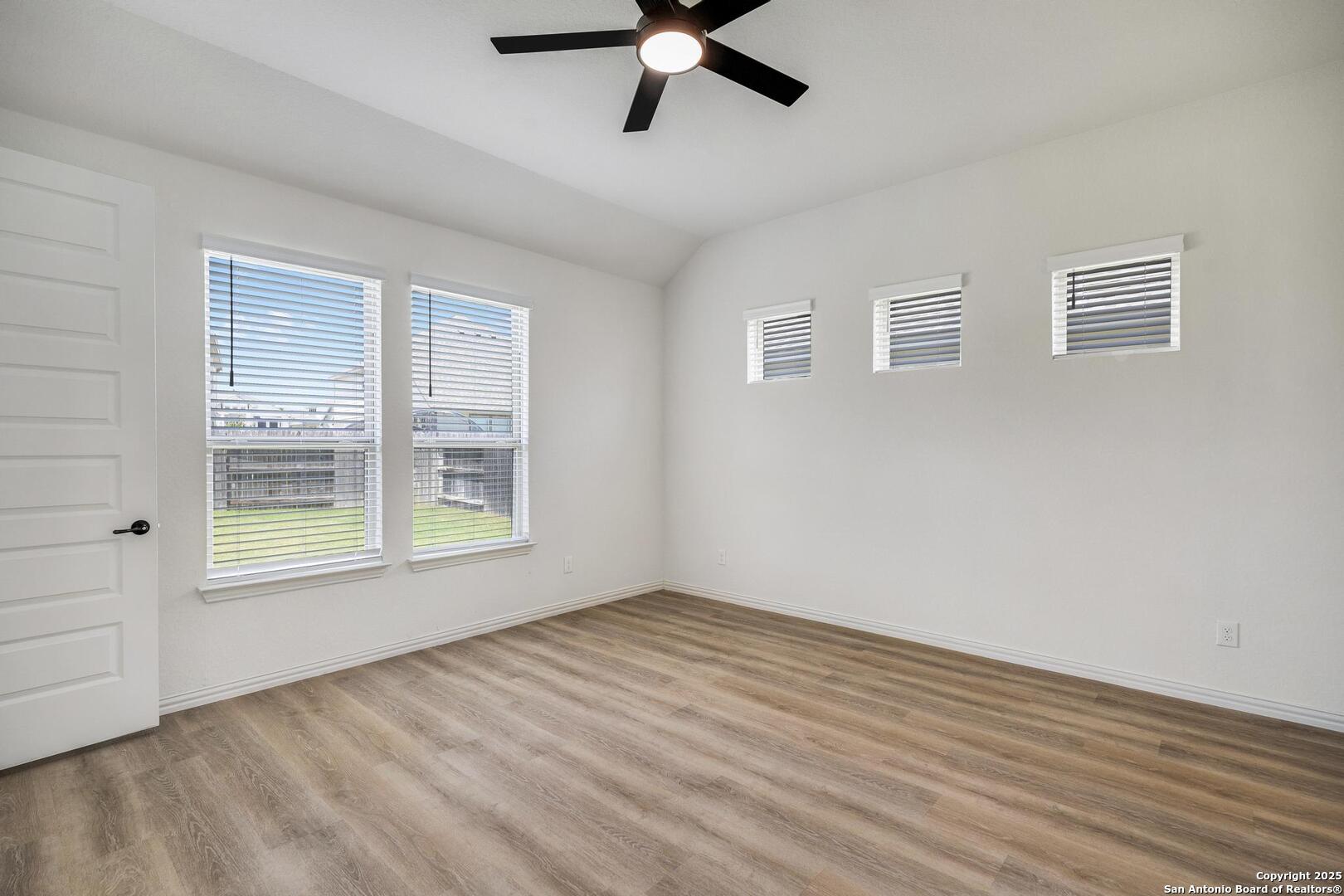 Location !Easy access on and off IH10, but beautifully tucked away for the hill country feel. Close to Boerne and San Antonio. Least expensive per- sq-ft home in this beautiful subdivision! Welcome to 107 Giverny. Sitting on a cul-de-sac street, this 4 bedroom, 3- and a- half- baths starts with a foyer as you enter. Continuing, you will find a large office space just off the entryway, a half bath and a utility room. Just past the utility room you see a beautiful open kitchen, diningroom, living room floorplan with high ceilings-- great for entertaining or just sitting with friends or family. The Kitchen has stainless- steel gas range, microwave and dishwasher, large island, solid counter tops. 1st floor master bedroom with a oversized walk in closet, masterbath with double vanity, oversized shower, giving you a spa like feel. Upstairs (new carpet as of 2025) is a great space to entertain as well : a game room for family game night or having friends over, and a Media space with a 5.1 system with in-ceiling speakers,wires are connected to speakers in the kitchen and diningrm ceiling and back patio ceiling speakers as well. Off the game room are 3 large bedrooms and 2 full baths. Large backyard with covered patio and privacy fencing. Undergound Sprinkler system for front and back yard. This beautiful Subdivision has a Pool, playground, jogging trails and clubhouse. When you turn in to Regent Park, and 107 Giverny , you will feel like you are home Boerne Schools ! Lower taxes! As always, please verify measuments , schools and property details
