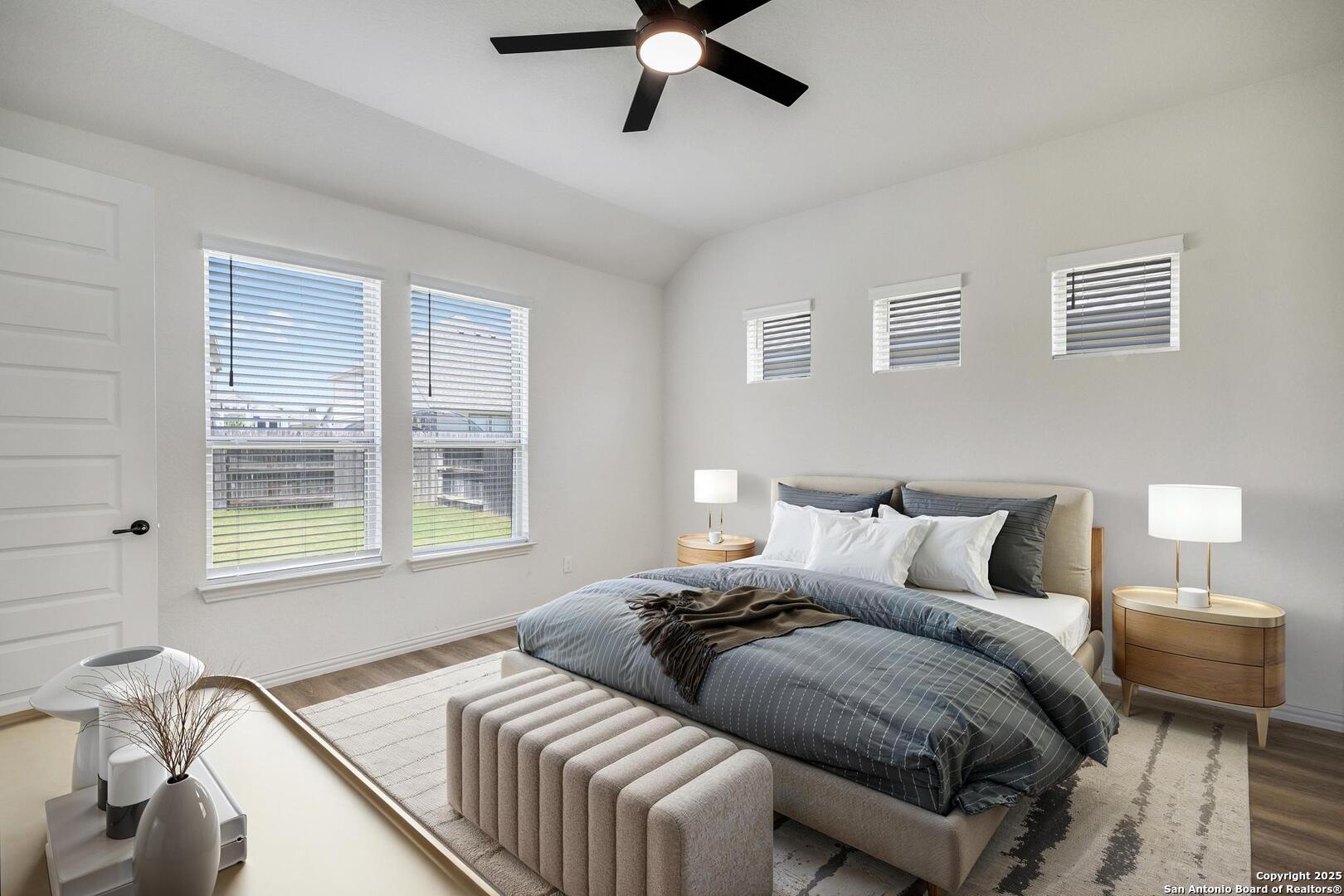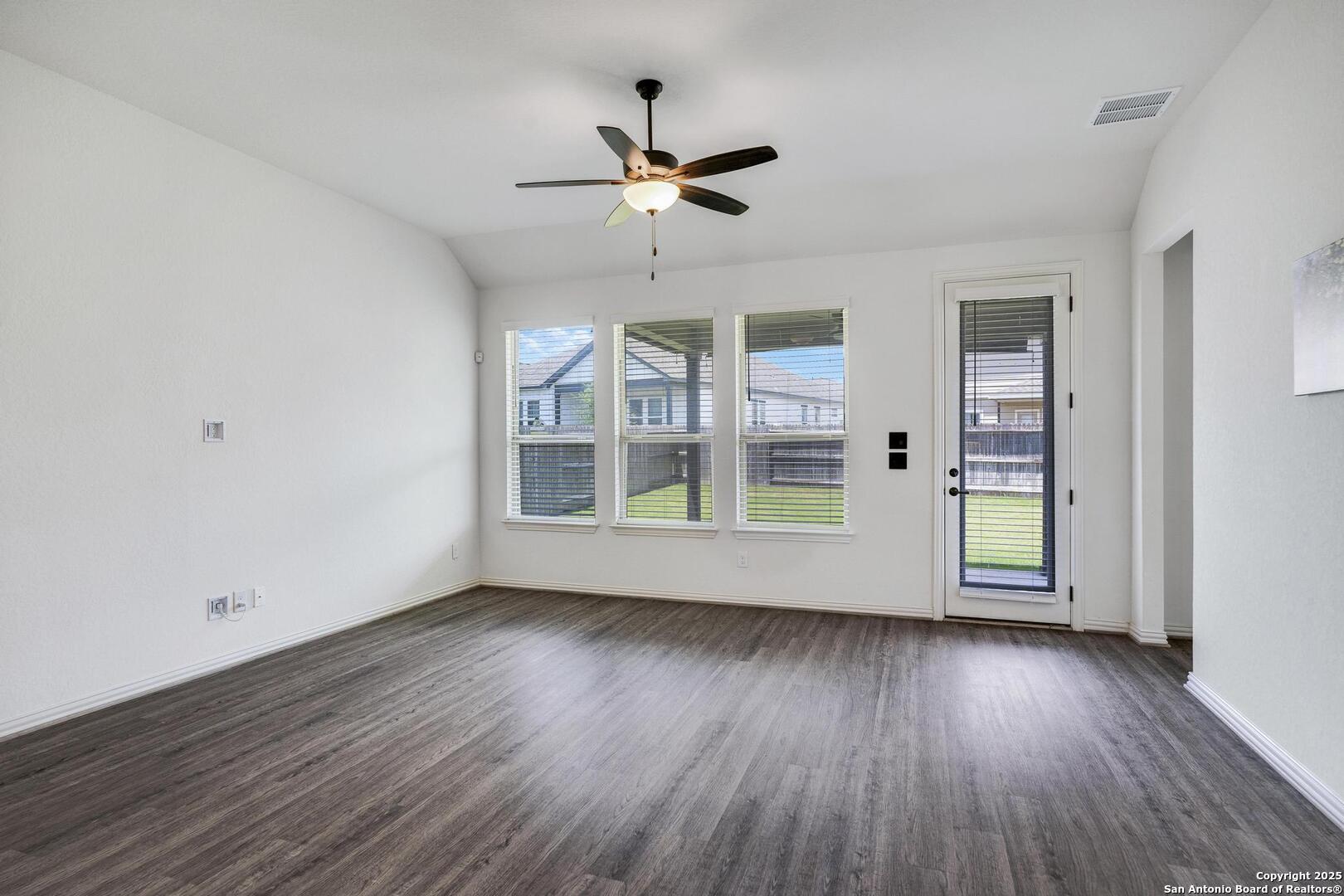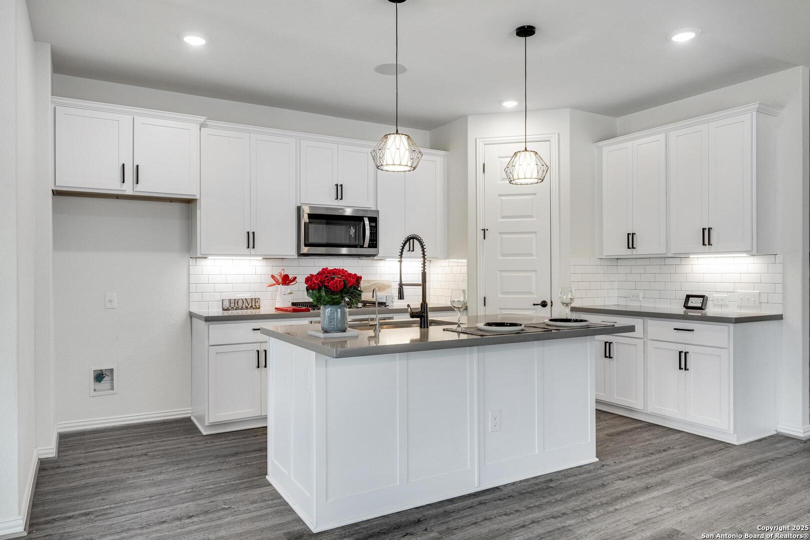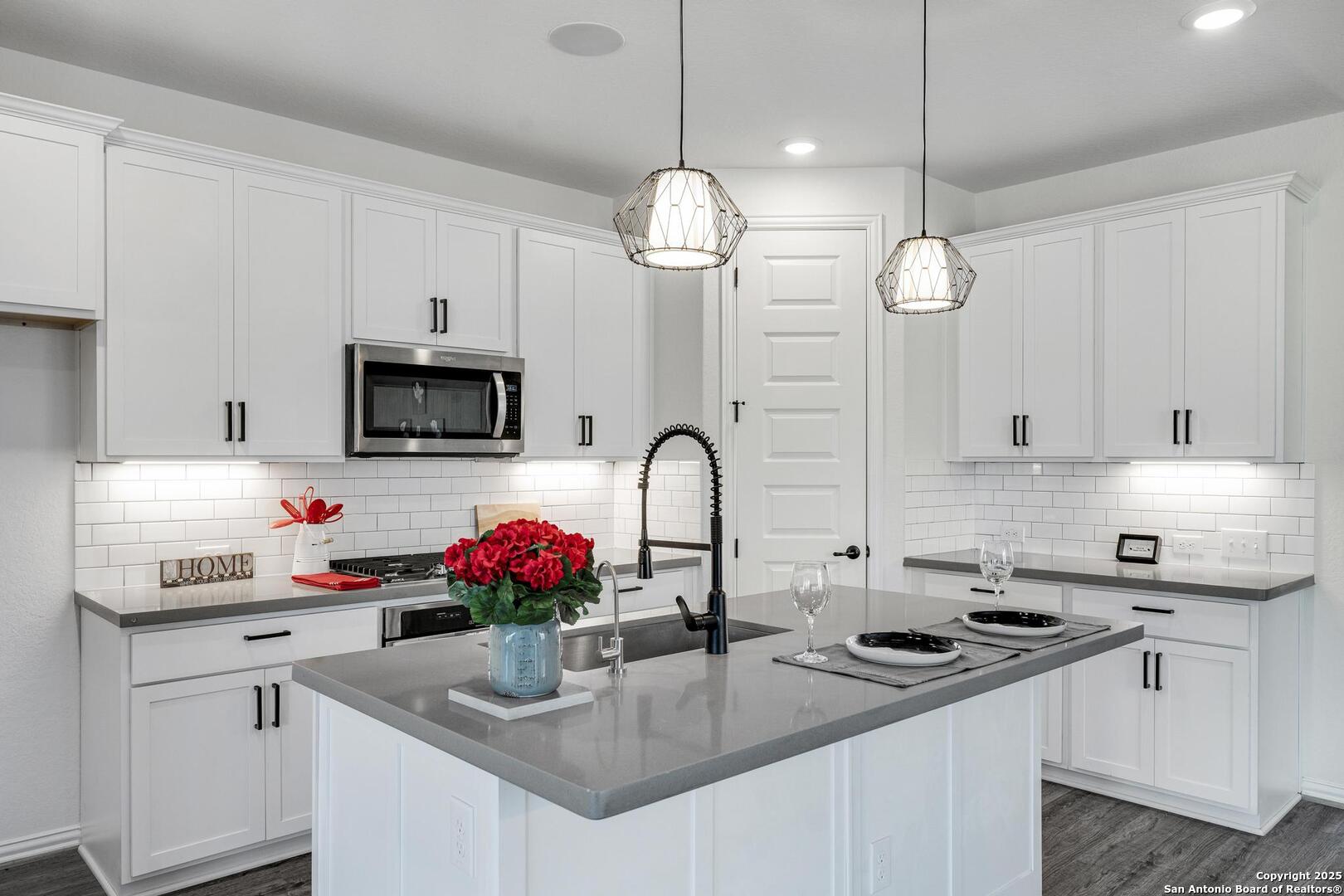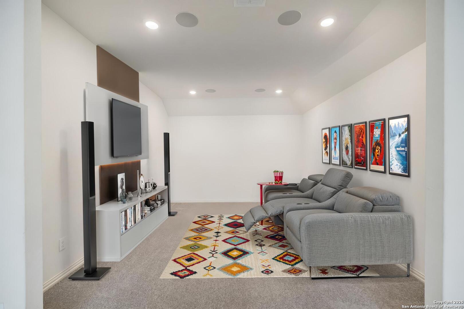 Location !Easy access on and off IH10, but beautifully tucked away for the hill country feel. Close to Boerne and San Antonio. Least expensive per- sq-ft home in this beautiful subdivision! Welcome to 107 Giverny. Sitting on a cul-de-sac street, this 4 bedroom, 3- and a- half- baths starts with a foyer as you enter. Continuing, you will find a large office space just off the entryway, a half bath and a utility room. Just past the utility room you see a beautiful open kitchen, diningroom, living room floorplan with high ceilings-- great for entertaining or just sitting with friends or family. The Kitchen has stainless- steel gas range, microwave and dishwasher, large island, solid counter tops. 1st floor master bedroom with a oversized walk in closet, masterbath with double vanity, oversized shower, giving you a spa like feel. Upstairs (new carpet as of 2025) is a great space to entertain as well : a game room for family game night or having friends over, and a Media space with a 5.1 system with in-ceiling speakers,wires are connected to speakers in the kitchen and diningrm ceiling and back patio ceiling speakers as well. Off the game room are 3 large bedrooms and 2 full baths. Large backyard with covered patio and privacy fencing. Undergound Sprinkler system for front and back yard. This beautiful Subdivision has a Pool, playground, jogging trails and clubhouse. When you turn in to Regent Park, and 107 Giverny , you will feel like you are home Boerne Schools ! Lower taxes! As always, please verify measuments , schools and property details