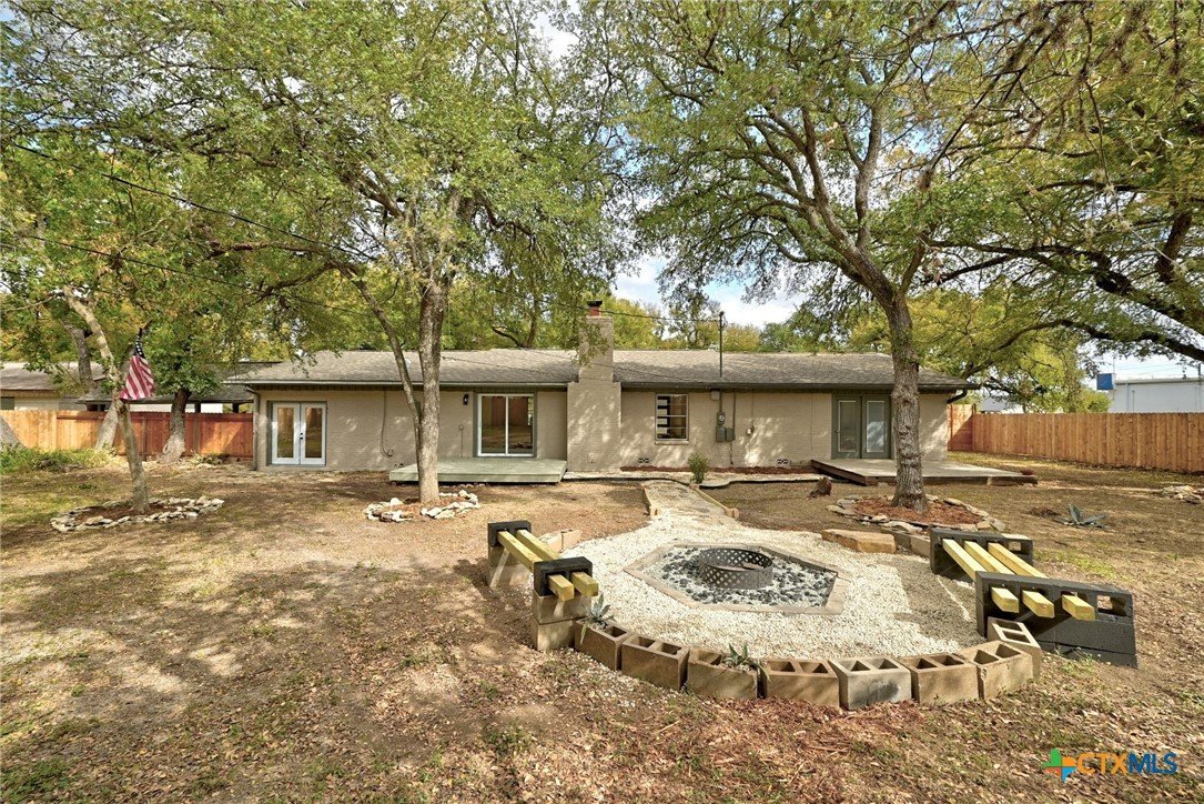 Back on the market! Septic system repair to be complete in early February. Classic 1960s ranch-style home on a spacious half-acre lot surrounded by mature trees and privacy fencing. The exterior features freshly painted brick, and a new roof in 2024. Step inside to enjoy a completely remodeled interior showcasing new kitchen cabinetry, countertops and stainless steel appliances. Both bathrooms have been tastefully renovated with new fixtures, vanities, tub and shower. Enjoy new flooring and fresh paint throughout, creating a light and inviting atmosphere. A versatile flex room (no closet) can easily serve as a third bedroom, office or studio space. Living areas offer one perfect for a media room; pre-wired for surround sound, and the main living room features a cozy wood-burning fireplace and original exposed ceiling beams that add warmth and charm. Recently replaced HVAC and one water heater. Outside you'll find a 2 car attached carport, 2 out-buildings, a firepit and plenty of decking for outdoor relaxing and entertaining!