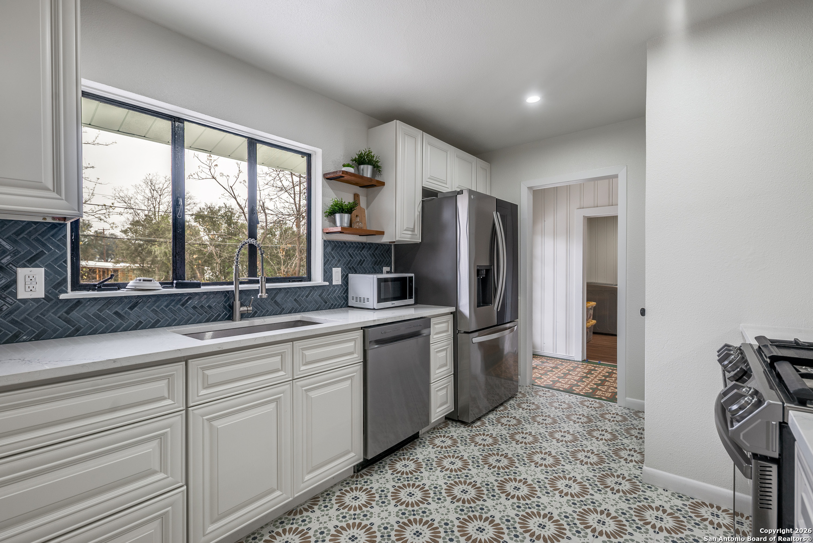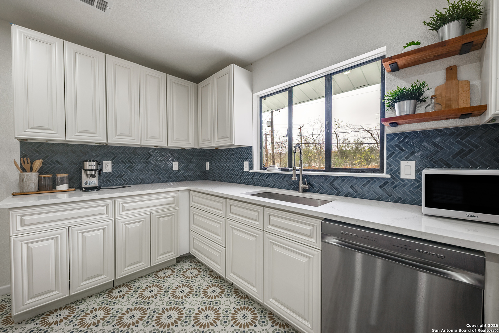 Beautifully remodeled ranch style home in Ridgeview and a short distance to 281, 410, the Quarry and the airport. This house has been completely remodeled including new roof, cabinets, quartz countertops flooring and SS appliances. The electrical panel exterior and interior has been upgraded and additional large concrete slab added to the exterior for evening cookouts or a future pergola on a .21 of an acre large lot. A new sewer line to the city septic was installed and house has been re-leveled with a warranty to transfer to the new owners. There is plenty of natural light coming through the large windows and an open kitchen to the living room makes entertaining easy. Located a bit closer to 281 makes the drive easy and commuting a charm.
