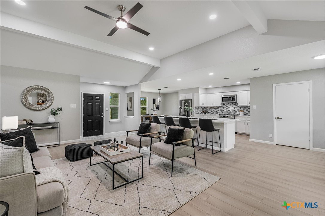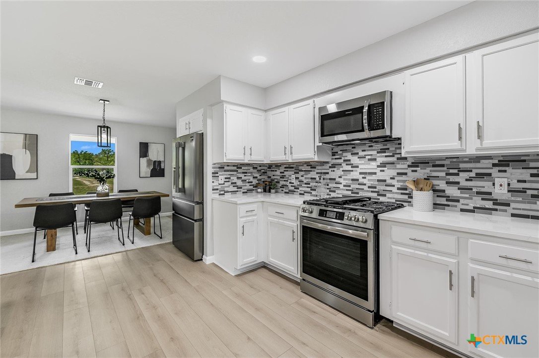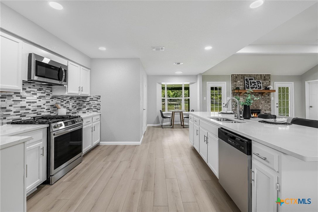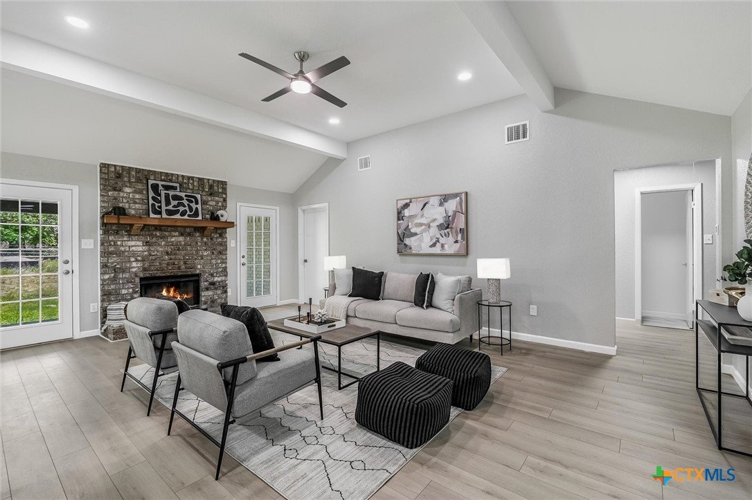 Looking for room to roam and a little space between you and the neighbors? Welcome to 1070 Lonesome Trail—a beautifully remodeled home set on a generous piece of land (4.5 acres), offering peace, privacy, and plenty of possibilities. This thoughtfully updated home features a brand-new roof (2025), fresh exterior paint, new siding, energy-efficient windows, and so much more. Step inside to an open-concept floorplan that seamlessly blends comfort and style. You’ll find two dining areas, a cozy wood-burning fireplace, and a large kitchen island with seating—perfect for entertaining. The kitchen shines with quartz countertops, stainless steel appliances, propane range and ample cabinet space. The spacious primary suite includes a luxurious en-suite bath with double vanities, a separate shower, garden tub, and his-and-her closets. Two additional bedrooms share a well-appointed full bath with a tub/shower combo. Need a flex space? Don’t miss the finished, air-conditioned room just off the attached two-car garage. Ideal as a home office, game room, craft space, or even a fourth bedroom. Step outside to enjoy the serene beauty of majestic oak trees and a covered patio—perfect for relaxing evenings or morning coffee. The property also features an existing slab, offering potential for a future building or workshop. Fully fenced on three sides, the land offers both functionality and privacy. You're just down the street from the neighborhood pool, which is available to join for a fee. This one has it all—updates, space, and charm. Come tour 1070 Lonesome Trail today and fall in love with your next home!