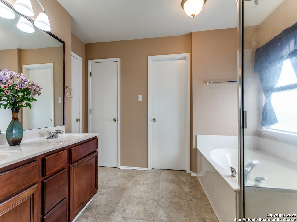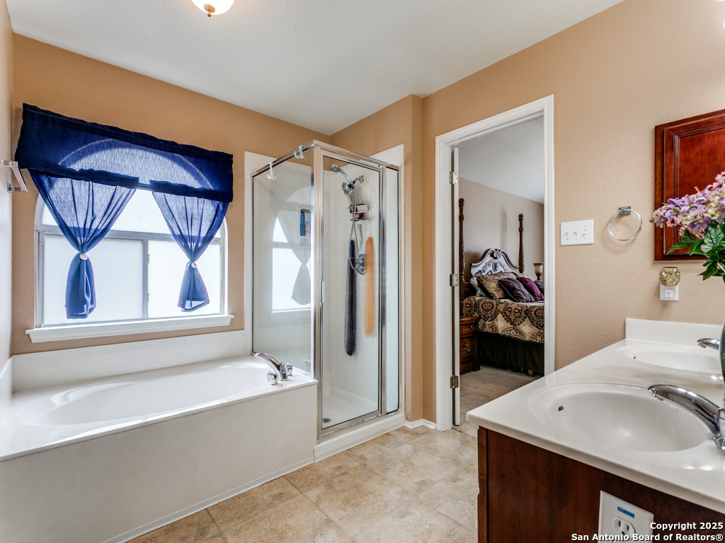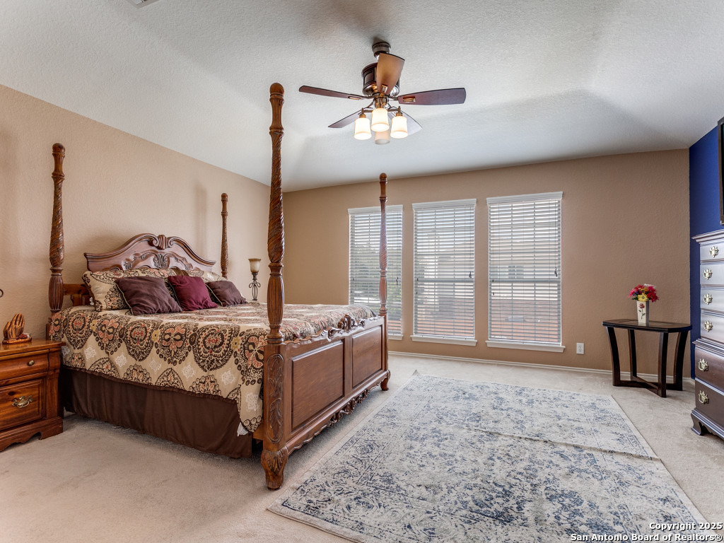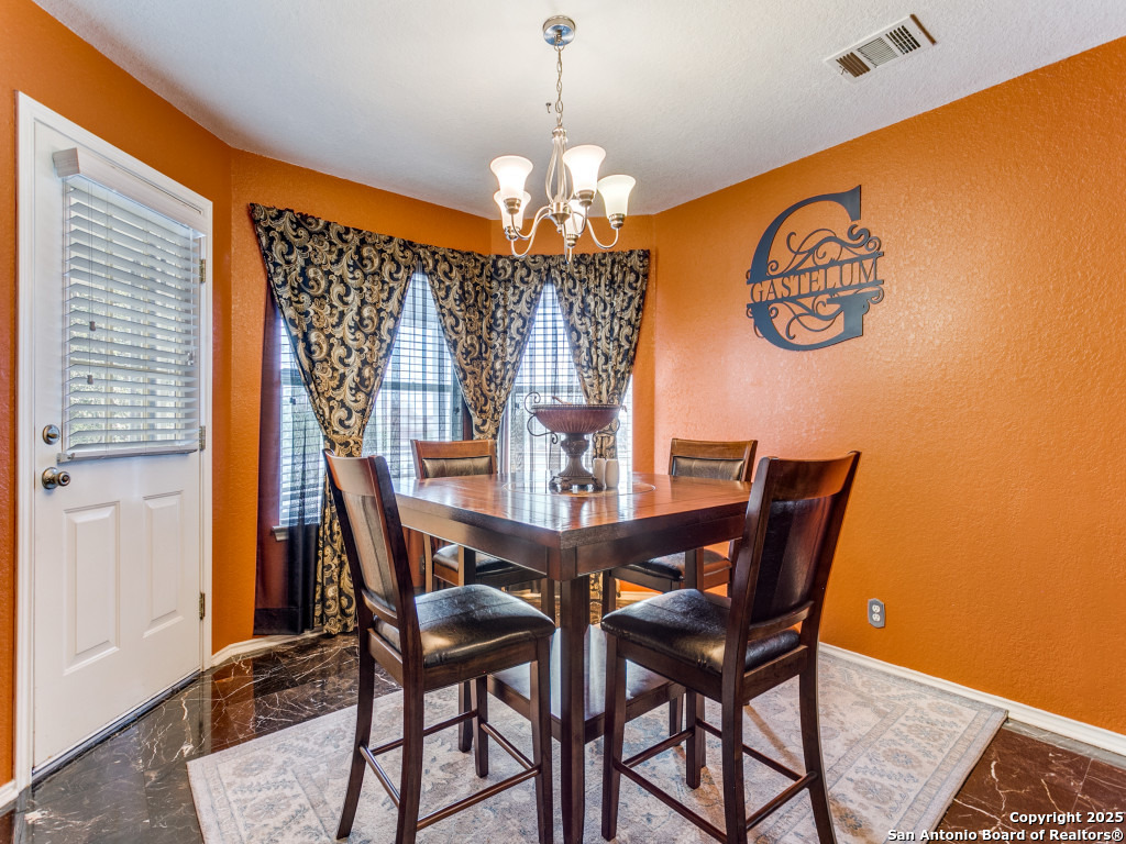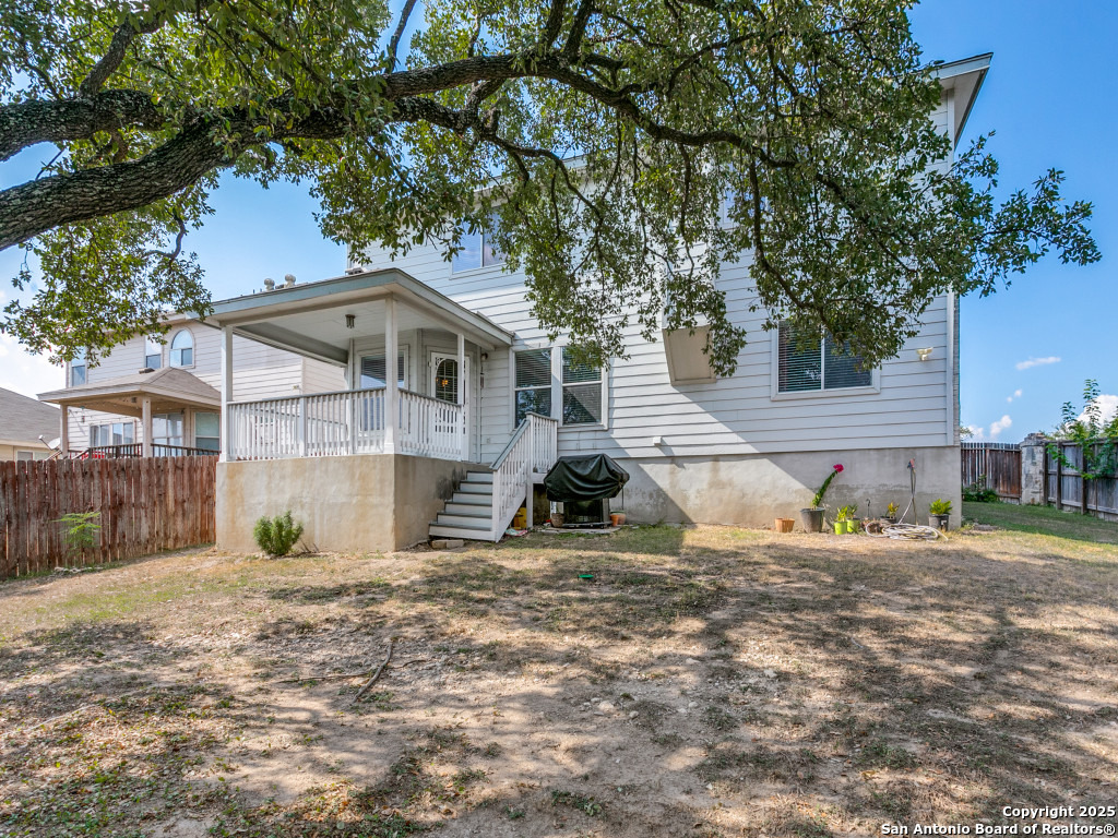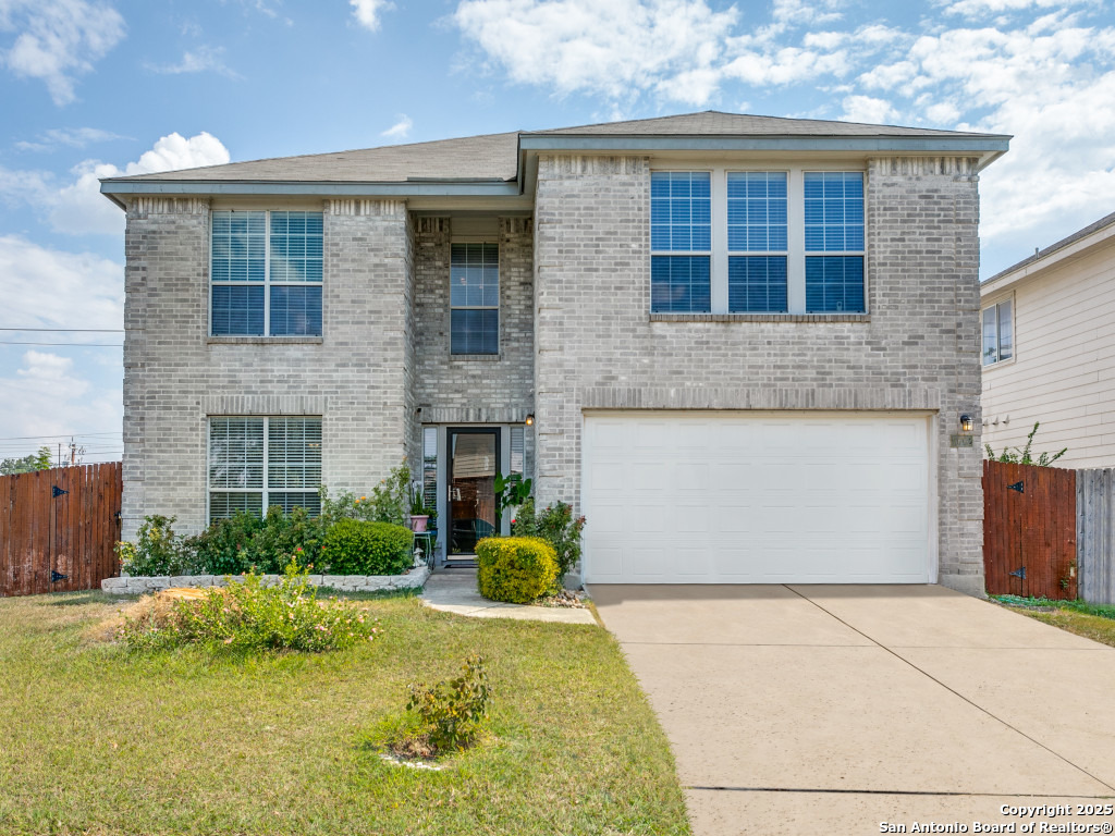 Don't miss out on this beautiful 4 Bedroom, 2.5 Bathroom home on corner lot with open floor plan designed for both entertaining and everyday living. The kitchen is a chef's dream-featuring mahogany-stained cherry cabinets with glass doors, granite countertops, stainless steel appliances, and wine chiller. The home also boasts two spacious living areas, two dining spaces, and a cozy fireplace. The downstairs spacious bonus room can be used as a study/office/gym or bedroom. Upstairs, the oversized primary suite offers a true retreat with a spa-style bath including garden tub, separate shower, dual vanities, and an enormous walk-in closet. Three additional large bedrooms, an upgraded bathroom with skylight, and a game room provide plenty of space for family and guests. Location is unbeatable-just off Potranco Road with quick access to Loop 1604, Lackland & Kelly AFBs, SeaWorld, shopping, dining, and everyday conveniences right across the street.