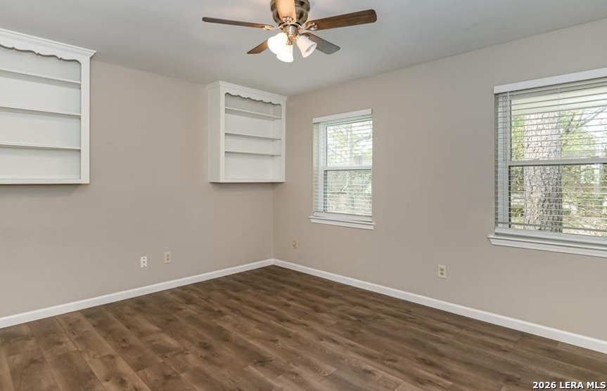 Situated on an expansive corner lot shaded by mature trees, this 5-bedroom, 3.5-bath residence offers a seamless, open- concept living experience in a premier, well-established neighborhood. The light-filled interior features a designer kitchen that serves as the centerpiece of the home. Anchored by a large breakfast bar and sleek quartz countertops, the kitchen flows effortlessly into the living and dining areas-perfect for entertaining. Modern laminate flooring spans the living spaces, complemented by stylish tile in wet areas and recessed lighting The first-floor primary bedroom suite offers its own private bathroom featuring double vanities, walk-in shower, and spacious walk-in closet. Four additional spacious second-floor bedrooms include: 1) large walk-in closets, 2) a Jack-and-Jill bathroom connects two upstairs bedrooms, 3) the third full bath provides private access to the fourth bedroom, and 4) the fifth bedroom features a custom built-in shelving, ideal for home office. Bonus features include a large backyard and attached-detached 2-car garage with roofed breezeway leading to side home entry. All this incredibly located with unbeatable access to Hwy 249 and Jones Rd, you are just minutes away from the upscale shopping, dining, and entertainment at The Vintage and Cypresswood.