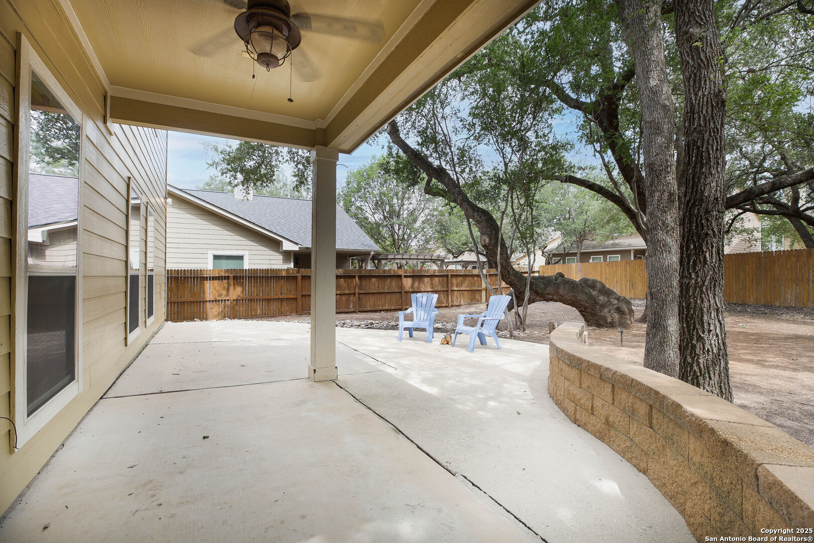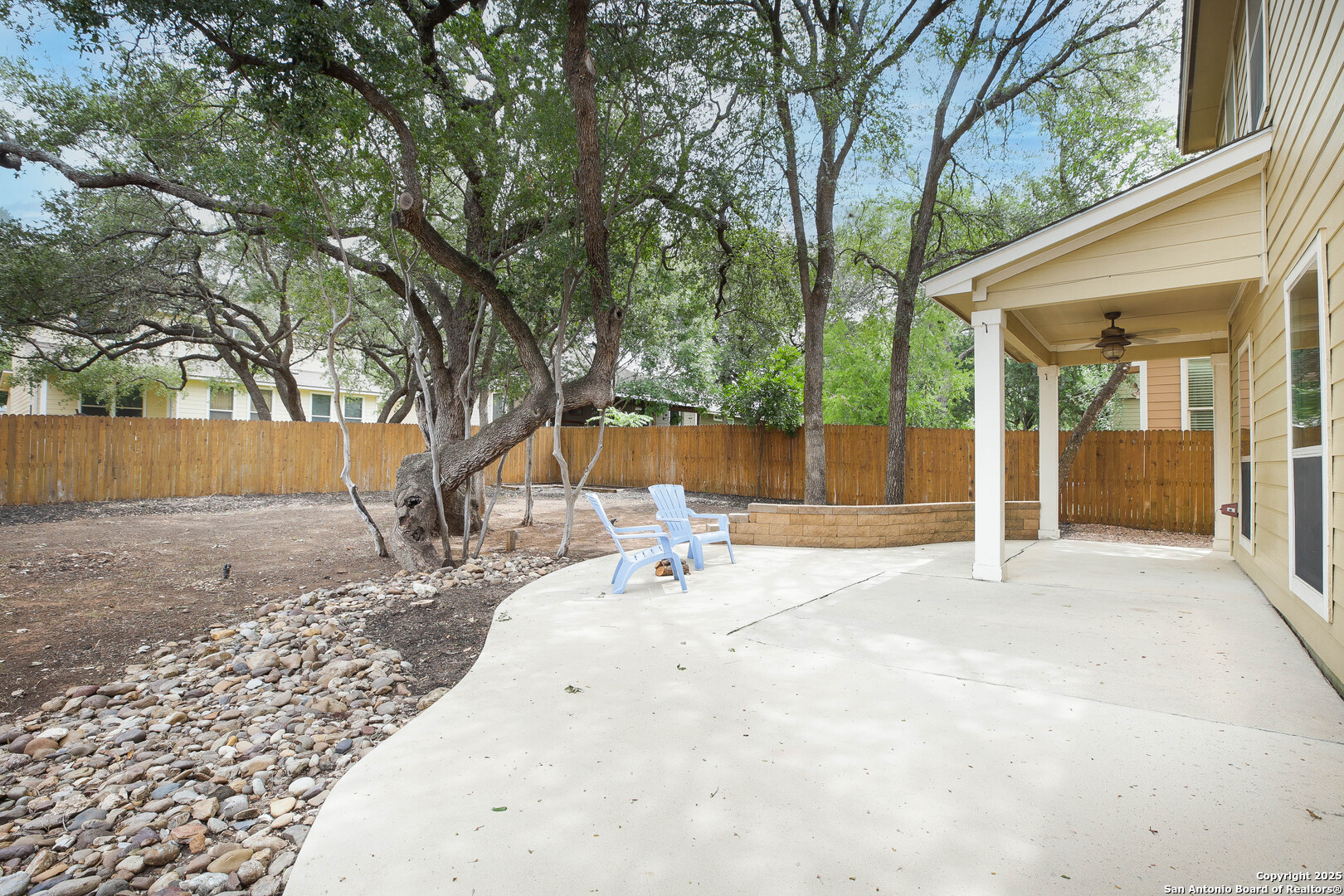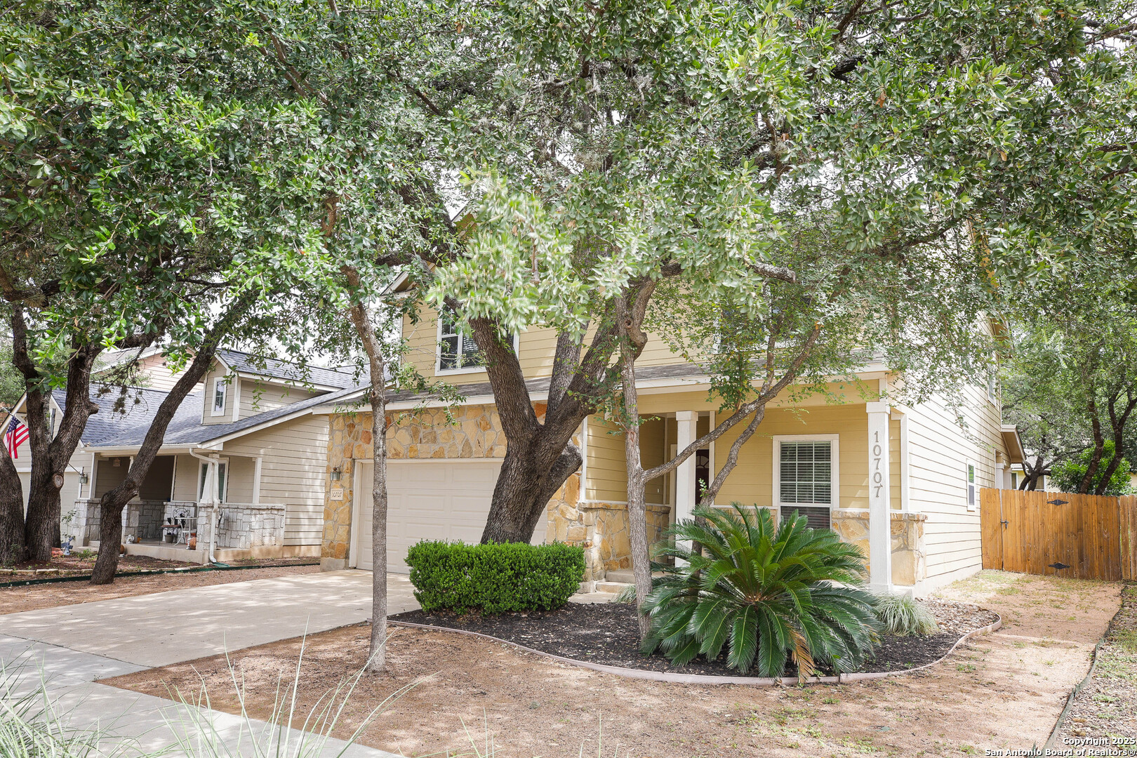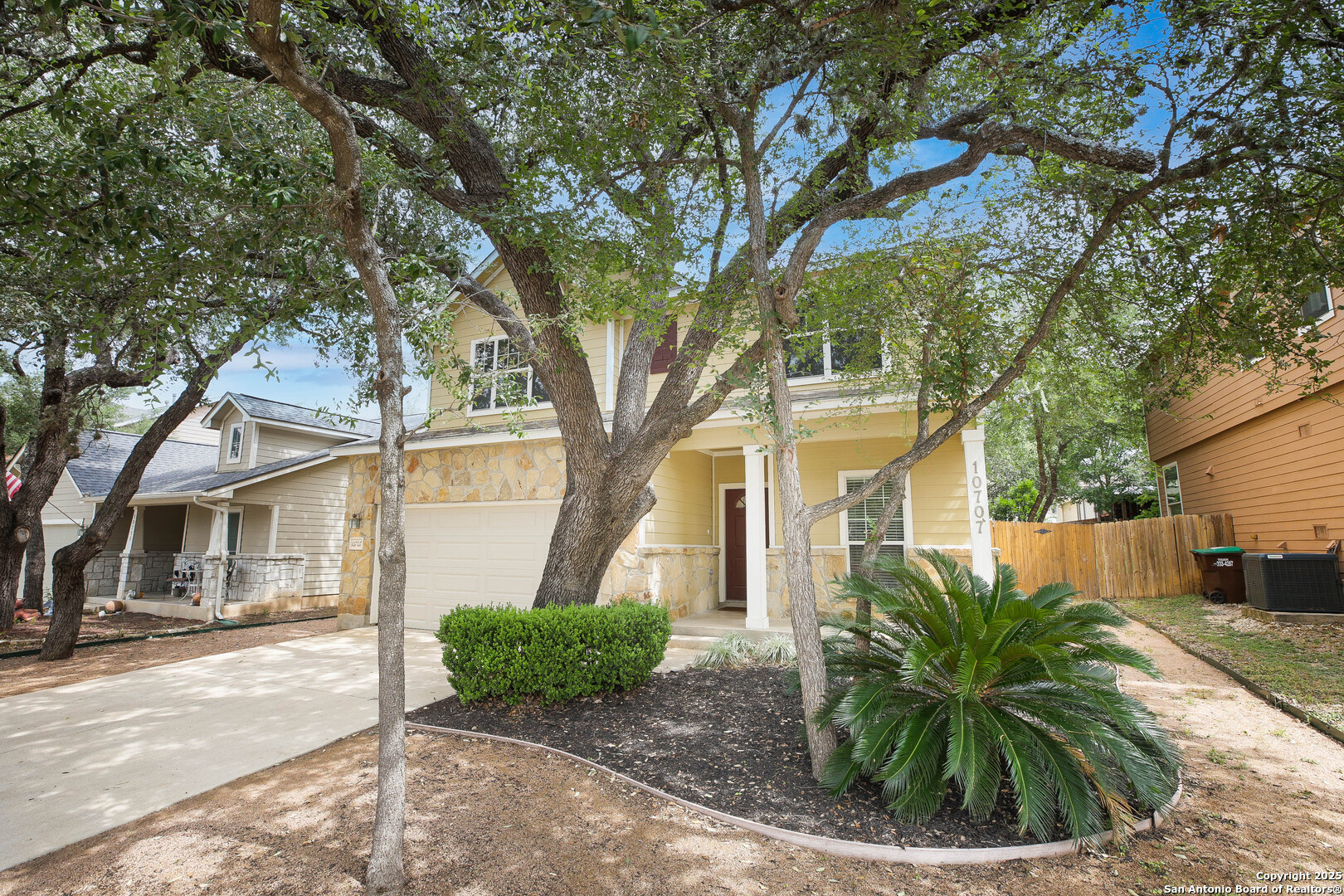 Step into this beautifully refreshed 2-story home that's truly better than ever! With recent upgrades and thoughtful improvements throughout, this stunning property is now completely turn-key - even the refrigerator and washer/dryer convey. Just pack your bags and move right in! VA assumable and willing to allow entitlement to be used. This oversized backyard shaded by incredible, mature oak trees - including one that's perfect for a treehouse or the ultimate climbing tree. Very low maintenance front yard. Enjoy outdoor living year-round under the extended covered patio, ideal for BBQs and gatherings. Inside, the spacious family room features beautiful flooring and a cozy fireplace, setting the perfect scene for relaxing or entertaining. The chef's kitchen boasts abundant cabinetry, generous countertop space, and a bright eat-in breakfast area that opens seamlessly to the dining space. Work or study in style in the elegant home office, complete with French doors, custom trim, and built-in shelving. Upstairs, you'll find a split-bedroom layout with exceptionally large rooms, plus a spacious game room and an extended loft area - perfect as a flex space for reading, study nook, or home gym. Retreat to your expansive primary suite with a huge walk-in closet, garden tub, separate shower, and double vanity. A custom-lit alcove adds a touch of elegance for displaying your favorite art or decor pieces. Schedule a showing to view this move-in ready, upgraded home that offers space, charm, and versatility both inside and out. Not to mention, so very near is what will become your beloved HEB, conveniently located with quick access to 1604, the elementary school, great shopping and dining near-by.