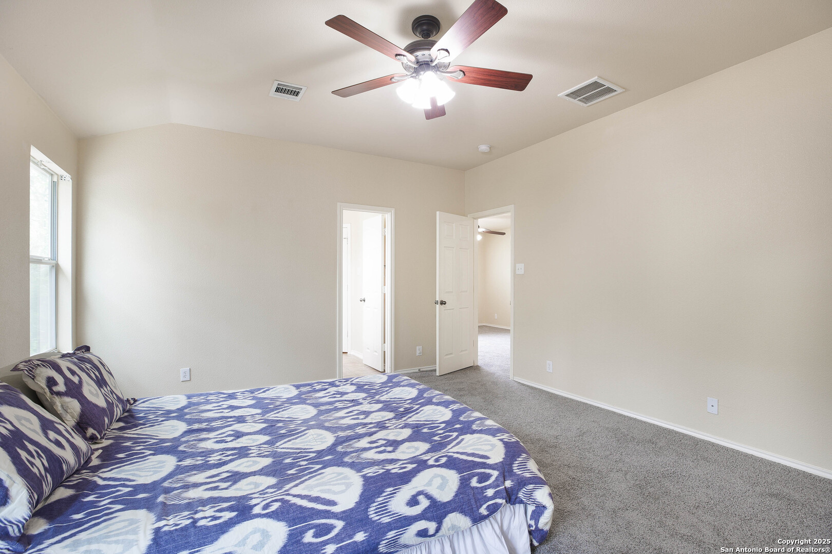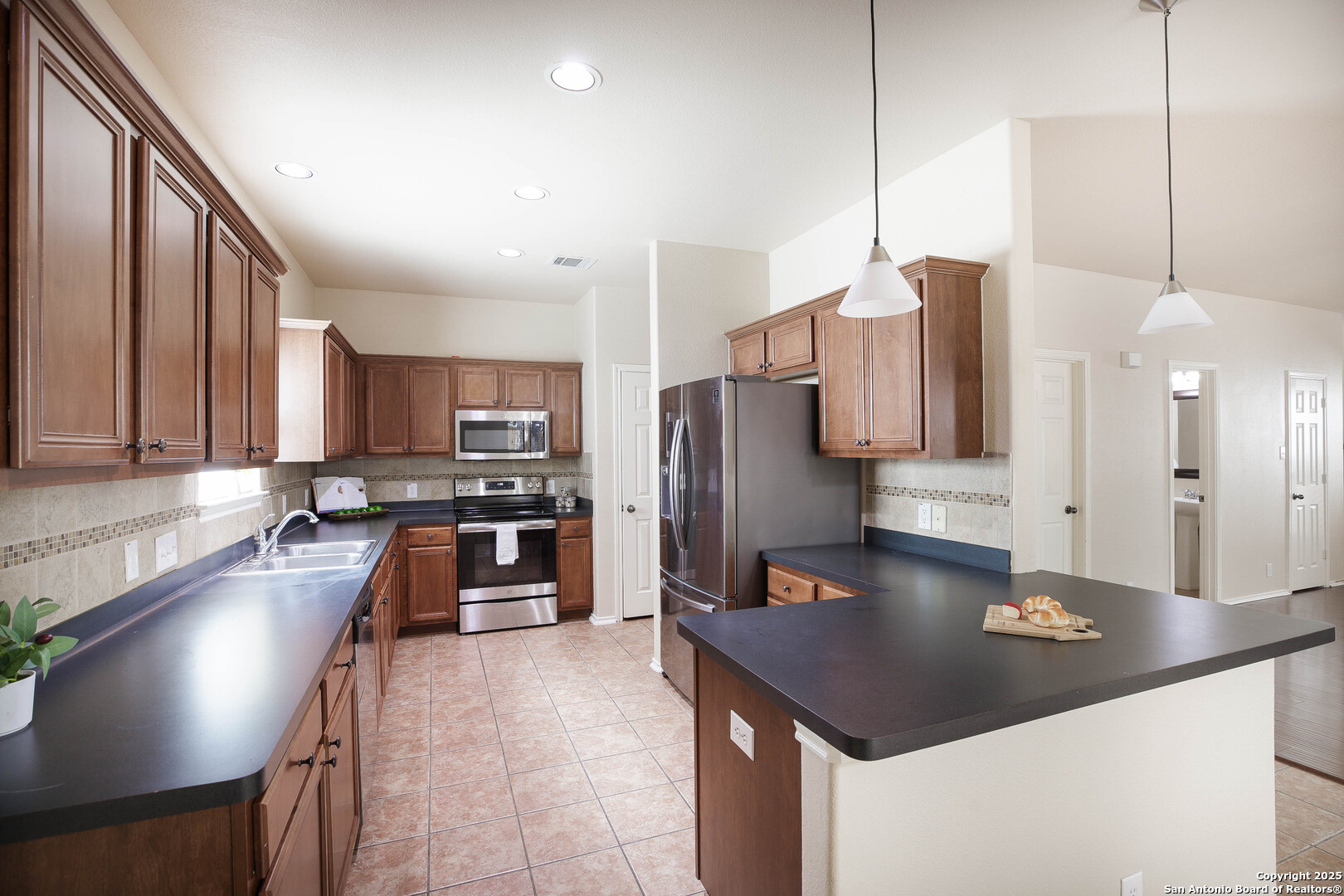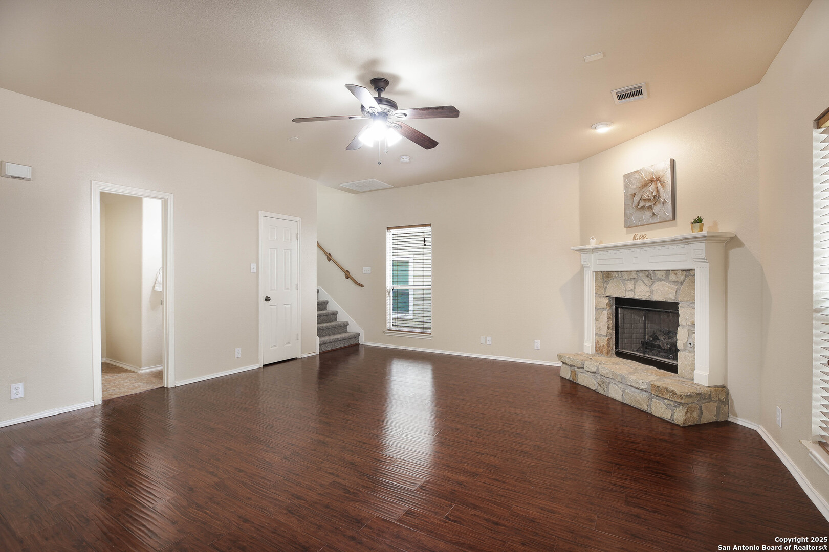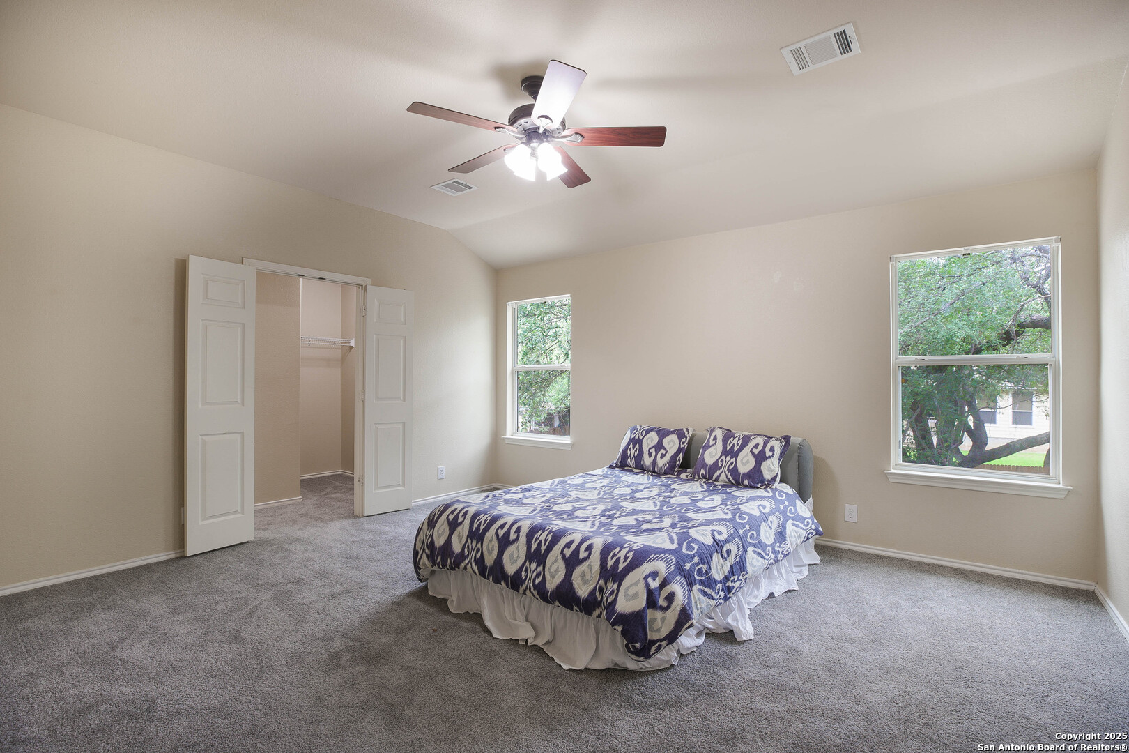 Step into this beautifully refreshed 2-story home that's truly better than ever! With recent upgrades and thoughtful improvements throughout, this stunning property is now completely turn-key - even the refrigerator and washer/dryer convey. Just pack your bags and move right in! VA assumable and willing to allow entitlement to be used. This oversized backyard shaded by incredible, mature oak trees - including one that's perfect for a treehouse or the ultimate climbing tree. Very low maintenance front yard. Enjoy outdoor living year-round under the extended covered patio, ideal for BBQs and gatherings. Inside, the spacious family room features beautiful flooring and a cozy fireplace, setting the perfect scene for relaxing or entertaining. The chef's kitchen boasts abundant cabinetry, generous countertop space, and a bright eat-in breakfast area that opens seamlessly to the dining space. Work or study in style in the elegant home office, complete with French doors, custom trim, and built-in shelving. Upstairs, you'll find a split-bedroom layout with exceptionally large rooms, plus a spacious game room and an extended loft area - perfect as a flex space for reading, study nook, or home gym. Retreat to your expansive primary suite with a huge walk-in closet, garden tub, separate shower, and double vanity. A custom-lit alcove adds a touch of elegance for displaying your favorite art or decor pieces. Schedule a showing to view this move-in ready, upgraded home that offers space, charm, and versatility both inside and out. Not to mention, so very near is what will become your beloved HEB, conveniently located with quick access to 1604, the elementary school, great shopping and dining near-by.