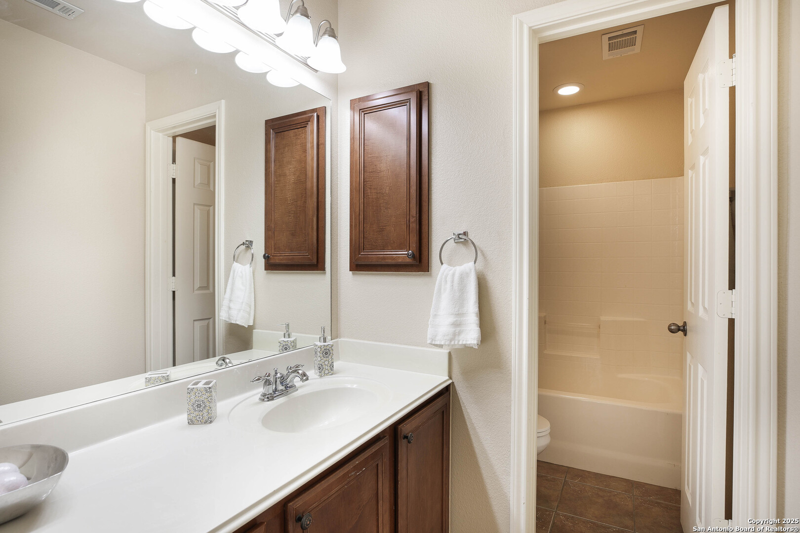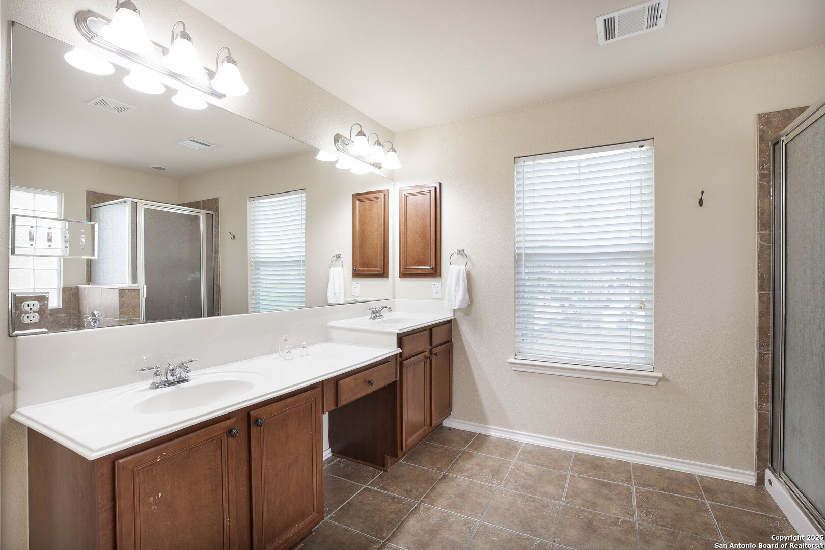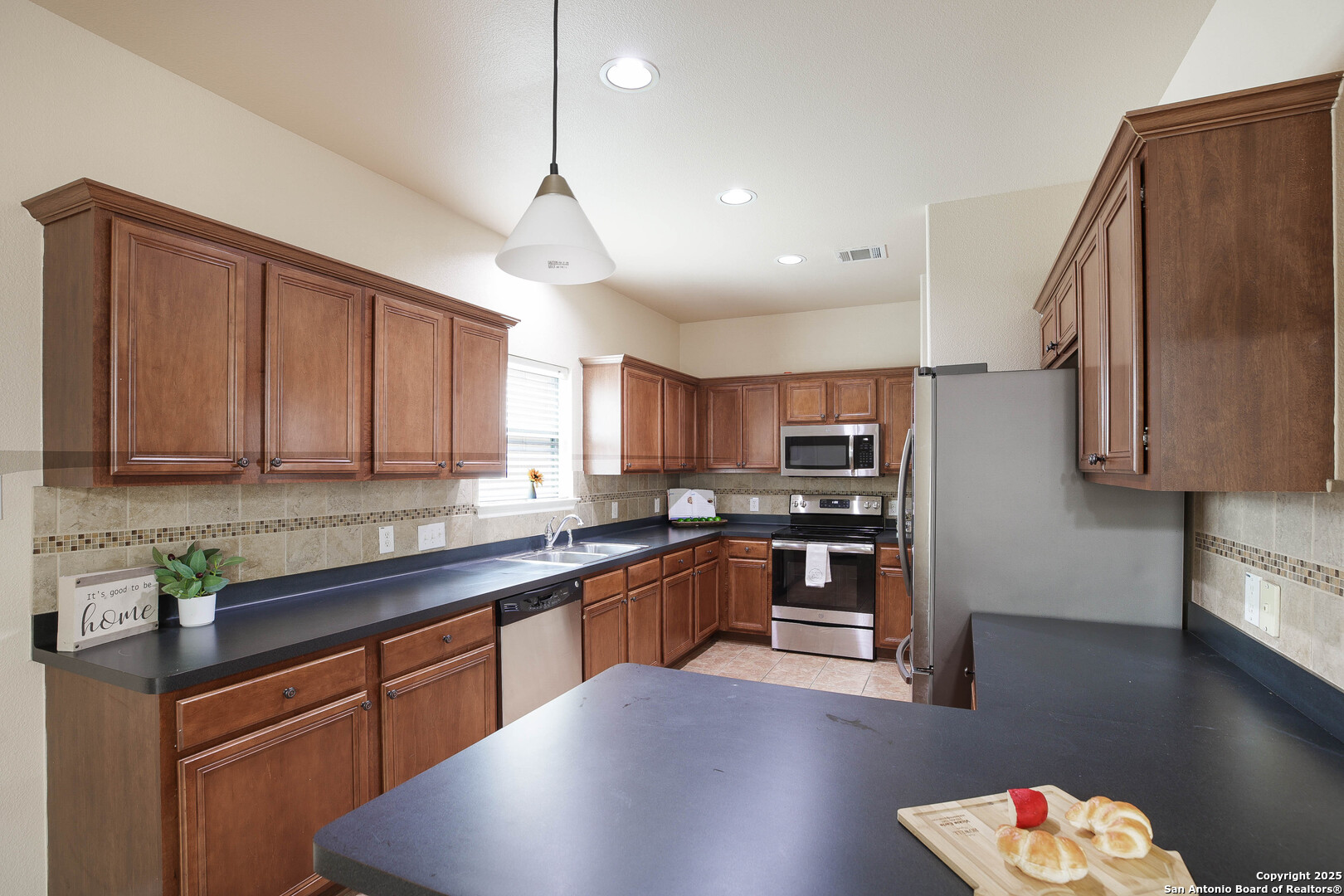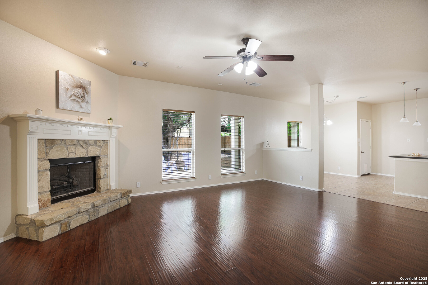 Step into this beautifully refreshed 2-story home that's truly better than ever! With recent upgrades and thoughtful improvements throughout, this stunning property is now completely turn-key - even the refrigerator and washer/dryer convey. Just pack your bags and move right in! VA assumable and willing to allow entitlement to be used. This oversized backyard shaded by incredible, mature oak trees - including one that's perfect for a treehouse or the ultimate climbing tree. Very low maintenance front yard. Enjoy outdoor living year-round under the extended covered patio, ideal for BBQs and gatherings. Inside, the spacious family room features beautiful flooring and a cozy fireplace, setting the perfect scene for relaxing or entertaining. The chef's kitchen boasts abundant cabinetry, generous countertop space, and a bright eat-in breakfast area that opens seamlessly to the dining space. Work or study in style in the elegant home office, complete with French doors, custom trim, and built-in shelving. Upstairs, you'll find a split-bedroom layout with exceptionally large rooms, plus a spacious game room and an extended loft area - perfect as a flex space for reading, study nook, or home gym. Retreat to your expansive primary suite with a huge walk-in closet, garden tub, separate shower, and double vanity. A custom-lit alcove adds a touch of elegance for displaying your favorite art or decor pieces. Schedule a showing to view this move-in ready, upgraded home that offers space, charm, and versatility both inside and out. Not to mention, so very near is what will become your beloved HEB, conveniently located with quick access to 1604, the elementary school, great shopping and dining near-by.