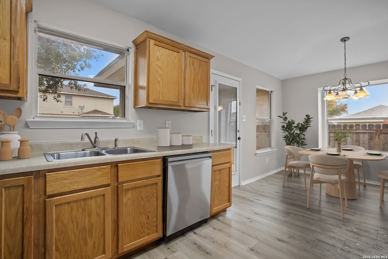 Welcome to this well-maintained 4-bedroom, 2-bathroom home located in a desirable Northwest San Antonio community. This home features a spacious living room that flows seamlessly into the kitchen, making it ideal for everyday living and entertaining. The kitchen offers generous countertop space, stainless steel appliances, and plenty of storage. The large primary suite provides a relaxing retreat with a full ensuite bathroom that includes a double vanity, a shower/tub combination, and a walk-in closet. Additional bedrooms are well-sized and versatile for family, guests, or a home office. Enjoy outdoor living on the covered patio, perfect for relaxing or hosting gatherings. Residents of the neighborhood have access to excellent amenities including a community pool, playground, jogging trails, and sports courts. Conveniently located near shopping, dining, and major roadways, this home offers comfort, convenience, and a great lifestyle.