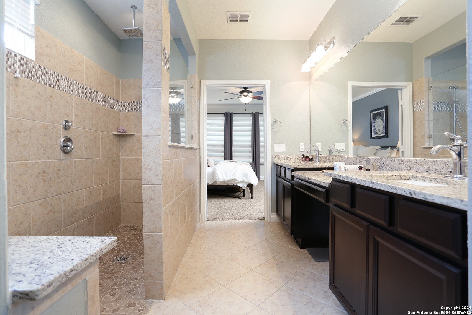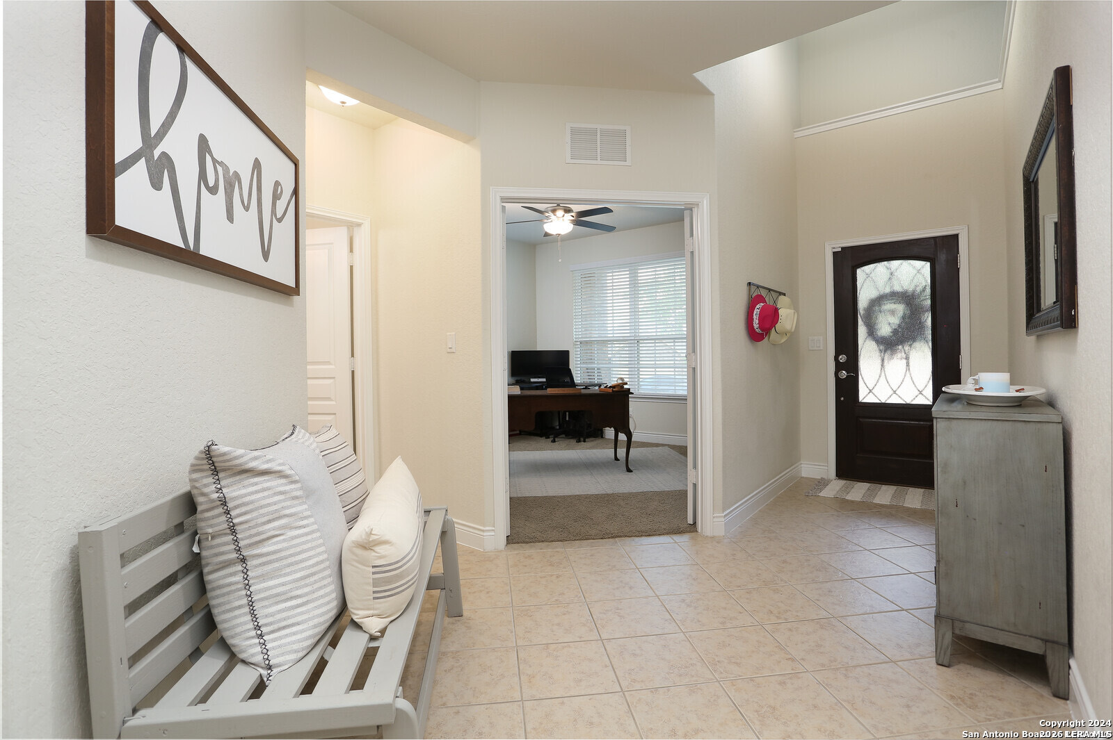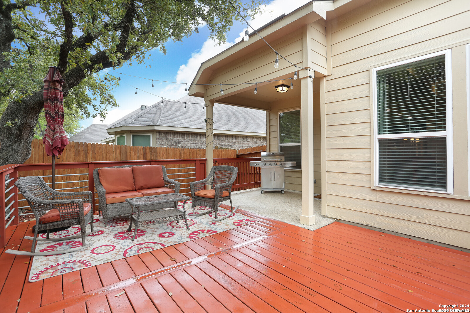 Motivated Sellers willing to help with closing costs or to buy down the rate. Nestled in the highly desirable Lantana Oaks neighborhood in Helotes, this stunning home is situated on a quiet cul-de-sac street. With 2 spacious living areas, 4 bedrooms, an office, and 3.5 bathrooms, this residence boasts a flexible open floor plan perfect for modern living. The large, eat-in-kitchen has granite countertops, a gas stove and double ovens and is open to the living room, creating wonderful entertainment space. Retreat to your primary bedroom located on the main floor, complete with an ensuite bathroom that includes double vanity sinks, a large walk-in shower, and a generous walk in closet. Heading upstairs, you'll discover a spacious game room accompanied by two walk-in storage closets, along with three additional bedrooms and two bathrooms, providing ample space for family and guests. Step outside to the backyard, which backs into a green belt and enjoy the cozy fire pit, mature trees, and spacious deck. Located just minutes outside of 1604 between I-10 and HW 151, you don't want to miss out on this wonderful home! VA Assumable to qualified VA buyers.