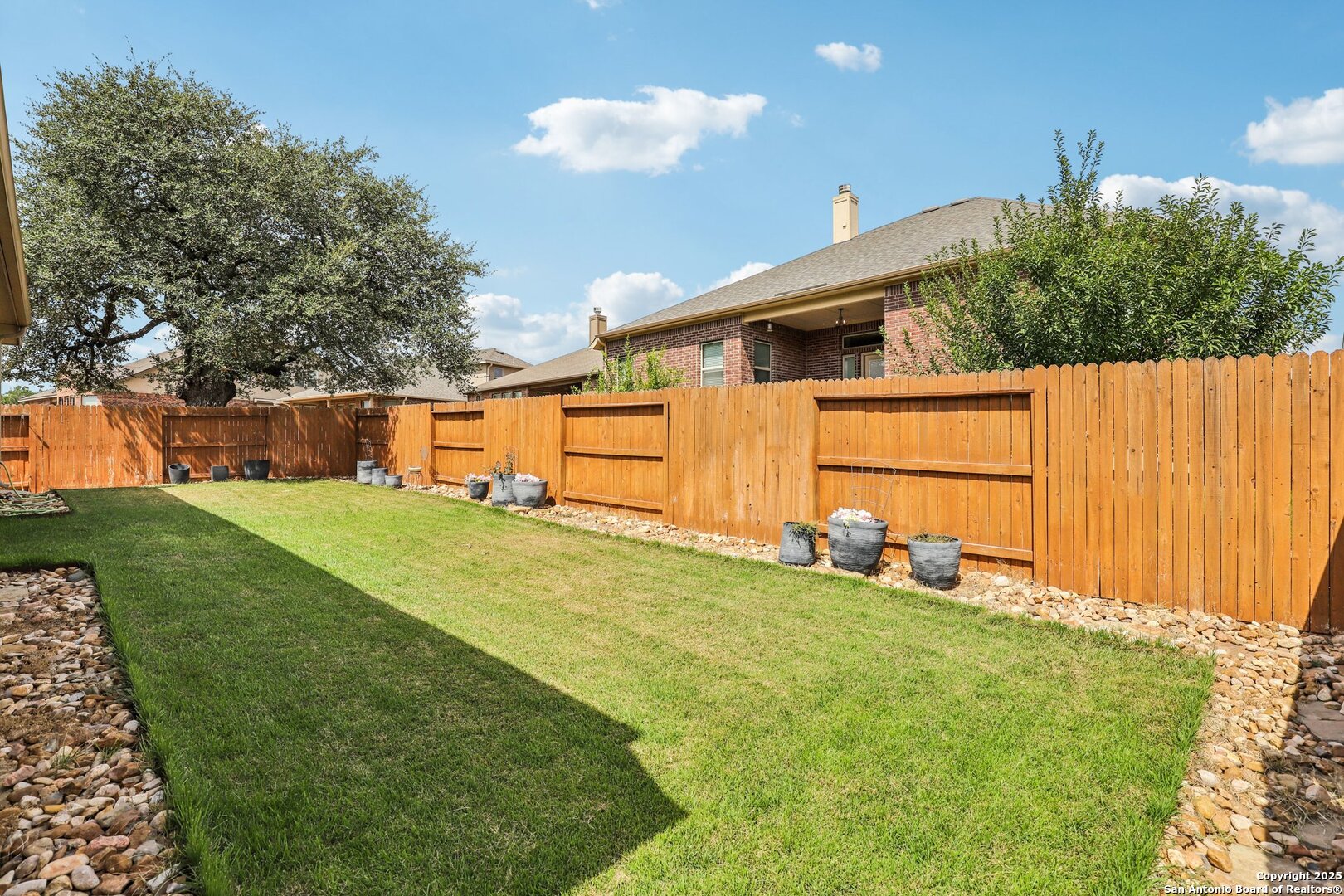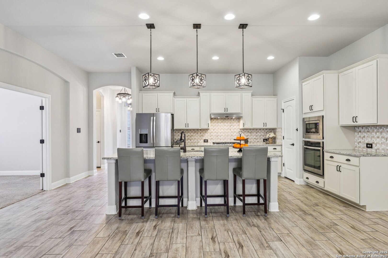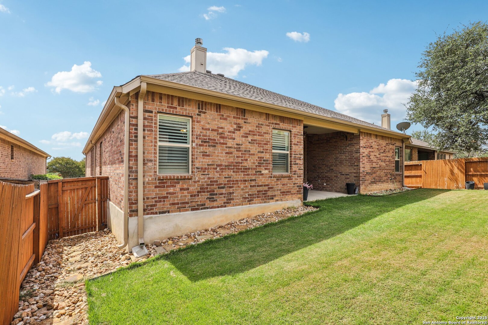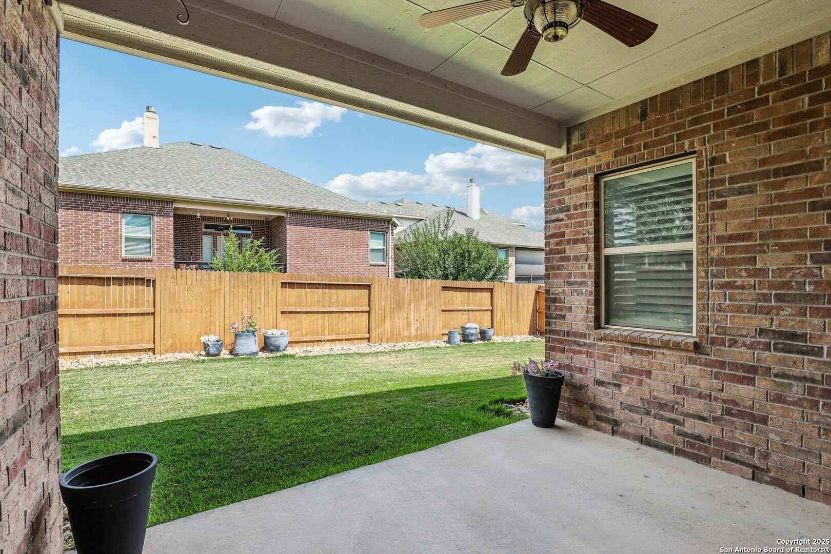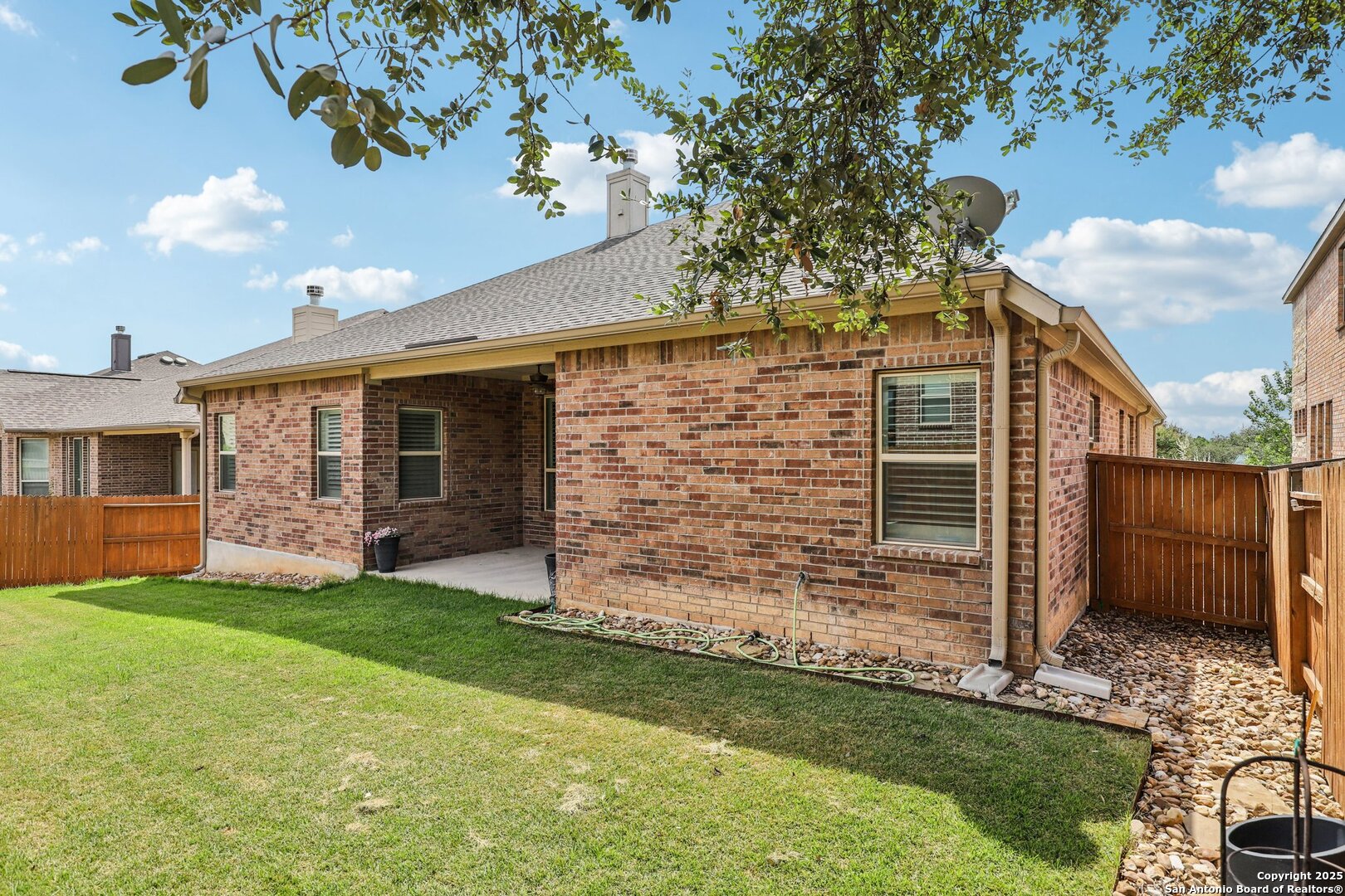 Discover the perfect blend of elegance and functionality in this stunning one-story residence, designed for both relaxation and entertaining. As you step through the inviting etched glass front door featuring a Texas Star, you'll be greeted by a warm foyer with exquisite hand-laid ceramic tiles that resemble rich hardwood flooring. The spacious open floor plan effortlessly guides you from a sophisticated study to a gourmet kitchen that will delight any chef. With gorgeous granite countertops, a high-end gas cooktop, and a striking island highlighted by Texas Star pendants, this kitchen is a culinary masterpiece. The breakfast bar flows seamlessly into a charming family room, complete with a fireplace and custom built-ins, creating the ideal space for unforgettable gatherings. An elegant formal dining room awaits, ready to host all your celebrations and family dinners. Retreat to your private primary suite, a true sanctuary featuring a luxurious en-suite bath with dual vanities, his and hers closets, a relaxing garden tub, and an oversized shower designed for ultimate serenity. Two additional well-appointed bedrooms and a spacious hall bath provide comfort for family and guests. Plus, the dedicated media room is perfect for cozy movie nights and entertainment! Step outside to your expansive covered patio and beautifully landscaped backyard-a true outdoor oasis for summer barbecues and peaceful afternoons in the fresh air. Don't forget the spacious three-car garage for all your storage and parking needs! Nestled in a friendly neighborhood with fantastic amenities, including a charming park and playground, this exceptional home perfectly combines classic Texas charm with modern conveniences. Discover the extraordinary features this Hill Country gem has to offer!