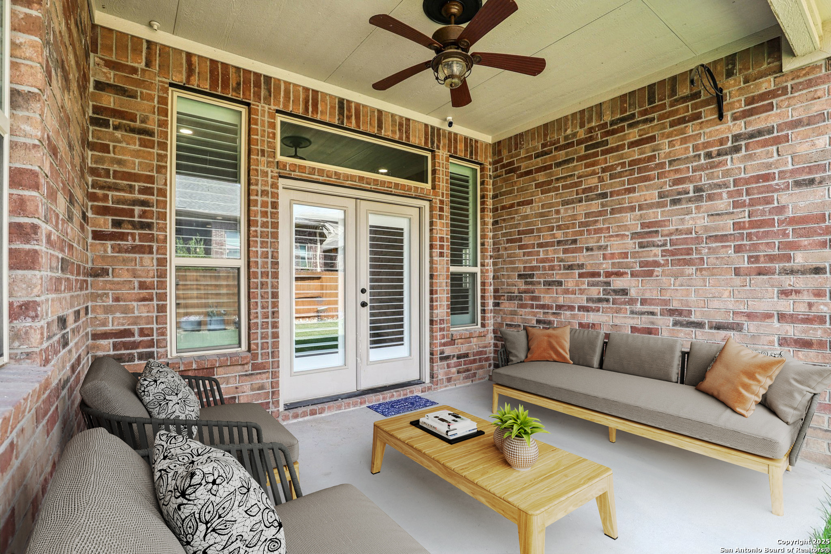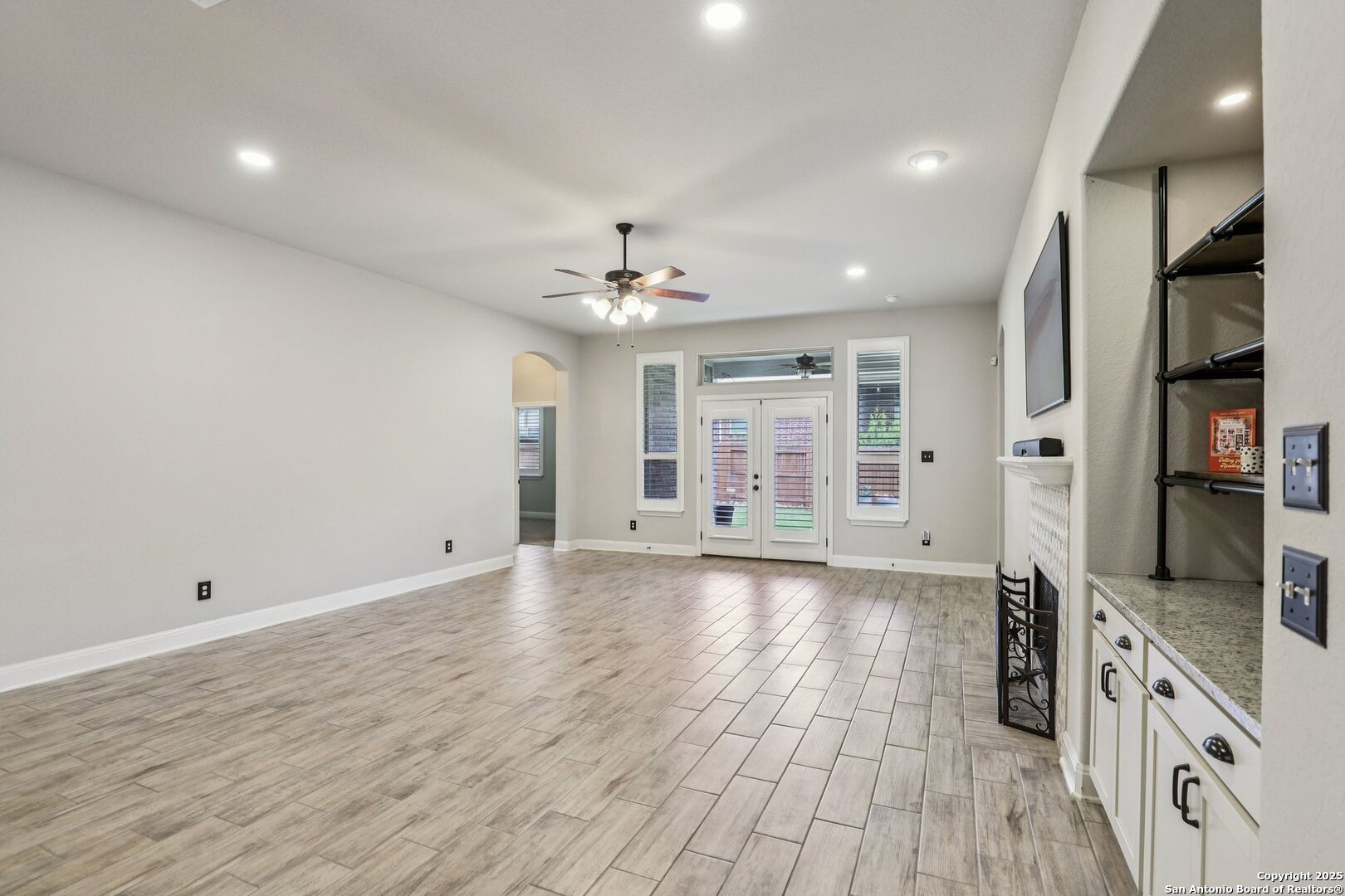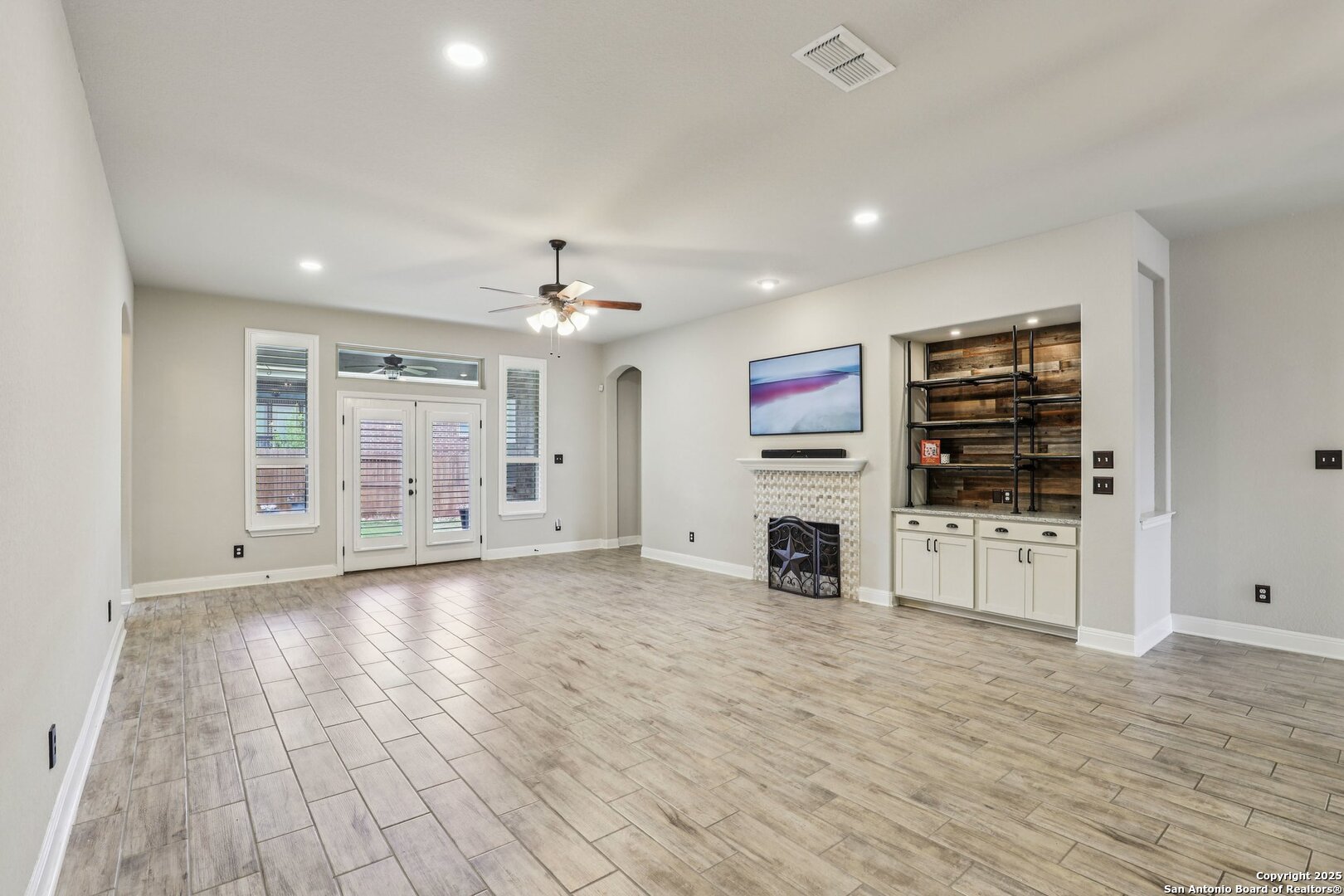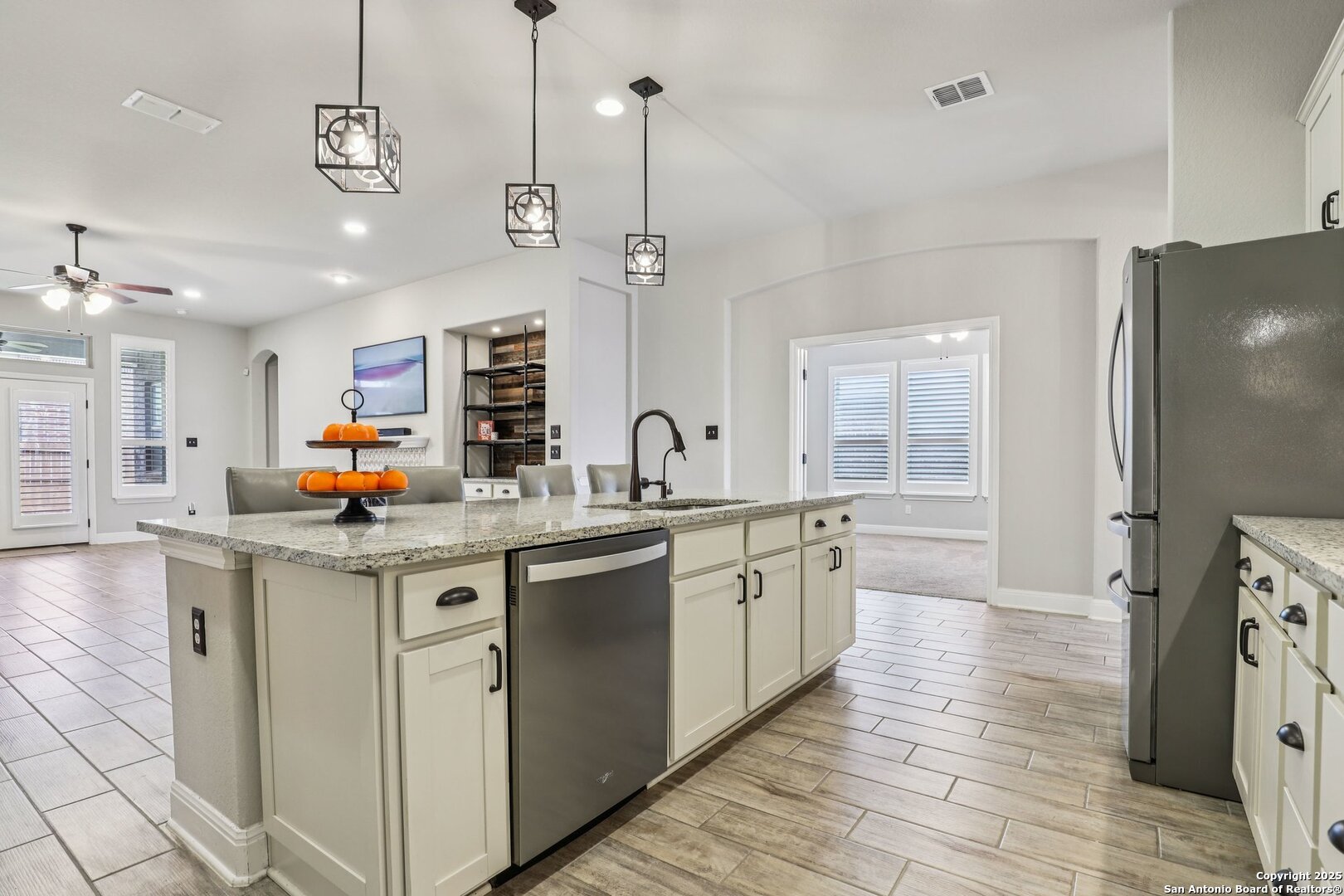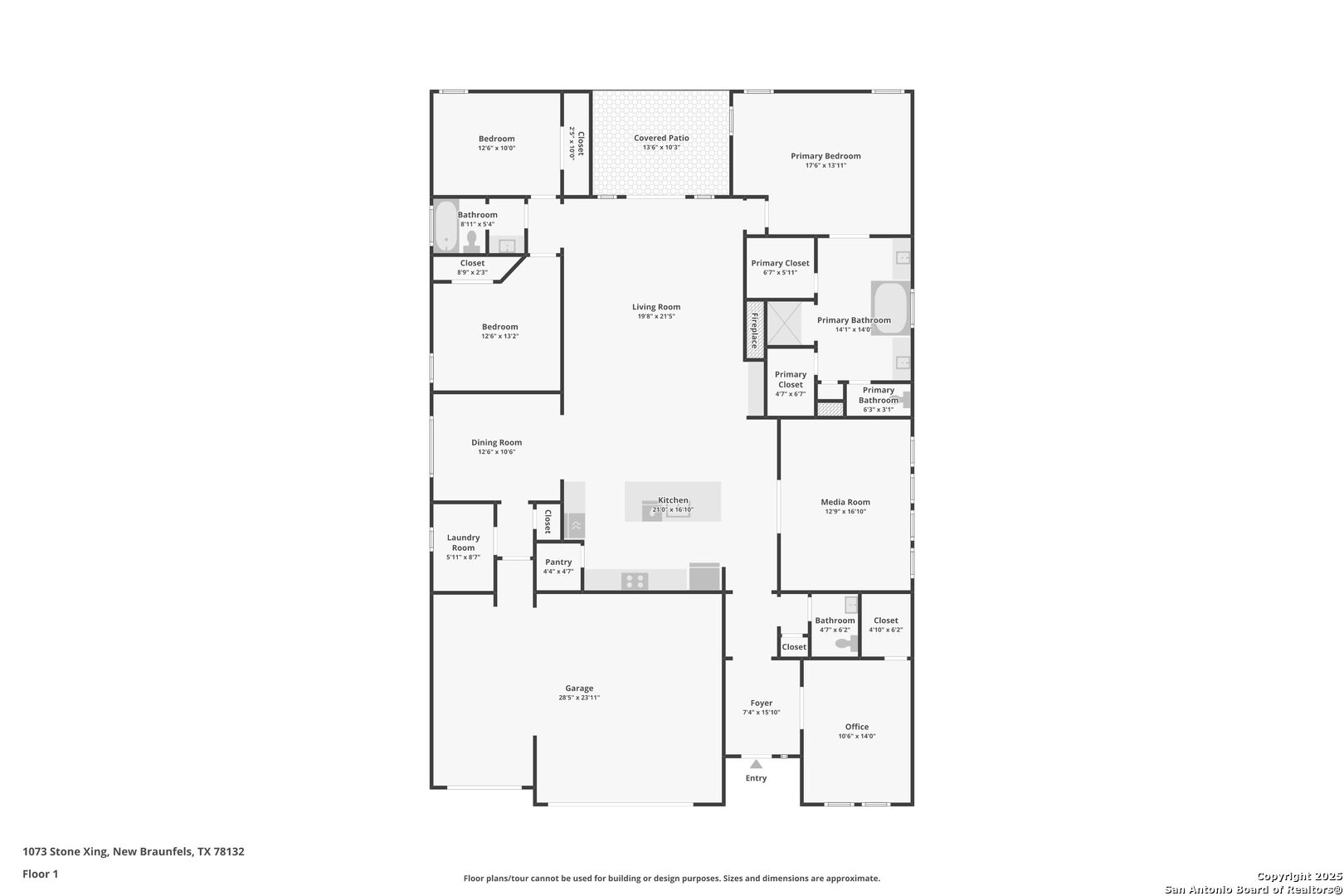 Discover the perfect blend of elegance and functionality in this stunning one-story residence, designed for both relaxation and entertaining. As you step through the inviting etched glass front door featuring a Texas Star, you'll be greeted by a warm foyer with exquisite hand-laid ceramic tiles that resemble rich hardwood flooring. The spacious open floor plan effortlessly guides you from a sophisticated study to a gourmet kitchen that will delight any chef. With gorgeous granite countertops, a high-end gas cooktop, and a striking island highlighted by Texas Star pendants, this kitchen is a culinary masterpiece. The breakfast bar flows seamlessly into a charming family room, complete with a fireplace and custom built-ins, creating the ideal space for unforgettable gatherings. An elegant formal dining room awaits, ready to host all your celebrations and family dinners. Retreat to your private primary suite, a true sanctuary featuring a luxurious en-suite bath with dual vanities, his and hers closets, a relaxing garden tub, and an oversized shower designed for ultimate serenity. Two additional well-appointed bedrooms and a spacious hall bath provide comfort for family and guests. Plus, the dedicated media room is perfect for cozy movie nights and entertainment! Step outside to your expansive covered patio and beautifully landscaped backyard-a true outdoor oasis for summer barbecues and peaceful afternoons in the fresh air. Don't forget the spacious three-car garage for all your storage and parking needs! Nestled in a friendly neighborhood with fantastic amenities, including a charming park and playground, this exceptional home perfectly combines classic Texas charm with modern conveniences. Discover the extraordinary features this Hill Country gem has to offer!