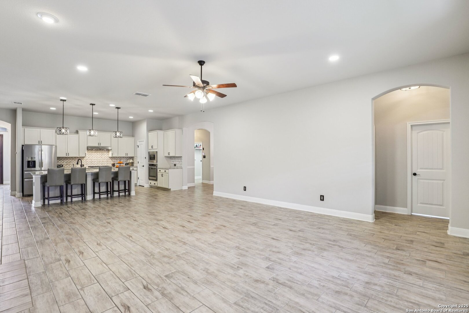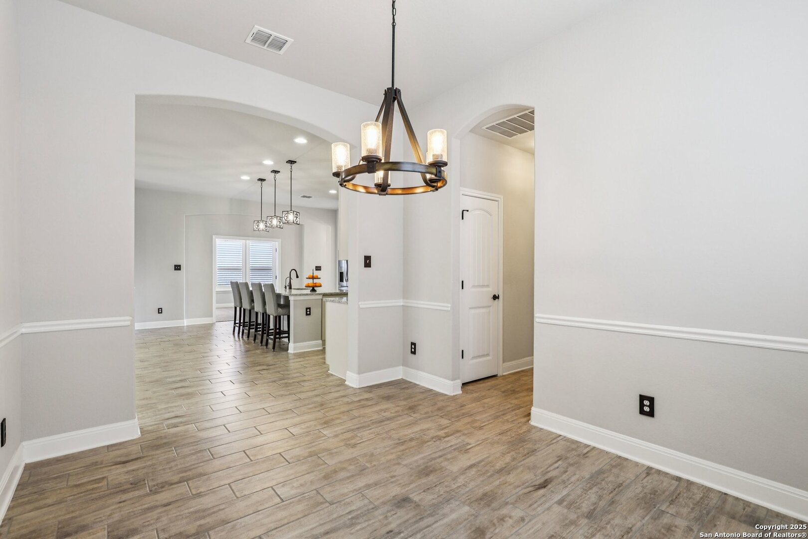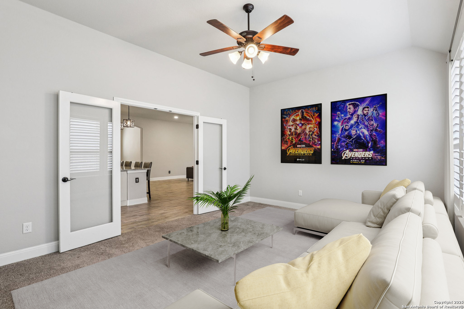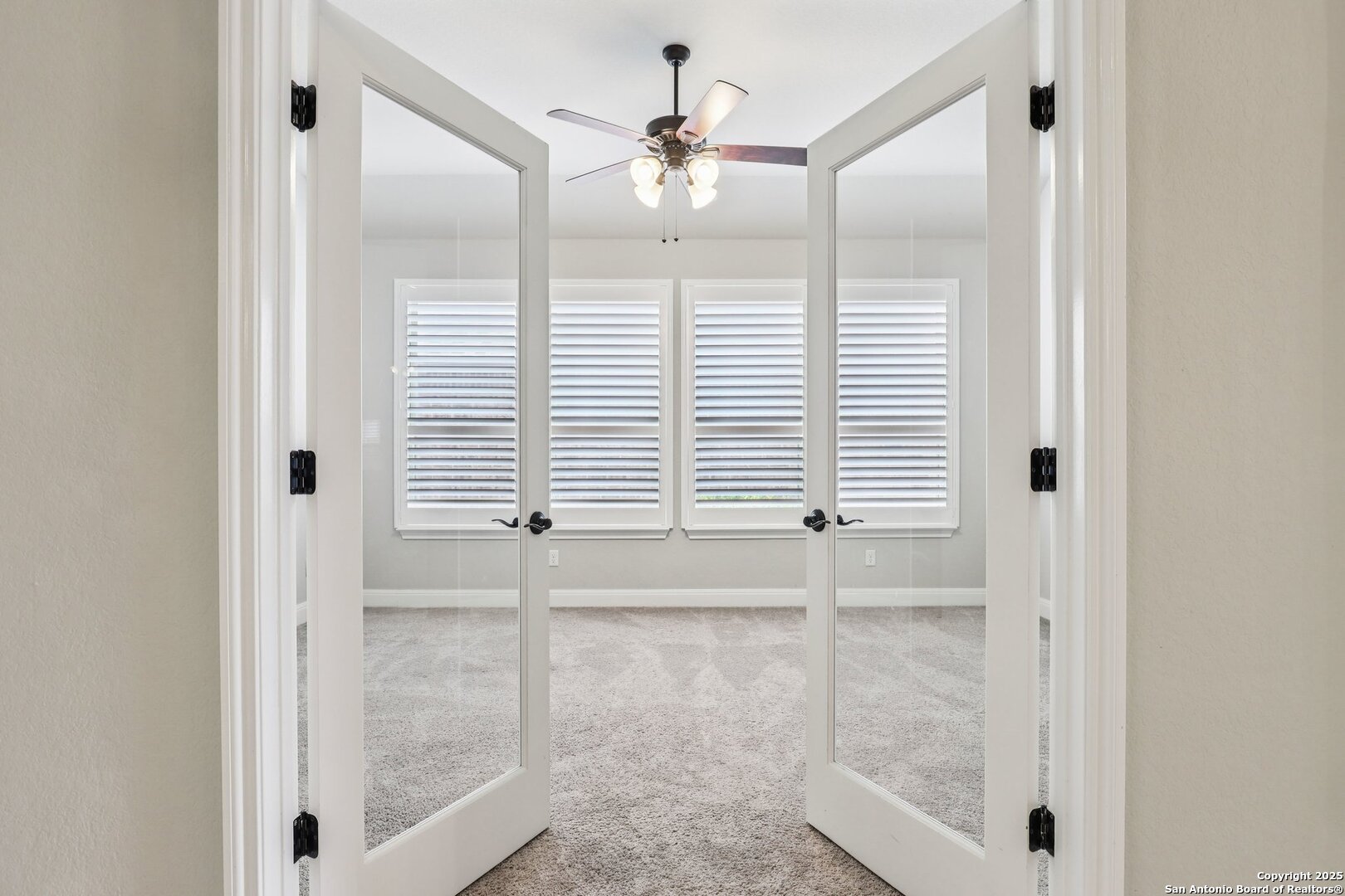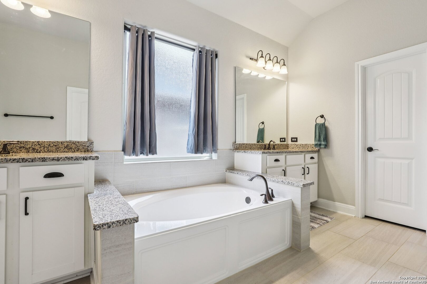 Discover the perfect blend of elegance and functionality in this stunning one-story residence, designed for both relaxation and entertaining. As you step through the inviting etched glass front door featuring a Texas Star, you'll be greeted by a warm foyer with exquisite hand-laid ceramic tiles that resemble rich hardwood flooring. The spacious open floor plan effortlessly guides you from a sophisticated study to a gourmet kitchen that will delight any chef. With gorgeous granite countertops, a high-end gas cooktop, and a striking island highlighted by Texas Star pendants, this kitchen is a culinary masterpiece. The breakfast bar flows seamlessly into a charming family room, complete with a fireplace and custom built-ins, creating the ideal space for unforgettable gatherings. An elegant formal dining room awaits, ready to host all your celebrations and family dinners. Retreat to your private primary suite, a true sanctuary featuring a luxurious en-suite bath with dual vanities, his and hers closets, a relaxing garden tub, and an oversized shower designed for ultimate serenity. Two additional well-appointed bedrooms and a spacious hall bath provide comfort for family and guests. Plus, the dedicated media room is perfect for cozy movie nights and entertainment! Step outside to your expansive covered patio and beautifully landscaped backyard-a true outdoor oasis for summer barbecues and peaceful afternoons in the fresh air. Don't forget the spacious three-car garage for all your storage and parking needs! Nestled in a friendly neighborhood with fantastic amenities, including a charming park and playground, this exceptional home perfectly combines classic Texas charm with modern conveniences. Discover the extraordinary features this Hill Country gem has to offer!