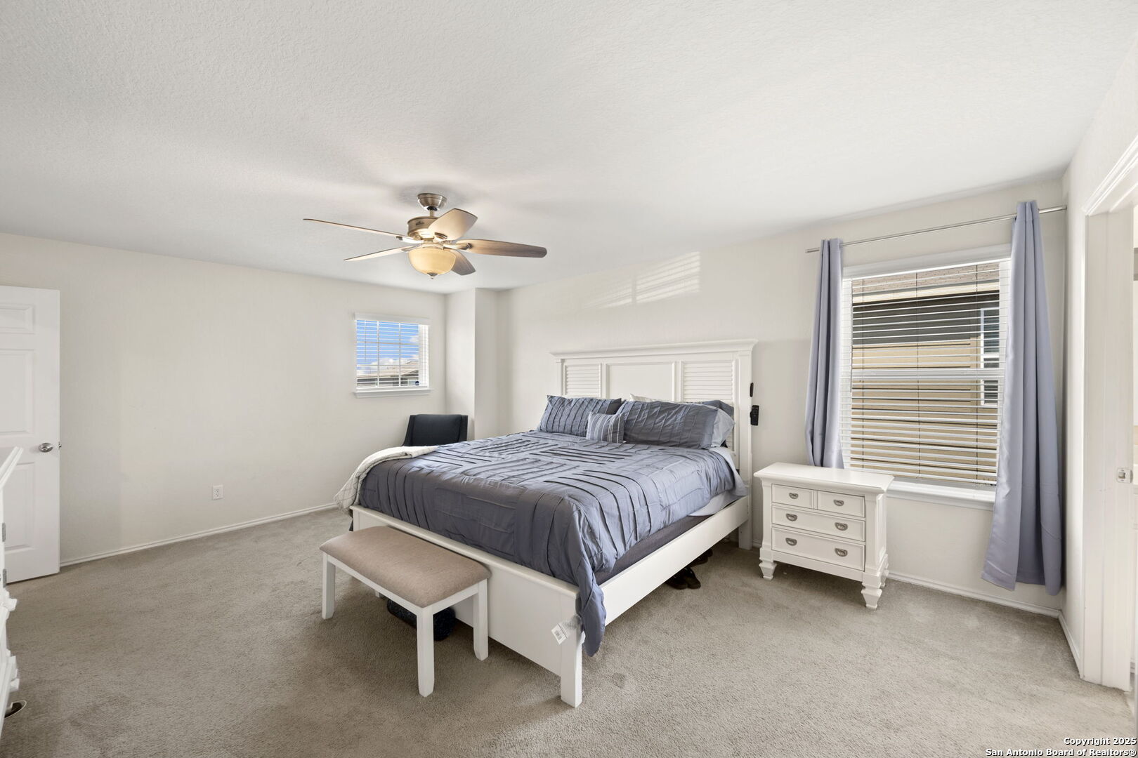 Welcome to 10730 Balmorhea, nestled in the sought-after Cinco Lakes community! This stunning 4-bedroom, 3-bath home with SOLAR PANELS offers the perfect blend of space, comfort, and style. From the moment you step inside, you'll love the open floor plan that seamlessly connects the living, dining, and kitchen areas-ideal for both entertaining guests and everyday family living. The kitchen is the heart of the home, featuring a spacious island, abundant cabinet storage, and plenty of counter space to make cooking and gatherings a breeze. Upstairs, you'll find a huge master bedroom retreat with room for a sitting area, home office, or private relaxation space. The en-suite bath and generous closet space make this suite a true getaway. Each secondary bedroom is spacious and versatile, perfect for family, guests, or a home office. With three full baths, mornings will be a little easier for everyone. Sitting on an oversized lot, the outdoor space provides endless possibilities-whether you envision a backyard oasis, a play area, or room for future upgrades. Located in Cinco Lakes, you'll enjoy community amenities being right across the street from the property along with easy access to shopping, dining, and major highways. Mortgage company offers a 4% Assumable FHA Loan also.
