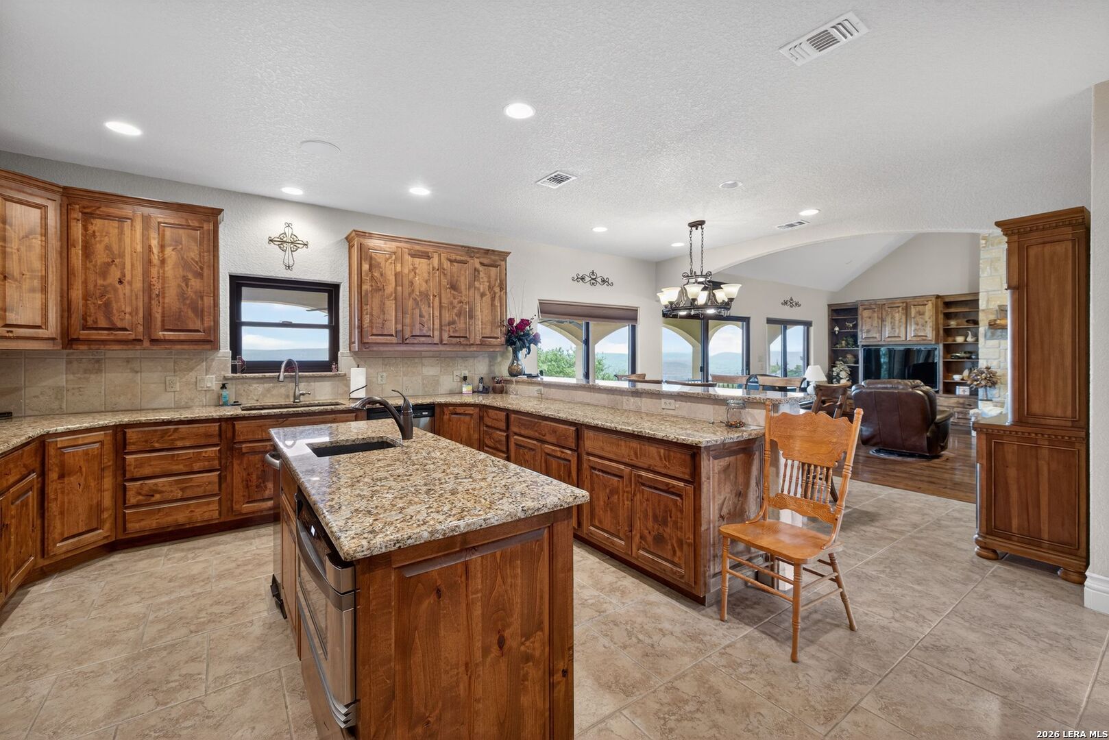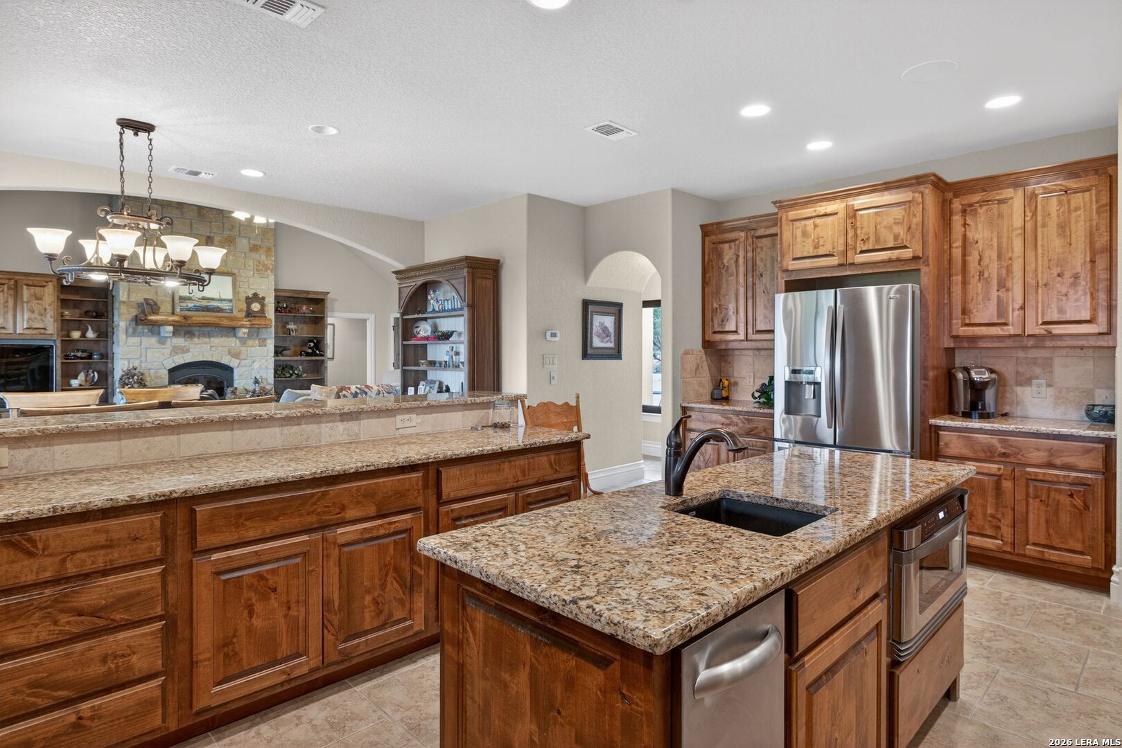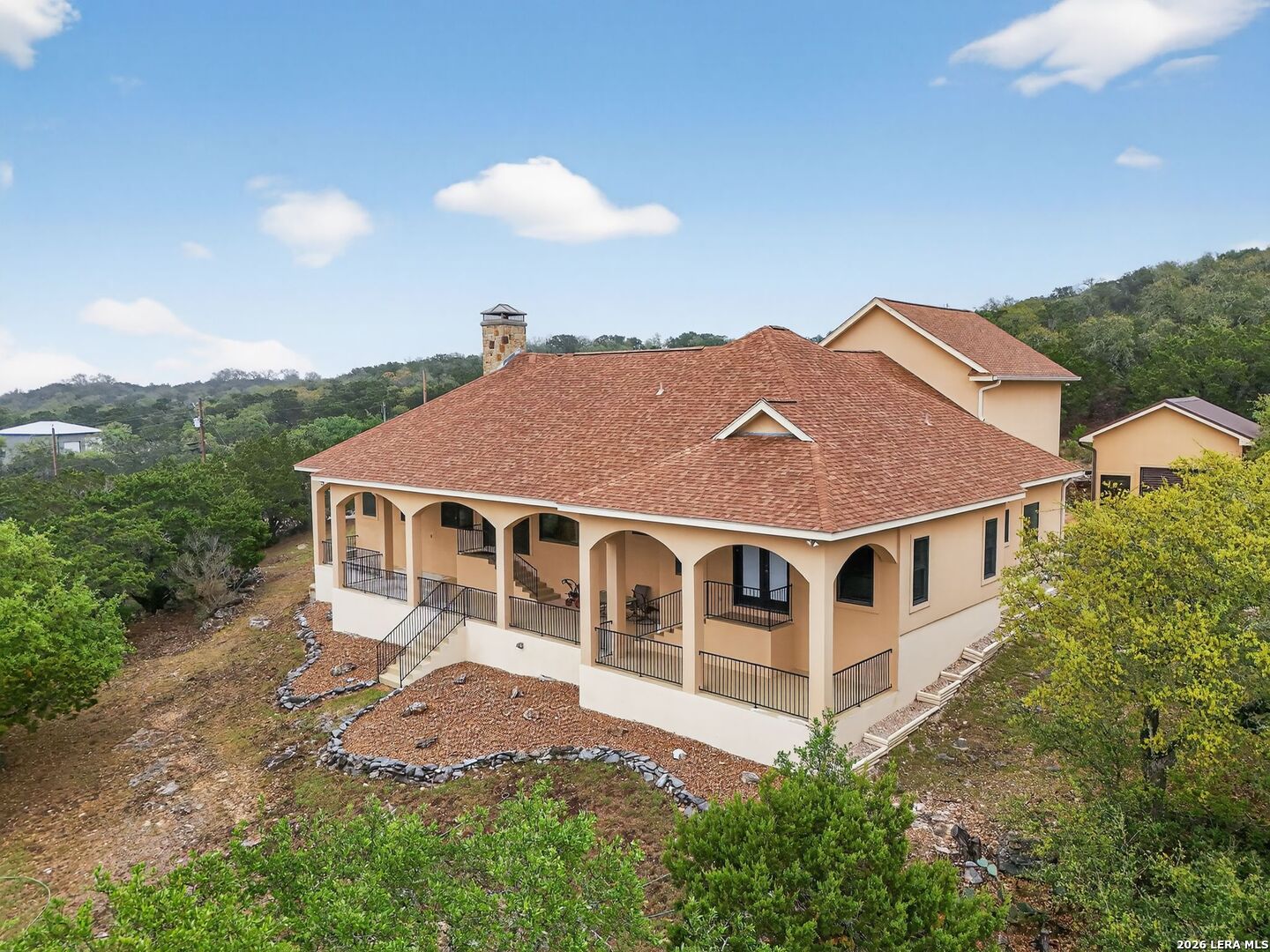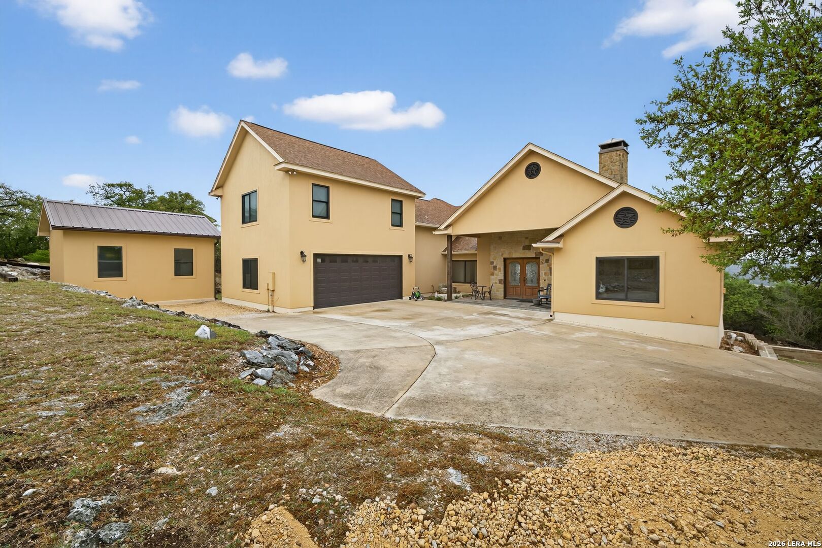 This beautifully appointed 3-bedroom, 2.5-bath residence with an additional bonus room offers a refined balance of comfort and craftsmanship. Knotty alder custom cabinetry and granite counter tops runs throughout the home, lending a sense of richness and continuity, while the gourmet kitchen is thoughtfully designed with an island, stainless steel appliances and a pot filler, creating a space that is as functional as it is sophisticated. The main living area is anchored by an impressive floor-to-ceiling stone fireplace, adding both warmth and architectural presence. A generously sized laundry room with a built-in sink provides convenience without compromising style. The bonus room offers flexibility to suit your needs, whether as a private office, media lounge, or guest retreat. Outdoors, an enclosed swim spa invites year-round relaxation in a private setting, while a dedicated shed/shop provide ample space for storage, projects, and/or recreational equipment. Every element of this home has been carefully considered, resulting in a property that feels polished, inviting, and quietly luxurious. Located in the gated Hills of Bandera Ranch, just 10 miles southwest of downtown Bandera, the Cowboy Capital of the World, the property borders the Hill Country State Natural Area. The Hills of Bandera Ranch offers: walking and riding trails, equestrian-friendly design, private entrance to the Hill Country State Natural Area, stocked fishing ponds.