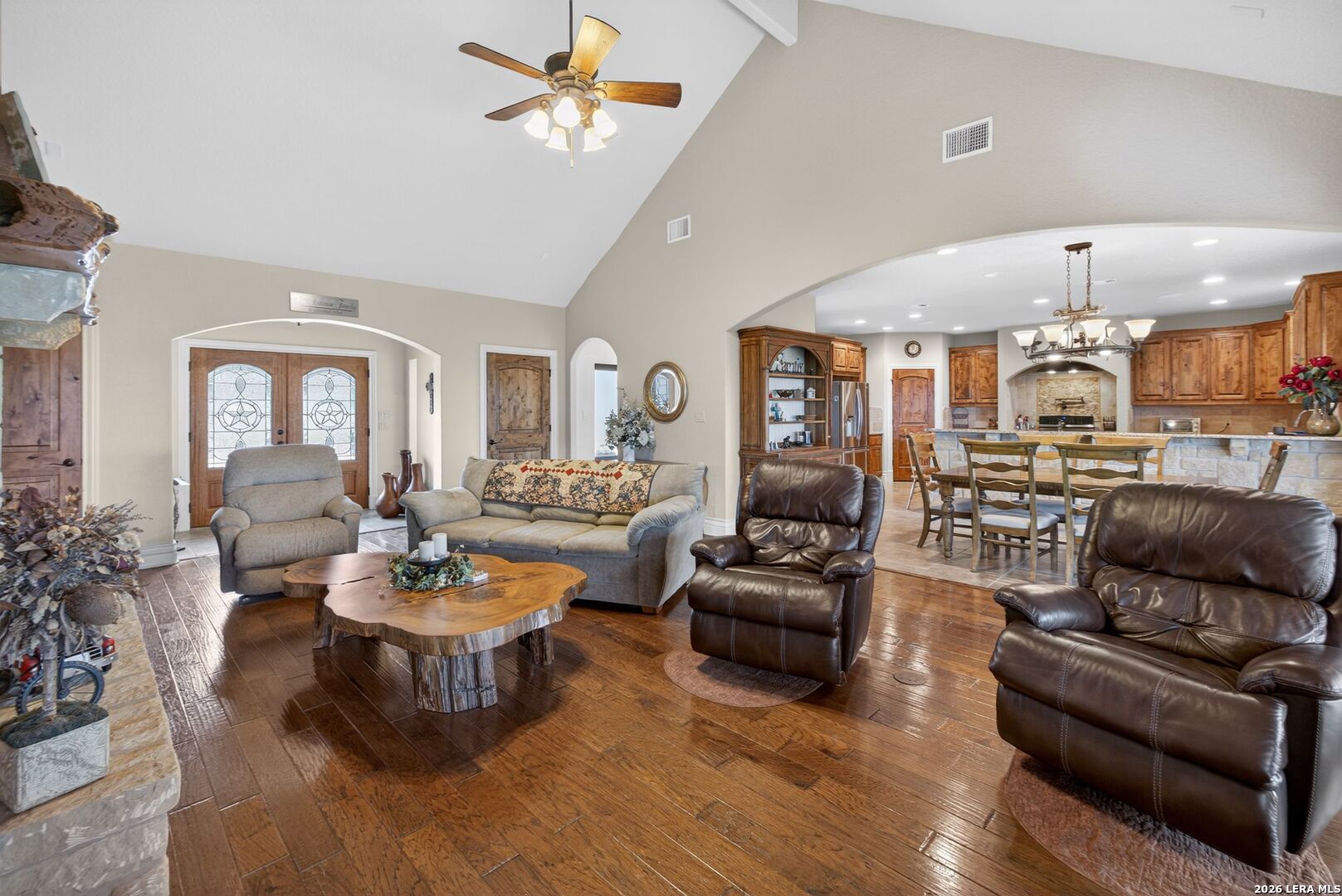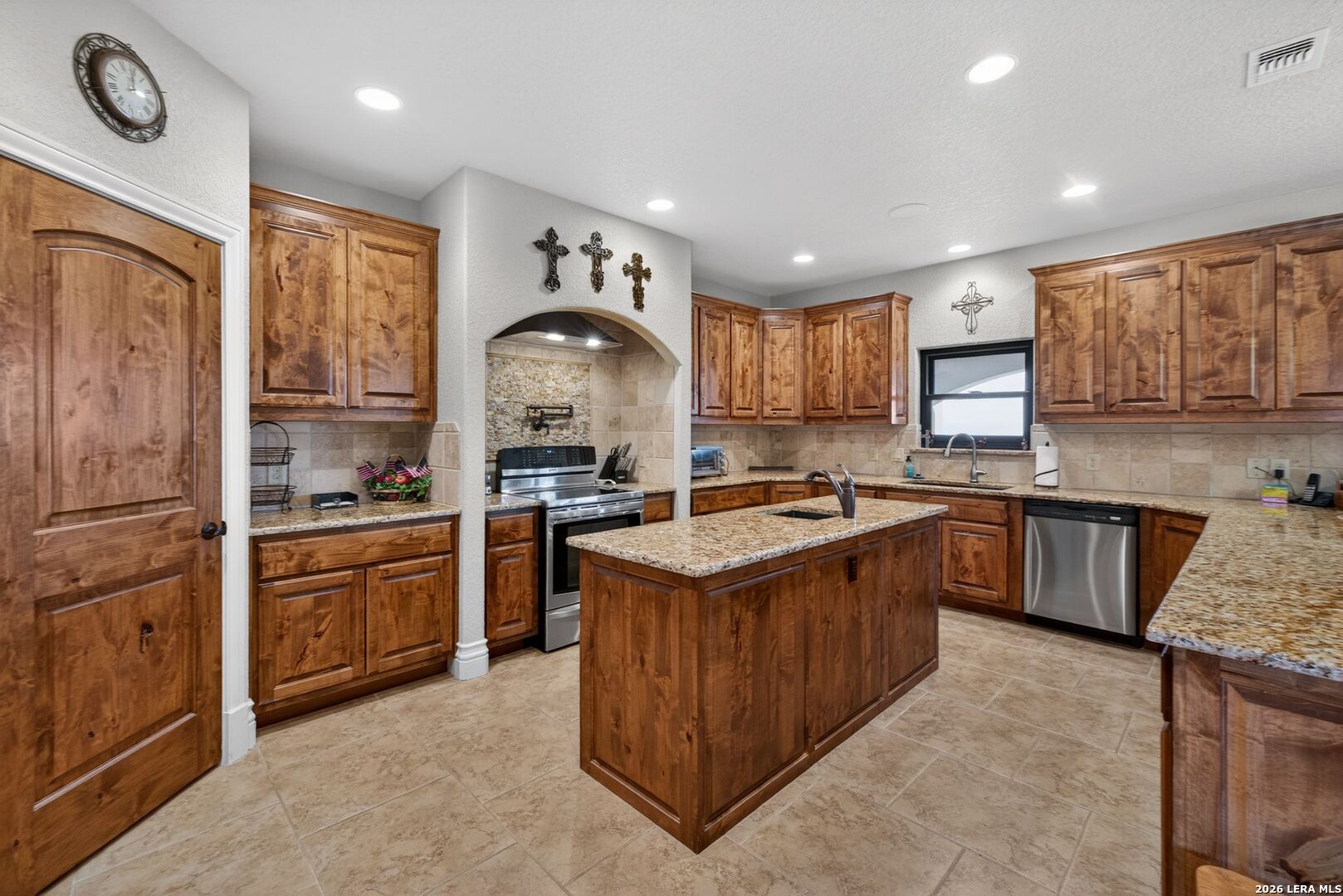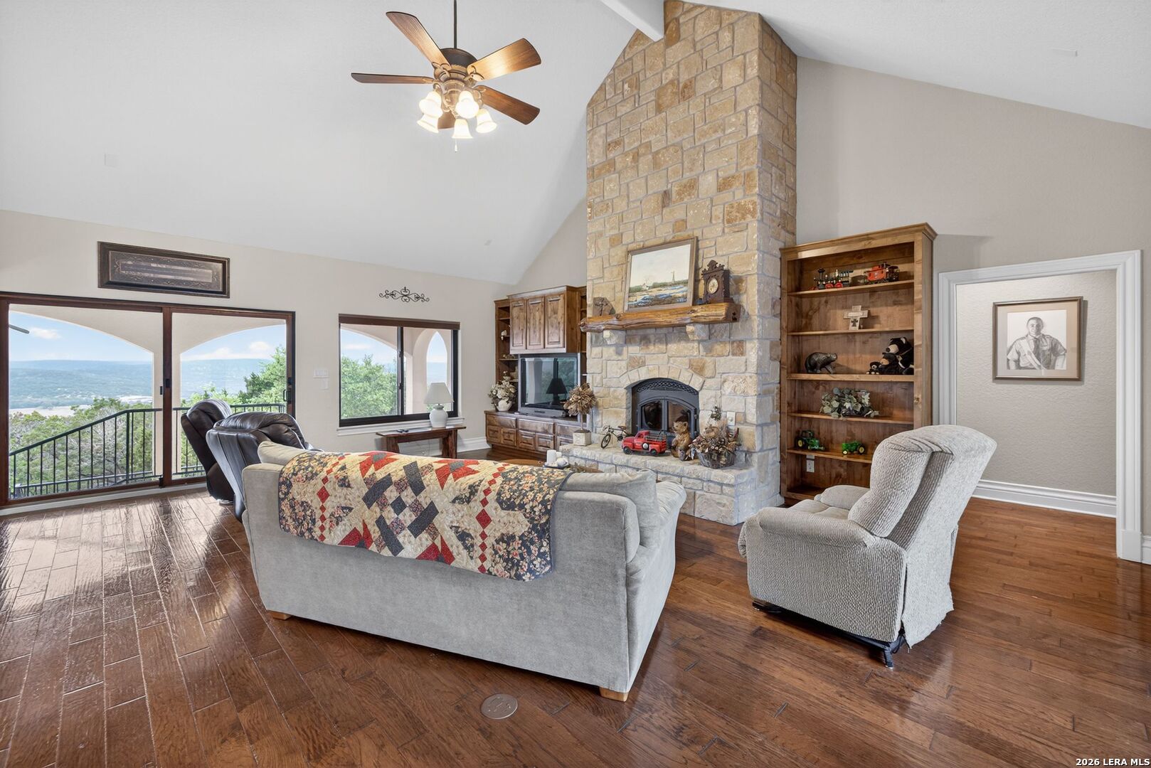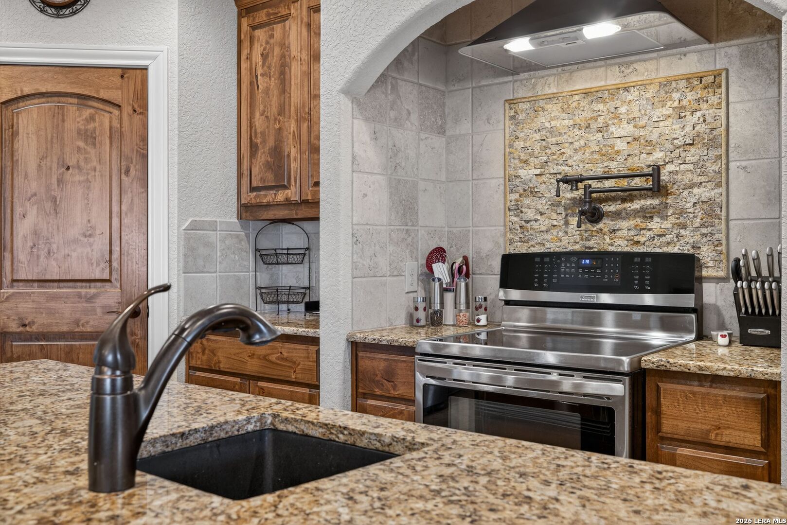 This beautifully appointed 3-bedroom, 2.5-bath residence with an additional bonus room offers a refined balance of comfort and craftsmanship. Knotty alder custom cabinetry and granite counter tops runs throughout the home, lending a sense of richness and continuity, while the gourmet kitchen is thoughtfully designed with an island, stainless steel appliances and a pot filler, creating a space that is as functional as it is sophisticated. The main living area is anchored by an impressive floor-to-ceiling stone fireplace, adding both warmth and architectural presence. A generously sized laundry room with a built-in sink provides convenience without compromising style. The bonus room offers flexibility to suit your needs, whether as a private office, media lounge, or guest retreat. Outdoors, an enclosed swim spa invites year-round relaxation in a private setting, while a dedicated shed/shop provide ample space for storage, projects, and/or recreational equipment. Every element of this home has been carefully considered, resulting in a property that feels polished, inviting, and quietly luxurious. Located in the gated Hills of Bandera Ranch, just 10 miles southwest of downtown Bandera, the Cowboy Capital of the World, the property borders the Hill Country State Natural Area. The Hills of Bandera Ranch offers: walking and riding trails, equestrian-friendly design, private entrance to the Hill Country State Natural Area, stocked fishing ponds.