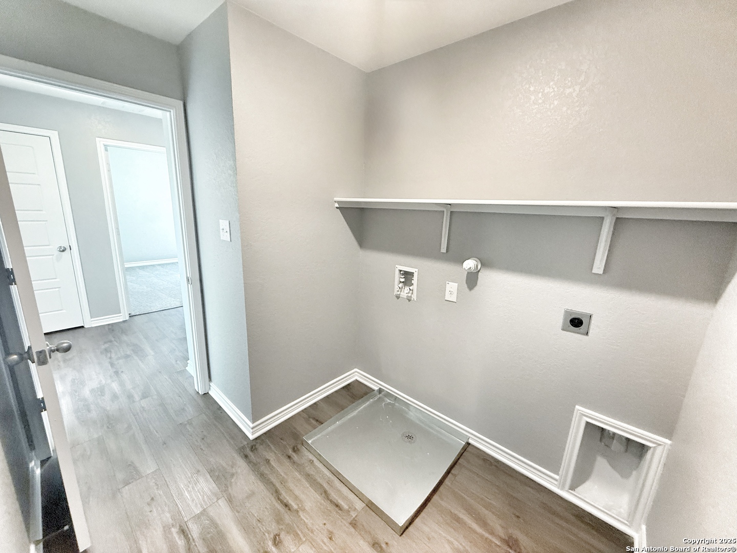 Stunning two-story home in the highly desirable Legend Point subdivision! This beautifully maintained property features numerous upgrades and fantastic curb appeal, highlighted by its charming covered front porch. Step inside to a warm and welcoming entryway offering a convenient half bath, coat closet, and direct access to the two-car garage. The spacious living/dining combo is filled with natural light from multiple windows and includes an electric fireplace-perfect for cozy evenings. The open layout creates an ideal environment for both daily living and entertaining. The kitchen-perfect for cooking and hosting-offers a breakfast bar, granite countertops, stainless steel appliances, and a walk-in pantry. Upstairs, a versatile loft provides the perfect office or flex space and thoughtfully separates the primary suite from the secondary bedrooms, laundry room, and second full bath. Both secondary bedrooms are generously sized with excellent closet space. The shared bathroom features a single vanity with an extended countertop, offering great functionality and extra room, along with a tub/shower combo. The spacious primary bedroom features a ceiling fan and an en-suite bathroom equipped with double vanities, a walk-in shower, separate garden tub, private toilet room, and walk-in closet with built-in shelving. Outside, enjoy a peaceful backyard with no rear neighbors and a patio slab ideal for morning coffee or evening relaxation. Additional features include built-in speakers throughout the downstairs and upstairs hallway-perfect for enjoying music throughout the home. Ideally located within walking distance to the community pool and playground and just minutes from IH-35, shopping, dining, and area schools.