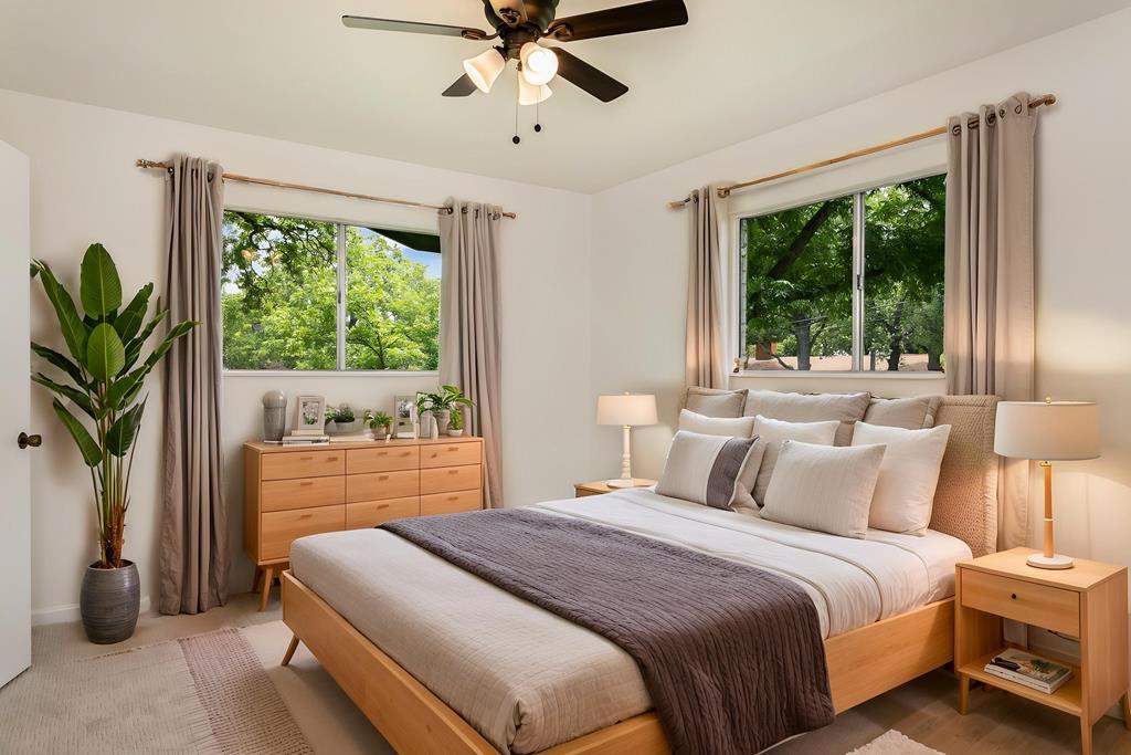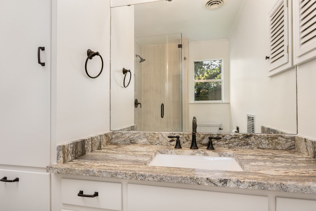 Welcome to your dream home! This beautiful 3-bedroom, 2.5-bath residence sits on a spacious .31-acre lot adorned with majestic oak trees, offering a serene and picturesque setting. The main home features newly renovated bathrooms with elegant granite countertops, fresh interior paint, and modern recessed lighting. Bedrooms are cozy with new carpeting, while the kitchen is a chef's delight with granite counters, updated flooring, stylish hardware, and top-tier appliances. A fully permitted 1-bedroom, 1-bath guesthouse currently operates as a successful short-term rental, providing excellent income potential. Whether you're looking for a primary home with added flexibility or a smart investment opportunity, this property checks all the boxes. The inviting outdoor space is ideal for both relaxing and entertaining, and a two-car attached garage adds convenience and storage. Move-in ready and full of charm, this home offers comfort, functionality, and financial upside.